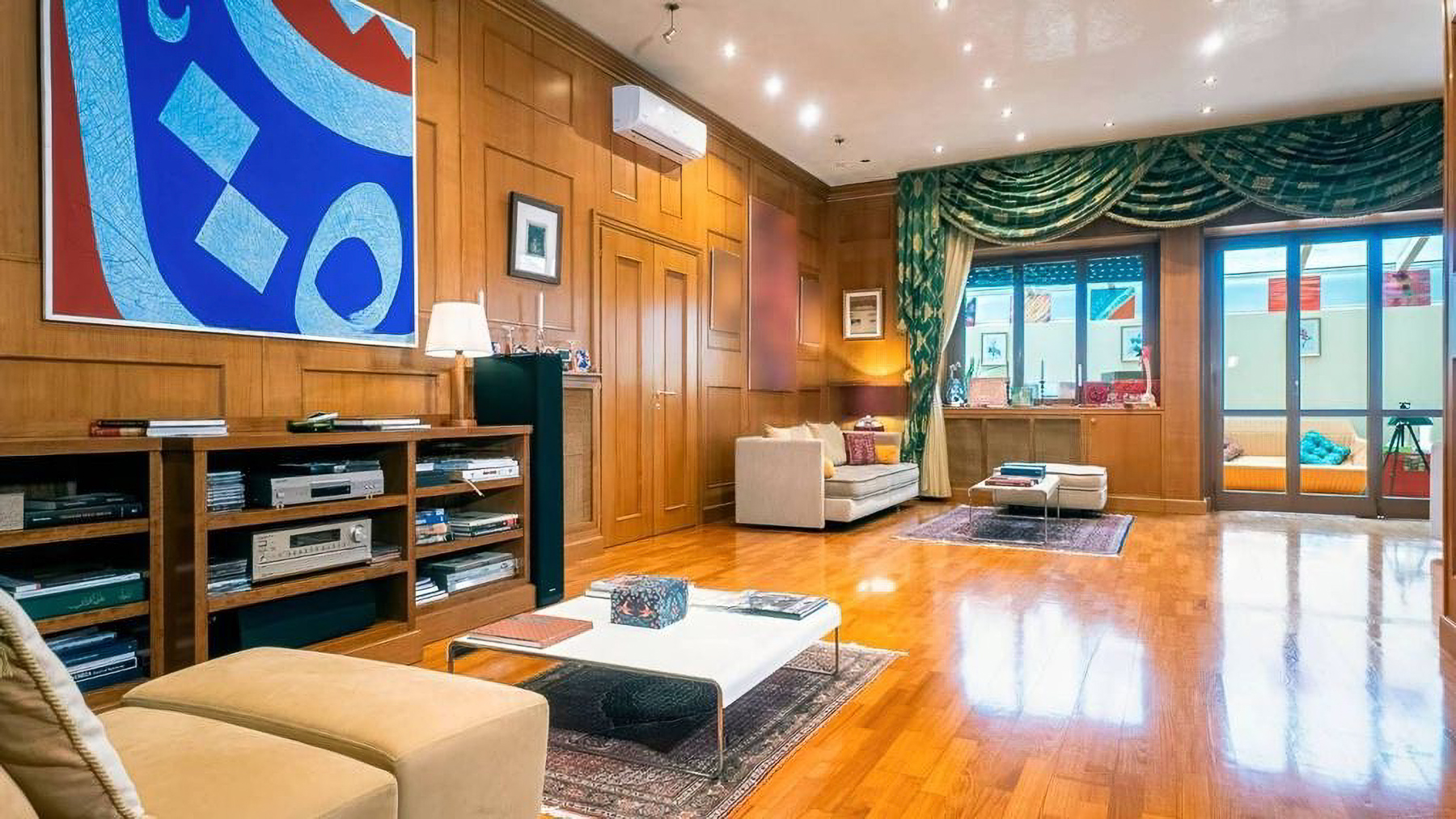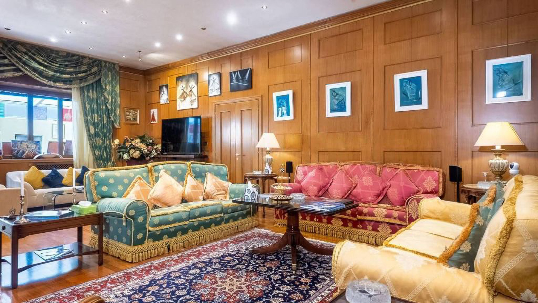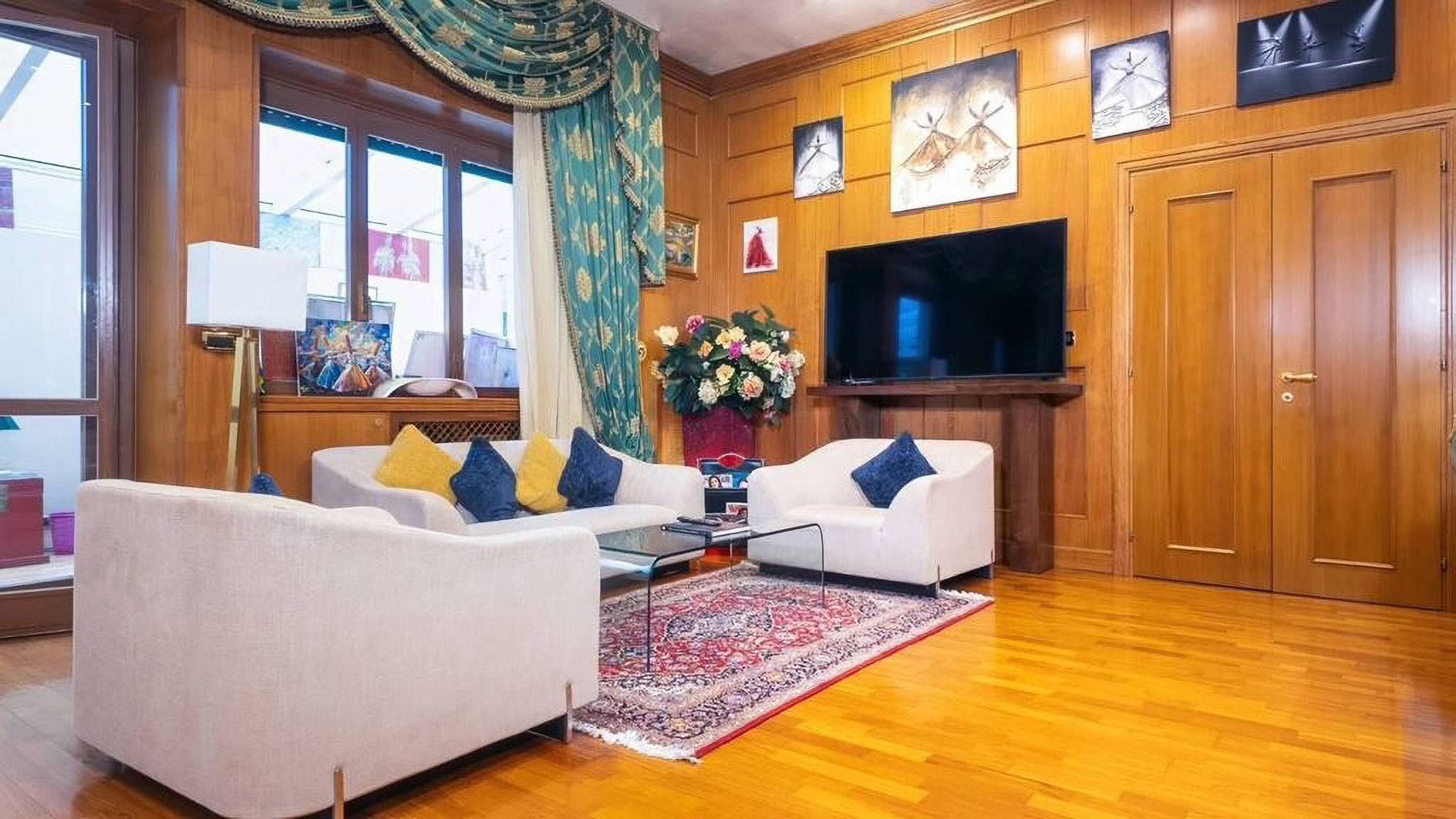 Situated in the vibrant heart of Rome, this stunning residence is a sanctuary of elegance and warmth. The space invites you in with a symphony of textures and colors: imagine the soft glow of sunlight filtering through large glass doors, the gentle rustle of leaves in the private garden, and the rich aroma of Italian espresso wafting through the air. Spanning 300 square meters, this luxurious home boasts five meticulously designed rooms and three opulent bathrooms, each echoing the sophistication of classic decor combined with modern flair. The living area is a masterpiece of design, featuring an ornate turquoise and gold couch, a variety of seating options, and exquisite wooden furniture. The space is adorned with framed artwork and decorative pieces, creating a gallery-like ambiance. Large glass doors open to the garden, seamlessly blending indoor and outdoor living. Living in this property is an experience like no other. Envision mornings filled with serene walks in your private garden, afternoons spent in the sunroom bathed in natural light, and evenings gathered with loved ones in the cozy yet sophisticated living area. The combination of classic and modern elements creates an atmosphere of timeless elegance. This residence in Rome is not just a home; it is a rare jewel that embodies luxury and comfort. It's an opportunity to own a piece of architectural brilliance, offering a lifestyle of unparalleled prestige and sophistication.