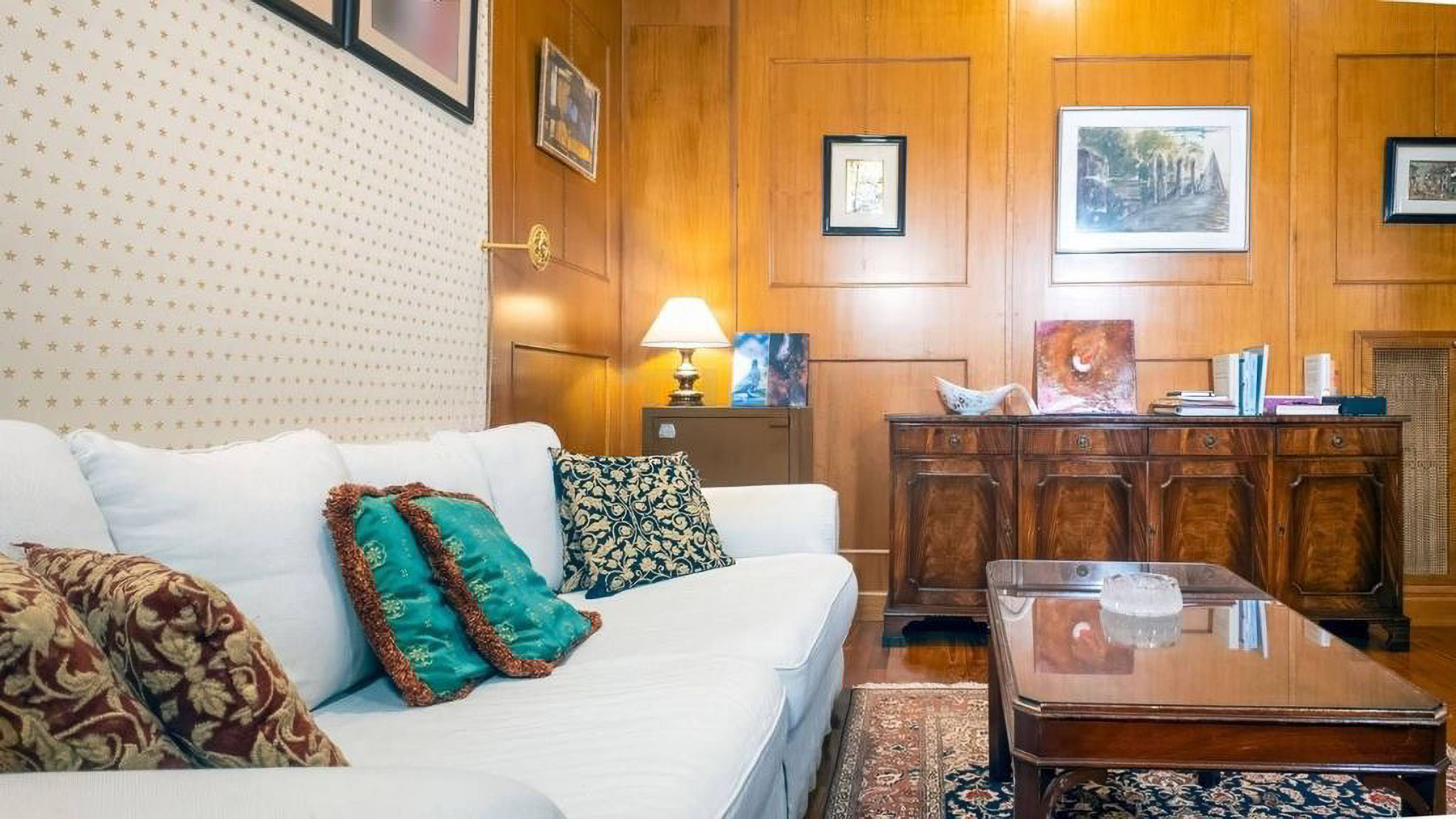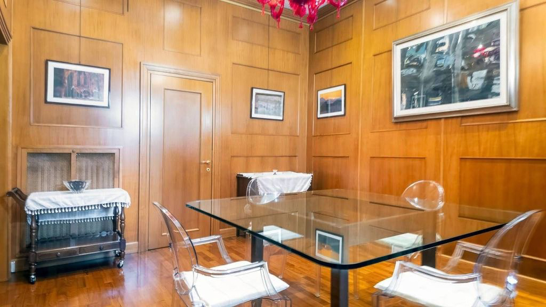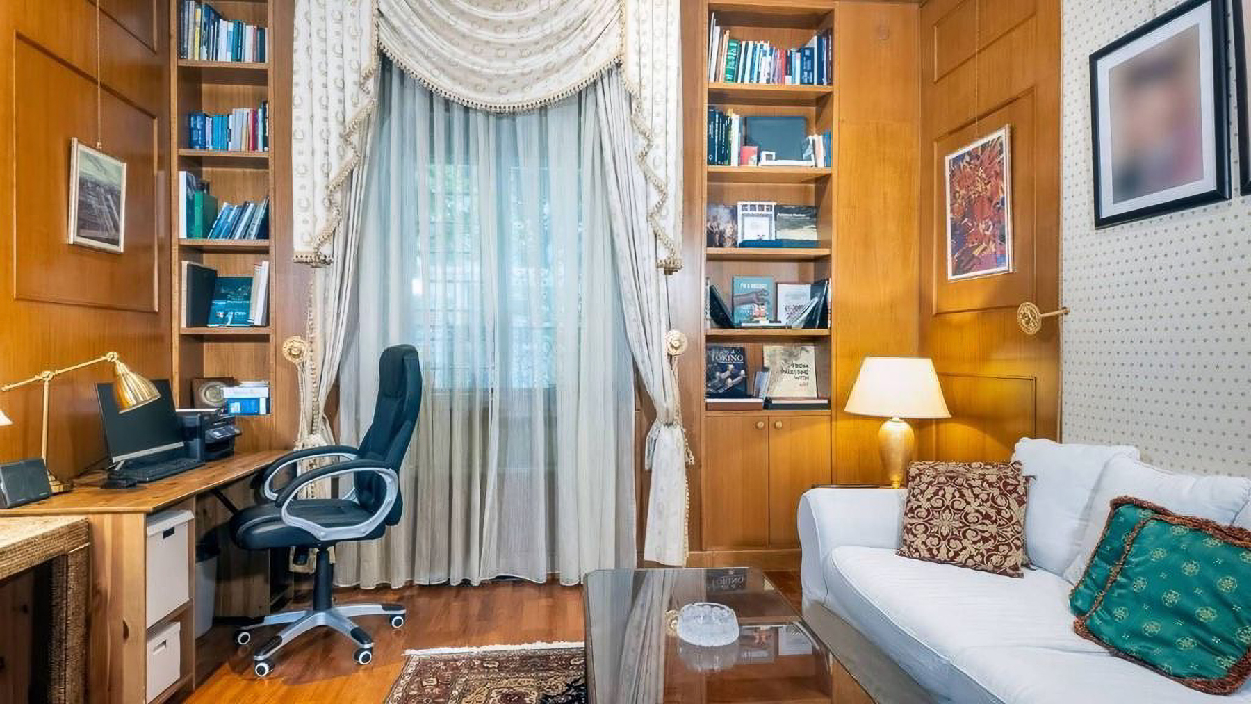 Situated in the vibrant heart of Rome, this stunning residence is a sanctuary of elegance and warmth. The space invites you in with a symphony of textures and colors: imagine the soft glow of sunlight filtering through large glass doors, the gentle rustle of leaves in the private garden, and the rich aroma of Italian espresso wafting through the air. Spanning 300 square meters, this luxurious home boasts five meticulously designed rooms and three opulent bathrooms, each echoing the sophistication of classic decor combined with modern flair. The living area is a masterpiece of design, featuring an ornate turquoise and gold couch, a variety of seating options, and exquisite wooden furniture. The space is adorned with framed artwork and decorative pieces, creating a gallery-like ambiance. Large glass doors open to the garden, seamlessly blending indoor and outdoor living. Living in this property is an experience like no other. Envision mornings filled with serene walks in your private garden, afternoons spent in the sunroom bathed in natural light, and evenings gathered with loved ones in the cozy yet sophisticated living area. The combination of classic and modern elements creates an atmosphere of timeless elegance. This residence in Rome is not just a home; it is a rare jewel that embodies luxury and comfort. It's an opportunity to own a piece of architectural brilliance, offering a lifestyle of unparalleled prestige and sophistication.
