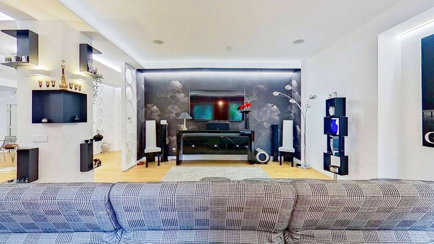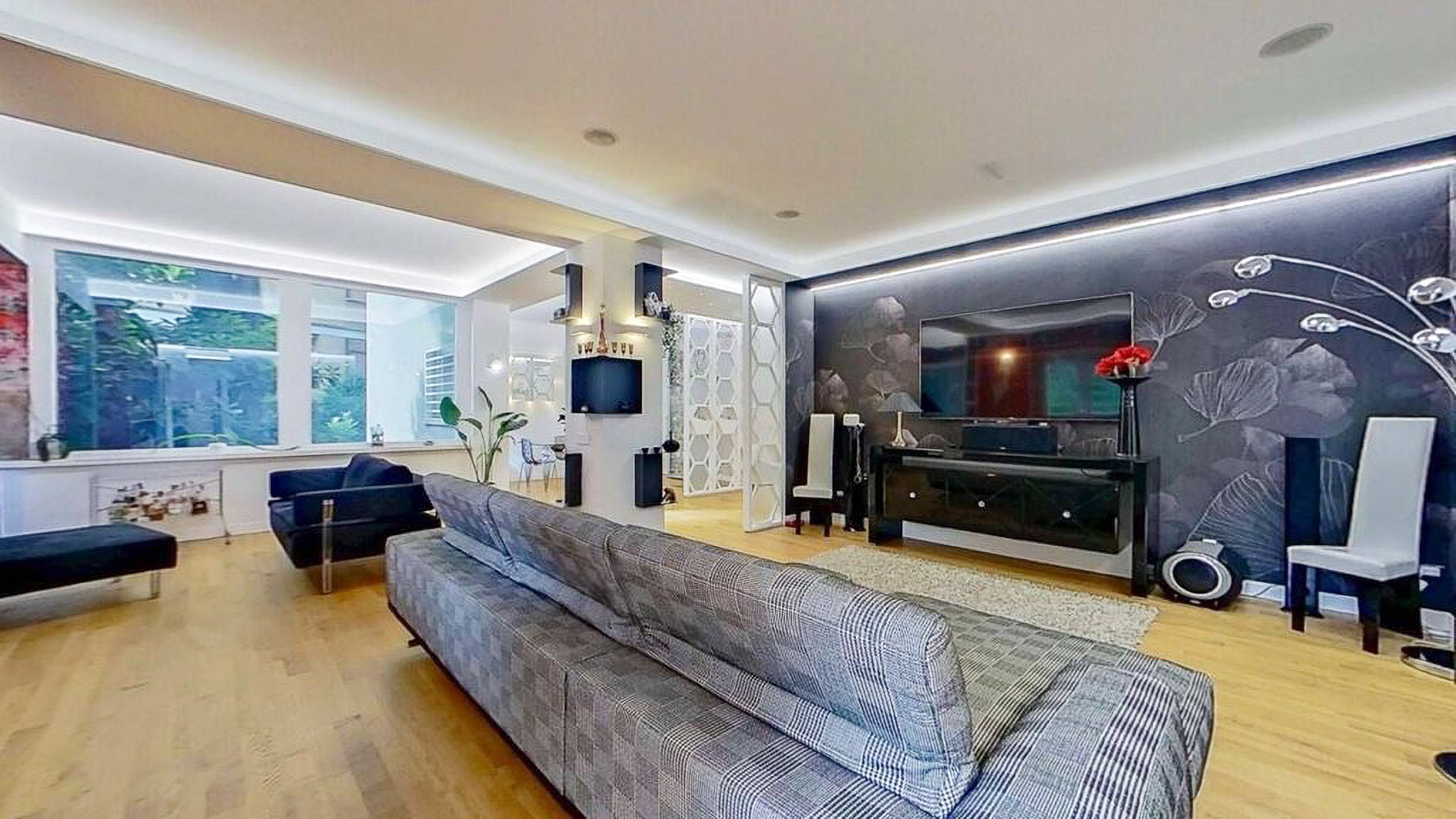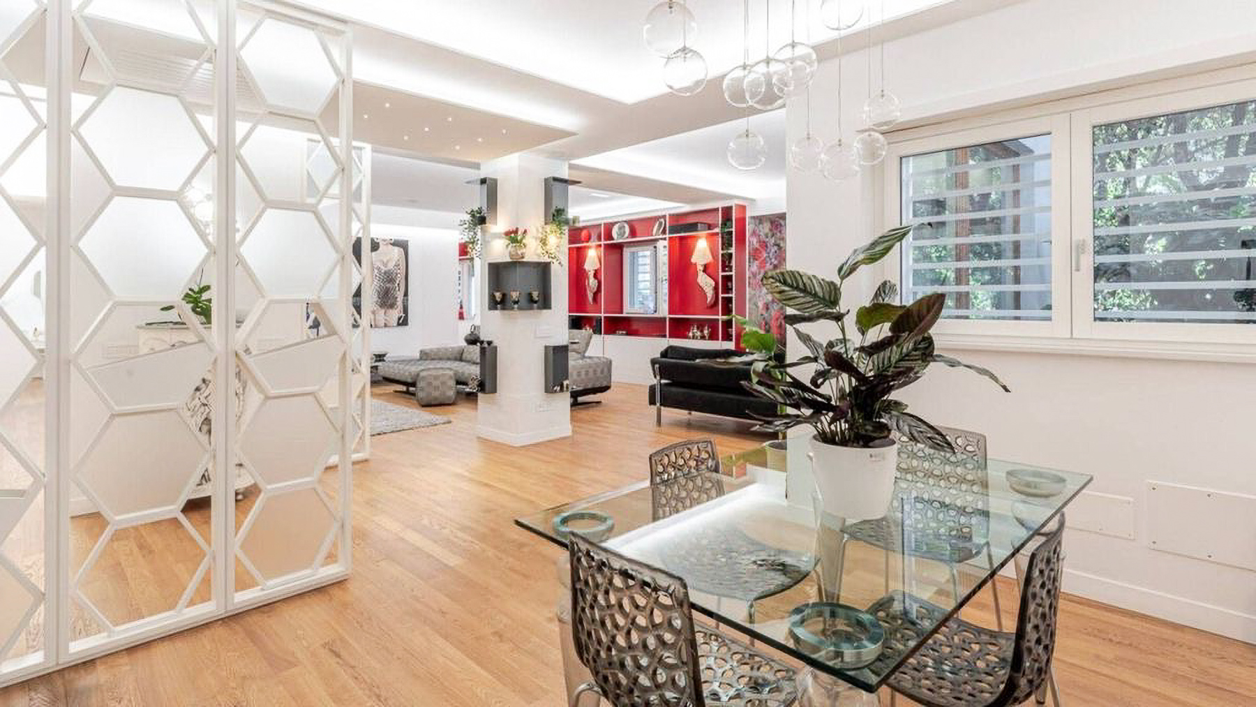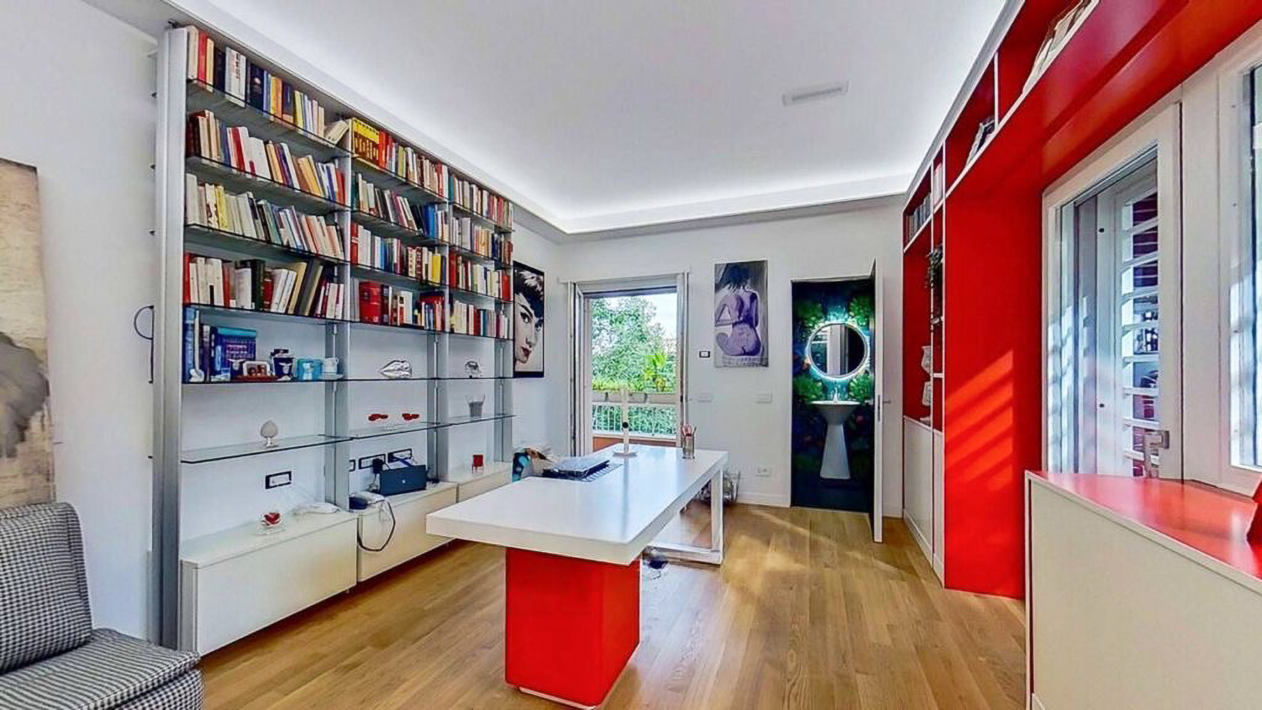 Envision a contemporary sanctuary where modern design meets serene surroundings. Bathed in natural light, this exquisite living space invites you into a world of elegance with large windows offering verdant views. The gentle hum of the city outside enhances the peaceful ambiance, creating an inviting retreat in the heart of bustling Rome. This stunning 171 square meter property boasts five spacious rooms and three luxurious bathrooms, seamlessly blending style and comfort. The open layout connects the chic living area with a sophisticated dining space, perfect for entertaining. Distinctive features such as a generous terrace offer the ideal spot for morning coffees or evening gatherings. Located in the vibrant city of Rome, this home epitomizes urban living with a touch of tranquility. Experience the joy of city life from the comfort of your own private oasis. Picture yourself unwinding on the checkered sectional sofa, surrounded by artistic décor and subtle lighting that creates a cozy yet vibrant environment. The terrace beckons for alfresco dining, where you can savor a meal under the stars, immersed in the city's charm. This exclusive residence is a testament to refined living, offering a rare blend of contemporary design and artistic flair. A true masterpiece in the luxury real estate market, it promises an unparalleled lifestyle in one of the world's most iconic cities.