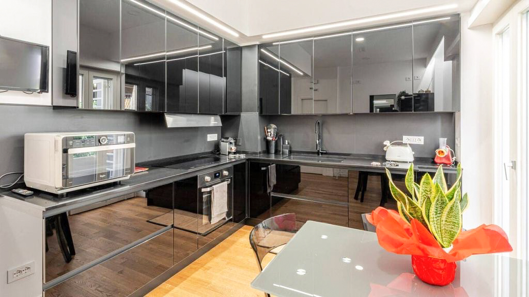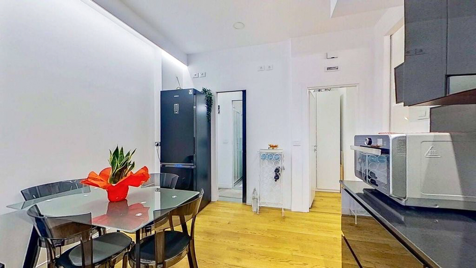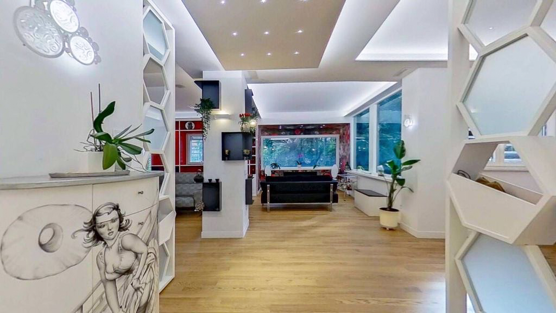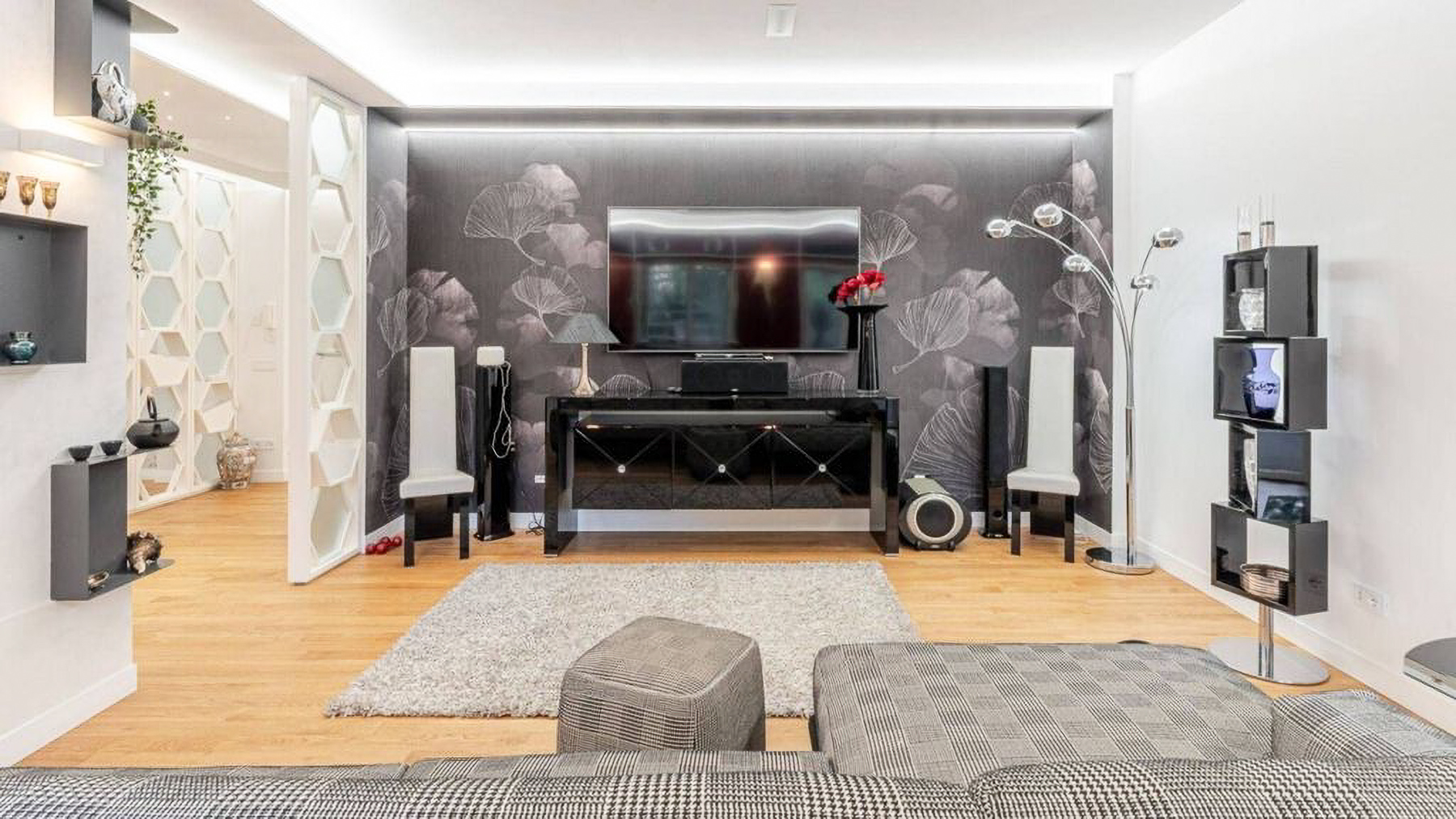 Envision a contemporary sanctuary where modern design meets serene surroundings. Bathed in natural light, this exquisite living space invites you into a world of elegance with large windows offering verdant views. The gentle hum of the city outside enhances the peaceful ambiance, creating an inviting retreat in the heart of bustling Rome. This stunning 171 square meter property boasts five spacious rooms and three luxurious bathrooms, seamlessly blending style and comfort. The open layout connects the chic living area with a sophisticated dining space, perfect for entertaining. Distinctive features such as a generous terrace offer the ideal spot for morning coffees or evening gatherings. Located in the vibrant city of Rome, this home epitomizes urban living with a touch of tranquility. Experience the joy of city life from the comfort of your own private oasis. Picture yourself unwinding on the checkered sectional sofa, surrounded by artistic décor and subtle lighting that creates a cozy yet vibrant environment. The terrace beckons for alfresco dining, where you can savor a meal under the stars, immersed in the city's charm. This exclusive residence is a testament to refined living, offering a rare blend of contemporary design and artistic flair. A true masterpiece in the luxury real estate market, it promises an unparalleled lifestyle in one of the world's most iconic cities.