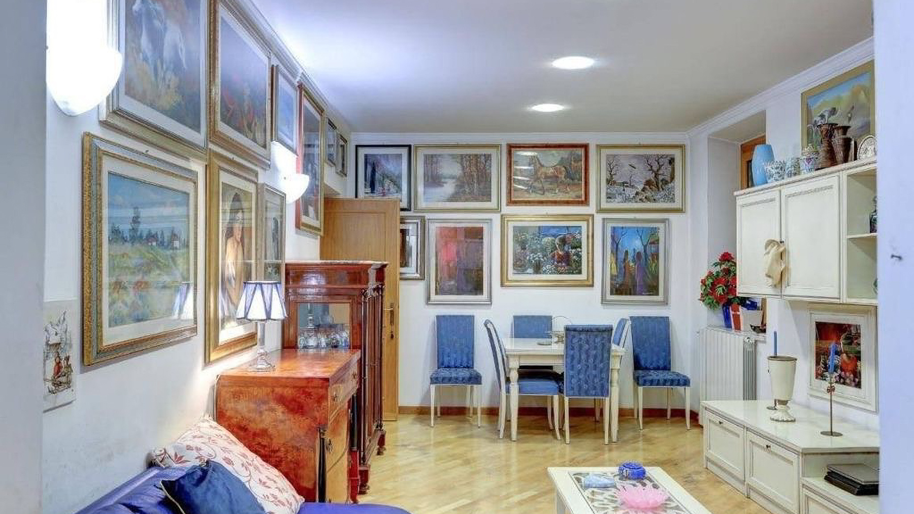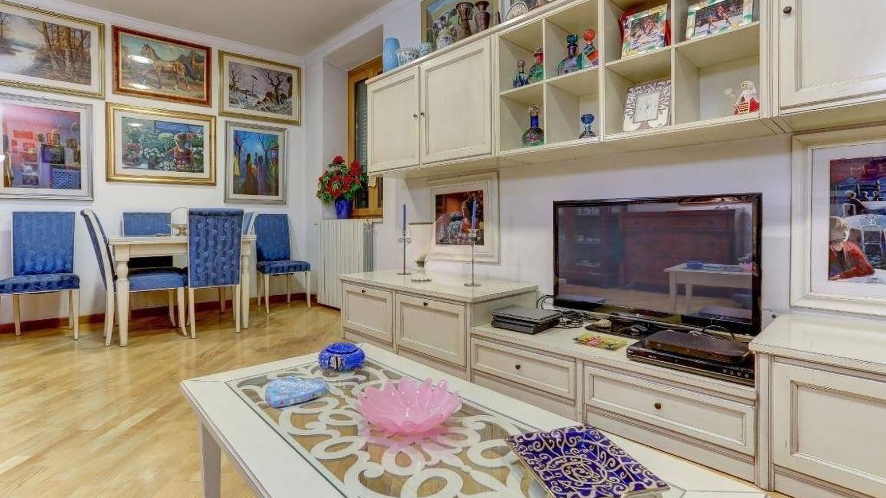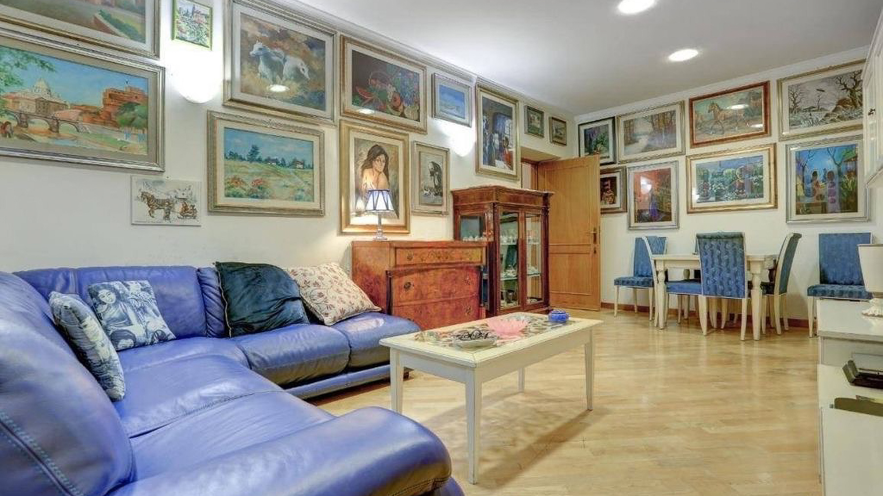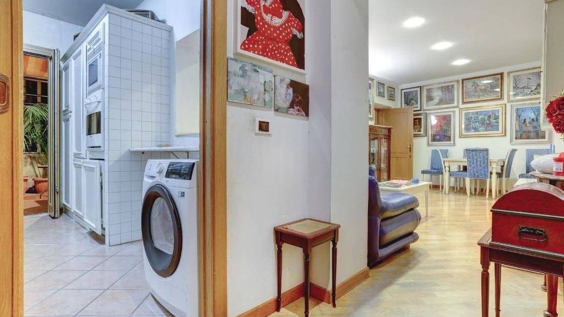 Tucked away in the vibrant heart of Rome, this exquisite property offers a sanctuary of elegance and charm. As you enter, the gentle warmth of natural light dances across the room, highlighting the artistic flair of its decor. The soft murmur of the city provides a comforting backdrop, enhancing the allure of this luxurious haven. Spanning 121 square meters, this residence boasts three beautifully appointed rooms and two luxurious bathrooms, epitomizing sophistication and comfort. The highlight is an enchanting terrace, perfect for savoring morning coffee or evening aperitifs. Located in Rome, Rome (RM), this property is an embodiment of city living with a touch of serene exclusivity. Imagine unwinding in the cozy living room, where a plush blue sectional sofa invites you to relax amidst a collection of eclectic art. Step outside to the intimate balcony, adorned with lush potted palms, offering a private oasis where you can enjoy the tranquility of your surroundings. This residence is a true testament to refined luxury and contemporary living. It stands as a distinctive gem within the prestigious landscape of Rome's luxury real estate market, offering an unparalleled lifestyle for those who seek the extraordinary.