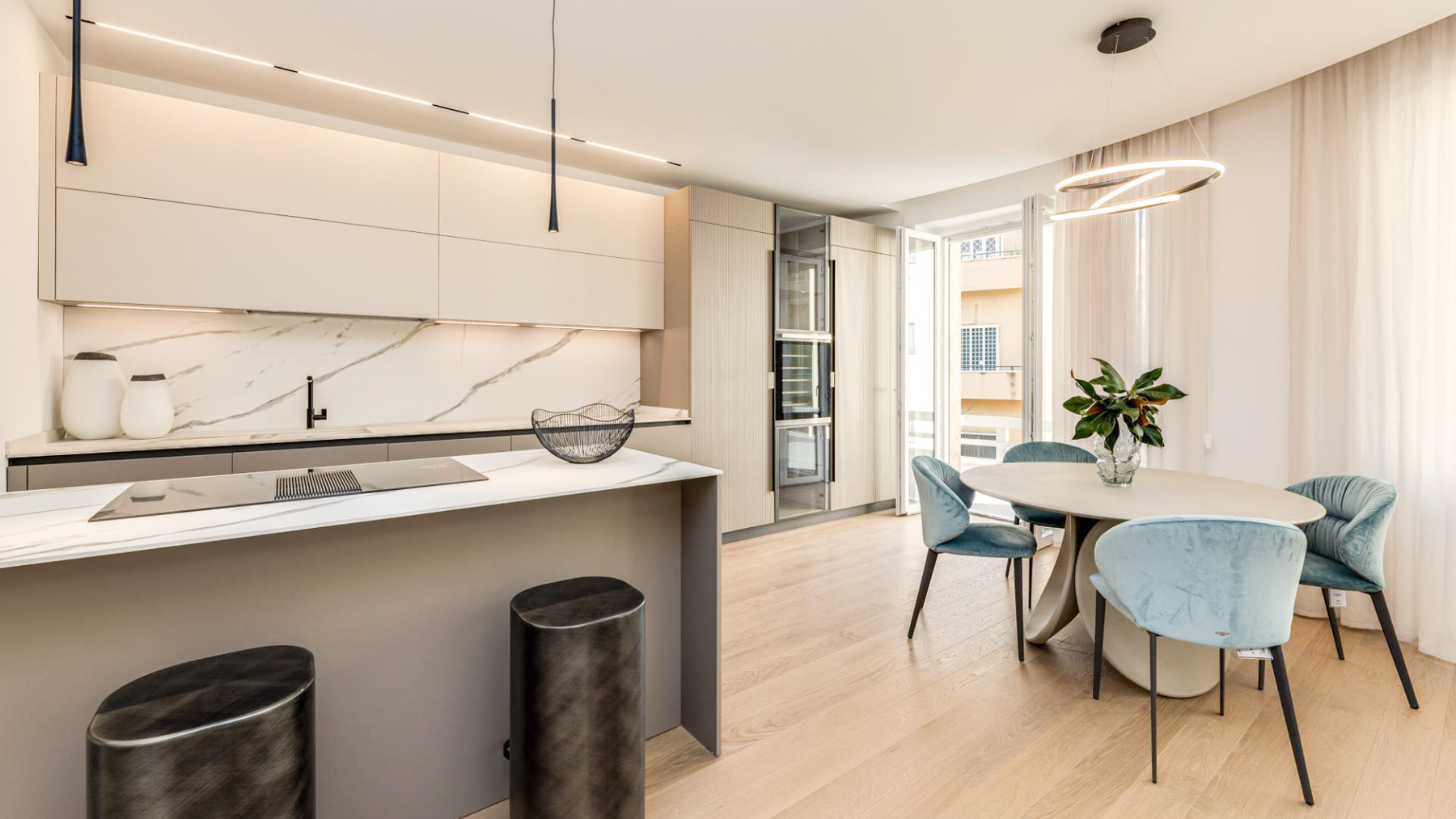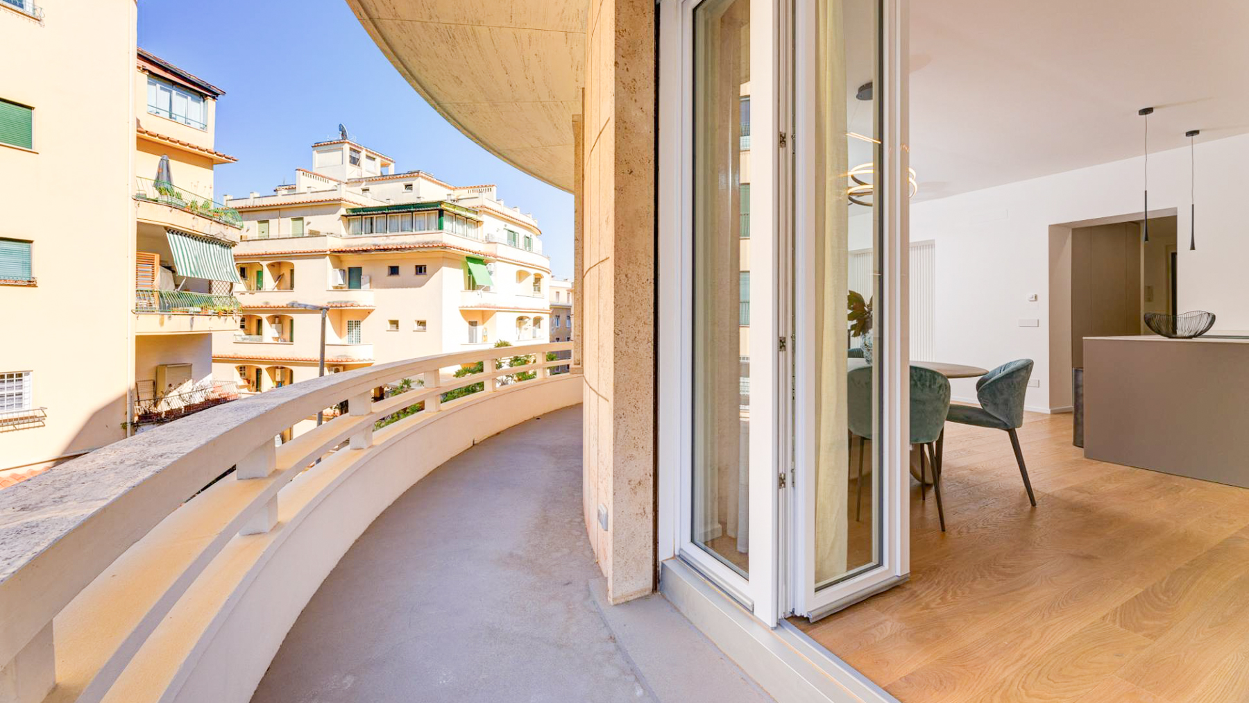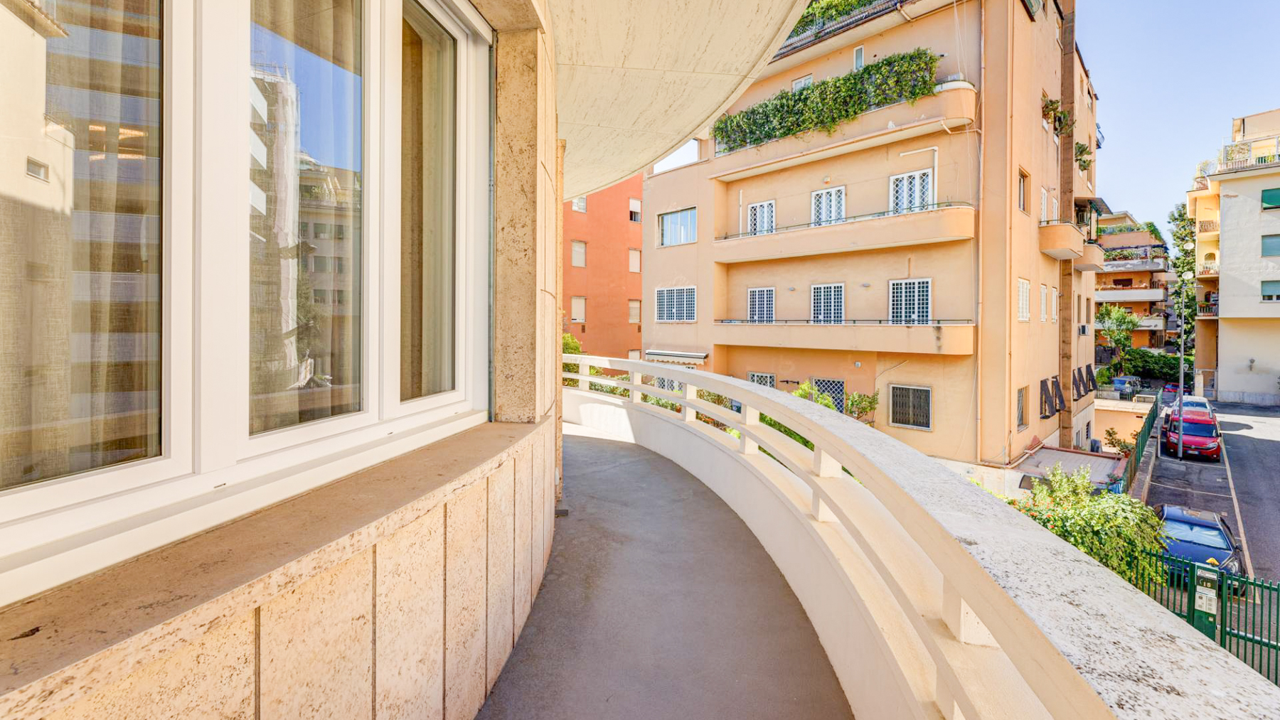 Perched gracefully amidst the vibrant tapestry of Rome, this exquisite property offers a symphony of light and architectural elegance. Imagine stepping onto a sunlit balcony where the scent of blooming flowers mingles with the warmth of the Italian sun, creating a serene oasis in the heart of the city. Spanning 121 square meters, this luxurious residence features three spacious rooms and two elegantly designed bathrooms, offering ample space for relaxation and entertainment. The property is adorned with distinctive elements such as multiple layers of balconies embellished with vibrant flowers, providing a seamless blend of nature and urban living. Large windows invite natural light to dance across the smooth surfaces, creating a bright and inviting atmosphere. Situated in the heart of Rome, this property embodies the quintessential city lifestyle, where history and modernity coexist harmoniously. Living here means embracing a life filled with vibrant city experiences and tranquil moments. Picture yourself enjoying morning coffee on the curved balcony as the city awakens around you, or hosting intimate gatherings against the backdrop of Rome's enchanting skyline. The balance of urban energy and peaceful retreat is perfectly captured in this remarkable home. This residence is a testament to refined luxury and sophisticated living—a rare opportunity to own a piece of Rome's architectural heritage while enjoying all the comforts of modern life.