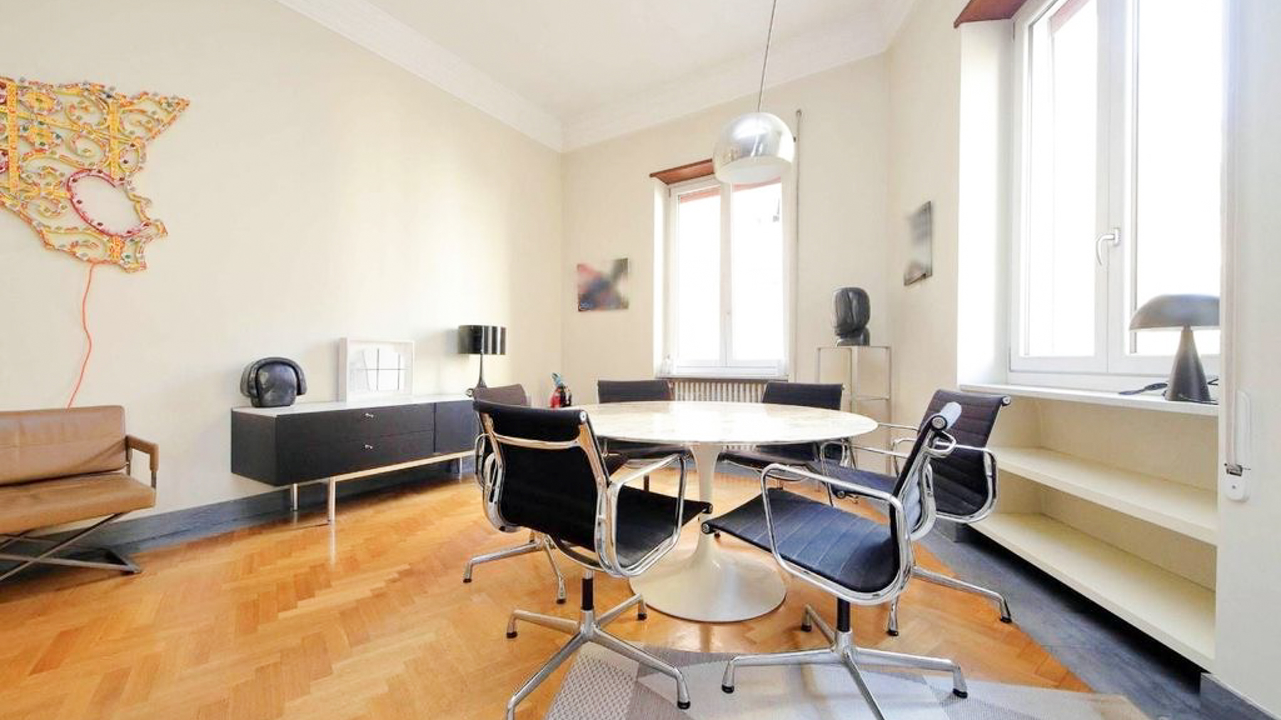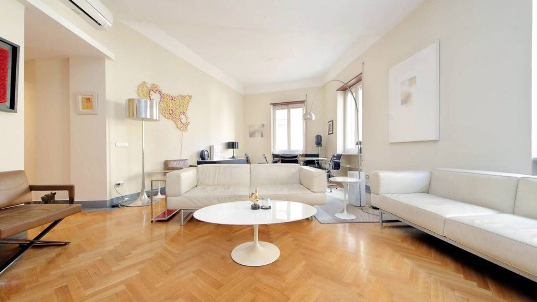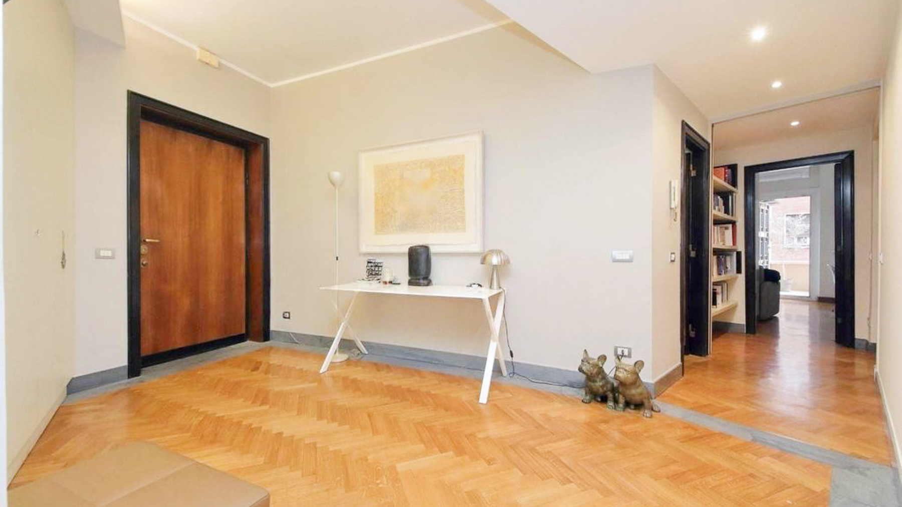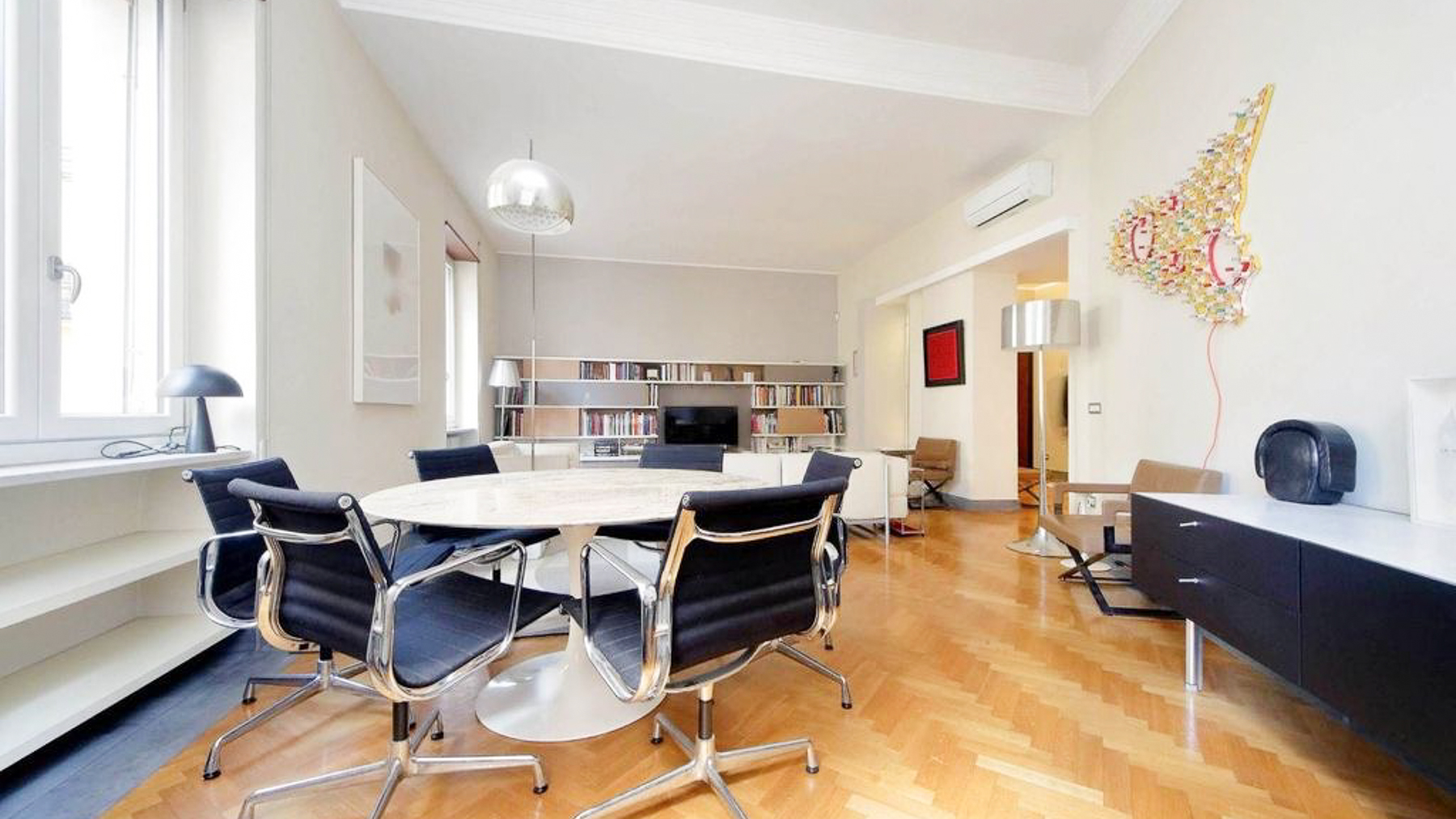 Immerse yourself in the essence of modern luxury and sophistication in this exquisite residence, where every corner exudes elegance and style. Bathed in natural light, the harmonious blend of contemporary design and comfort invites you to experience a lifestyle of distinction in the heart of Rome. Spanning 185 square meters, this spacious abode offers four meticulously designed rooms and two luxurious bathrooms, ensuring ample space for relaxation and entertainment. The living area boasts a sleek, open-concept design, featuring a round dining table with chic black chairs, illuminated by a stylish ceiling fixture. Bookshelves brimming with literary treasures and a low unit housing a television create a cozy yet modern aesthetic. The bedroom, minimalist in its decor, offers a serene retreat, complete with a large mirror and an inviting doorway leading to a private bathroom. Situated in the vibrant city of Rome, this property promises an unparalleled urban lifestyle. Experience the allure of living in this stunning home, where the wooden floors and expansive windows allow for a seamless flow of light and space. Picture your mornings filled with warmth and serenity, as you enjoy a cup of coffee by the window, soaking in the panoramic views of the cityscape. This is more than a home; it's a canvas for your dreams and aspirations. A rare opportunity in the luxury real estate market, this property epitomizes sophistication and exclusivity. Embrace the chance to own a piece of modern elegance in one of the world's most iconic cities.