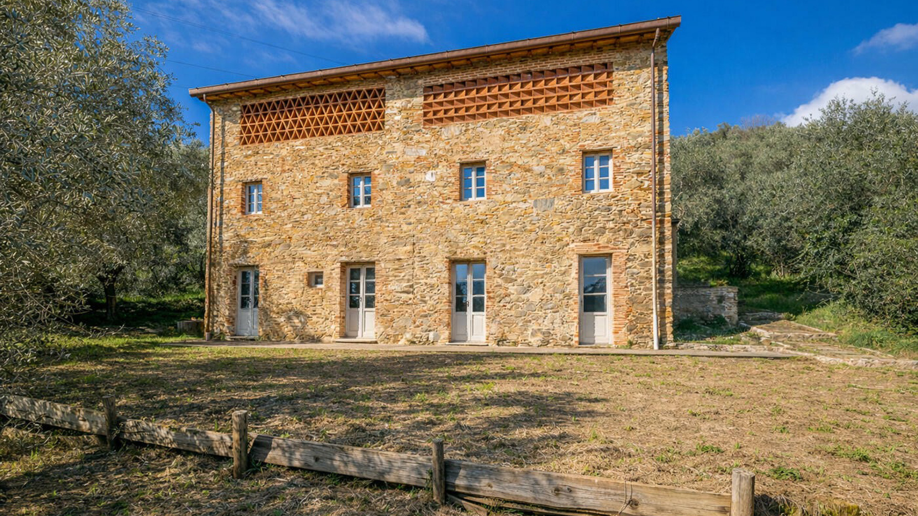 In the serene embrace of the Tuscan hills, where the scent of olive trees mingles with the gentle breeze, lies a historic 19th-century stone farmhouse. This picturesque retreat offers a perfect blend of luxury and tranquility, where the natural beauty of the landscape complements the rich tapestry of history woven into every stone. This exceptional property spans 230 sqm and includes nine rooms and five bathrooms, providing ample space for comfort and elegance. The farmhouse, located in the enchanting locale of Camaiore in Lucca, is surrounded by 11,000 sqm of lush land, predominantly olive groves. The meticulously restored main building features original 19th-century ceilings, exposed wooden beams, and stone walls that echo the whispers of the past. With its annex offering additional accommodation, this estate is perfect for those seeking a prestigious private residence or a tranquil holiday home. Living here is an experience steeped in charm and serenity. Picture yourself in the summer lounge, where terracotta screens create mesmerizing patterns of light and shadow, or wandering among the olive trees, enveloped in the timeless beauty of the Tuscan countryside. It's a place where history and nature converge to offer a unique lifestyle. This farmhouse is not just a home; it is a testament to enduring elegance and authenticity. With its rare blend of historical significance and modern potential, it stands as a jewel in the luxury real estate market, destined to captivate and endure.