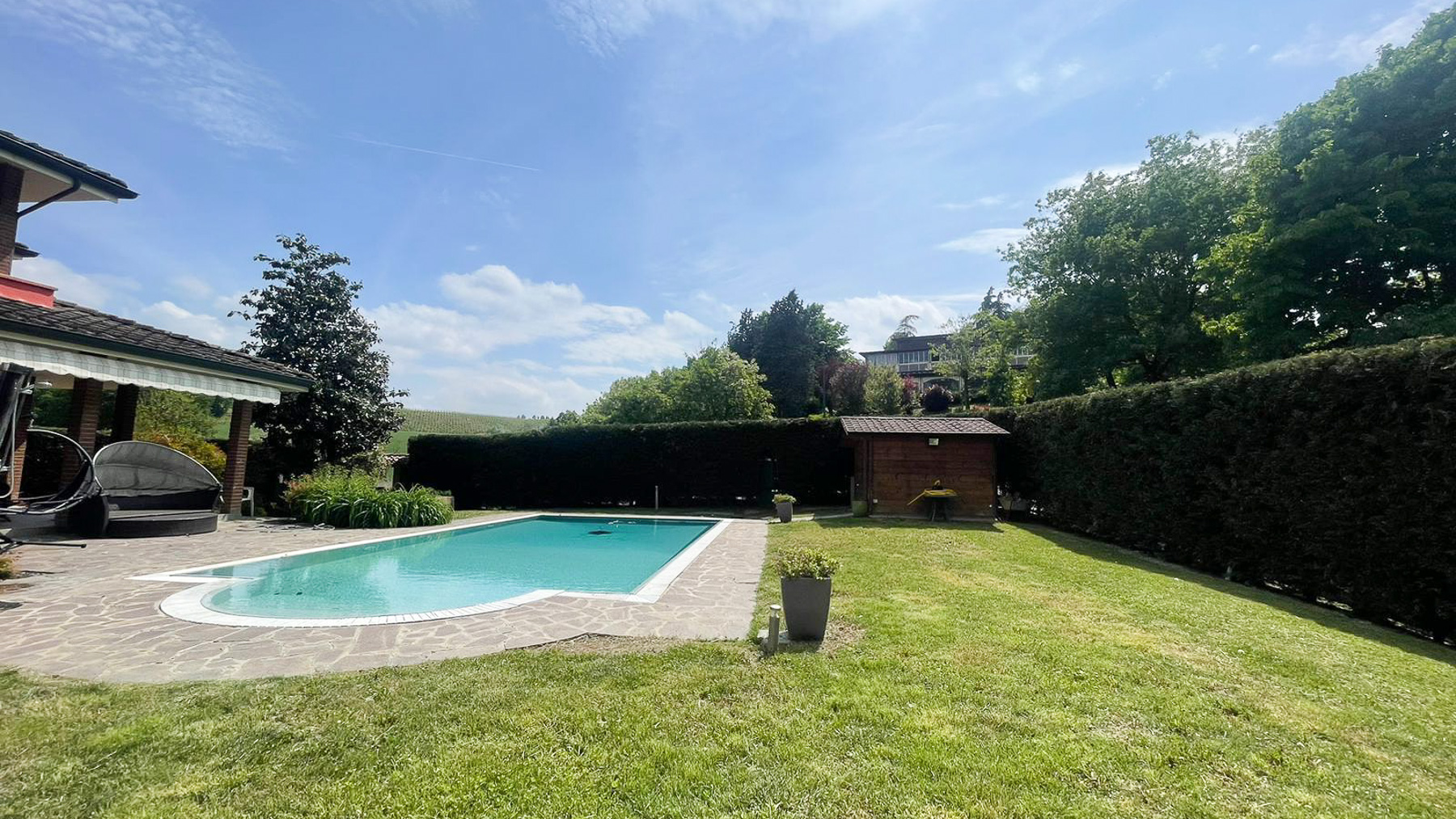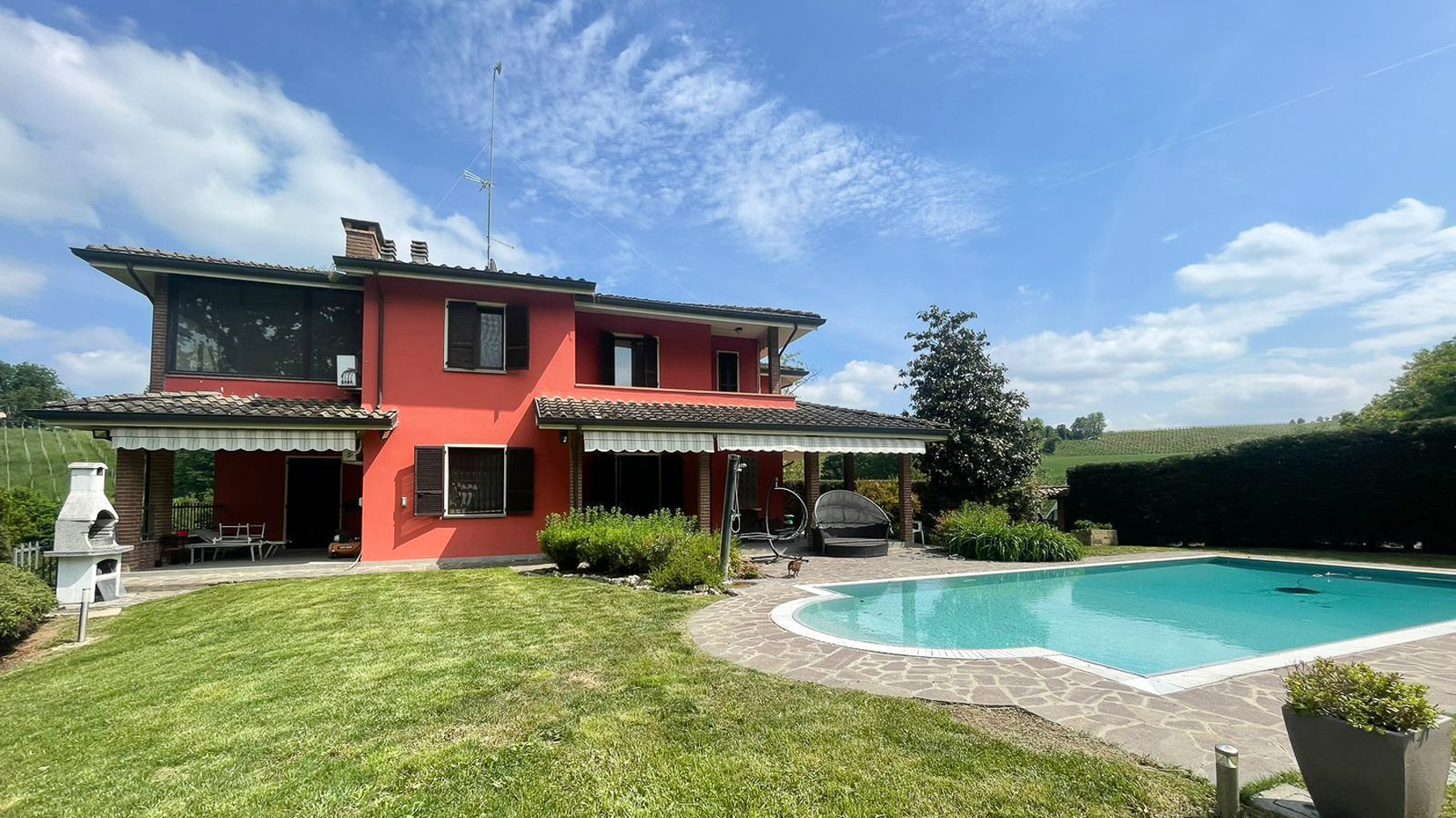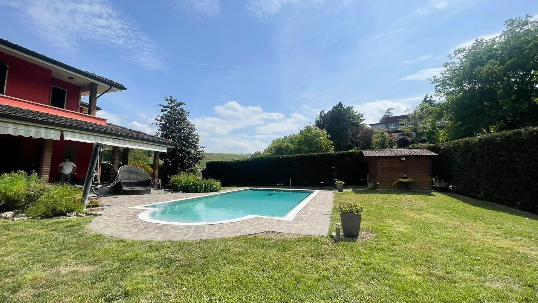 On the peaceful hills of Cortina d’Alseno, where the landscape opens in soft light and the air carries a sense of calm, this villa with a swimming pool rises as a generous and welcoming home, close to well-equipped nearby towns yet immersed in privacy. Spread across three perfectly maintained levels, the property reflects meticulous care in every interior and outdoor detail, blending family comfort with refined functionality. The main level features an entrance leading to a modern eat-in kitchen, an expansive and sunlit living room with fireplace, three bedrooms and a recently renovated bathroom. The upper floor, accessible both from the internal staircase and from an independent entrance, mirrors the same layout with a large kitchen, a bright living room with fireplace, three additional bedrooms and a bathroom, making the villa ideal also for dual-family living. The lower level includes a kitchen, a dining room, a cellar, a laundry room, a spacious taverna and a bathroom, together with two garages connected directly to the courtyard. From the main level, a generous veranda opens onto the wide garden and the large in-ground pool, a setting made for summer days and relaxed gatherings. Windows, floors and systems are modern and well maintained, ensuring immediate comfort throughout the year. Life here unfolds between open-air dinners, slow afternoons by the pool and the embrace of the surrounding greenery, a place where time stretches gently and every space invites a renewed sense of balance.