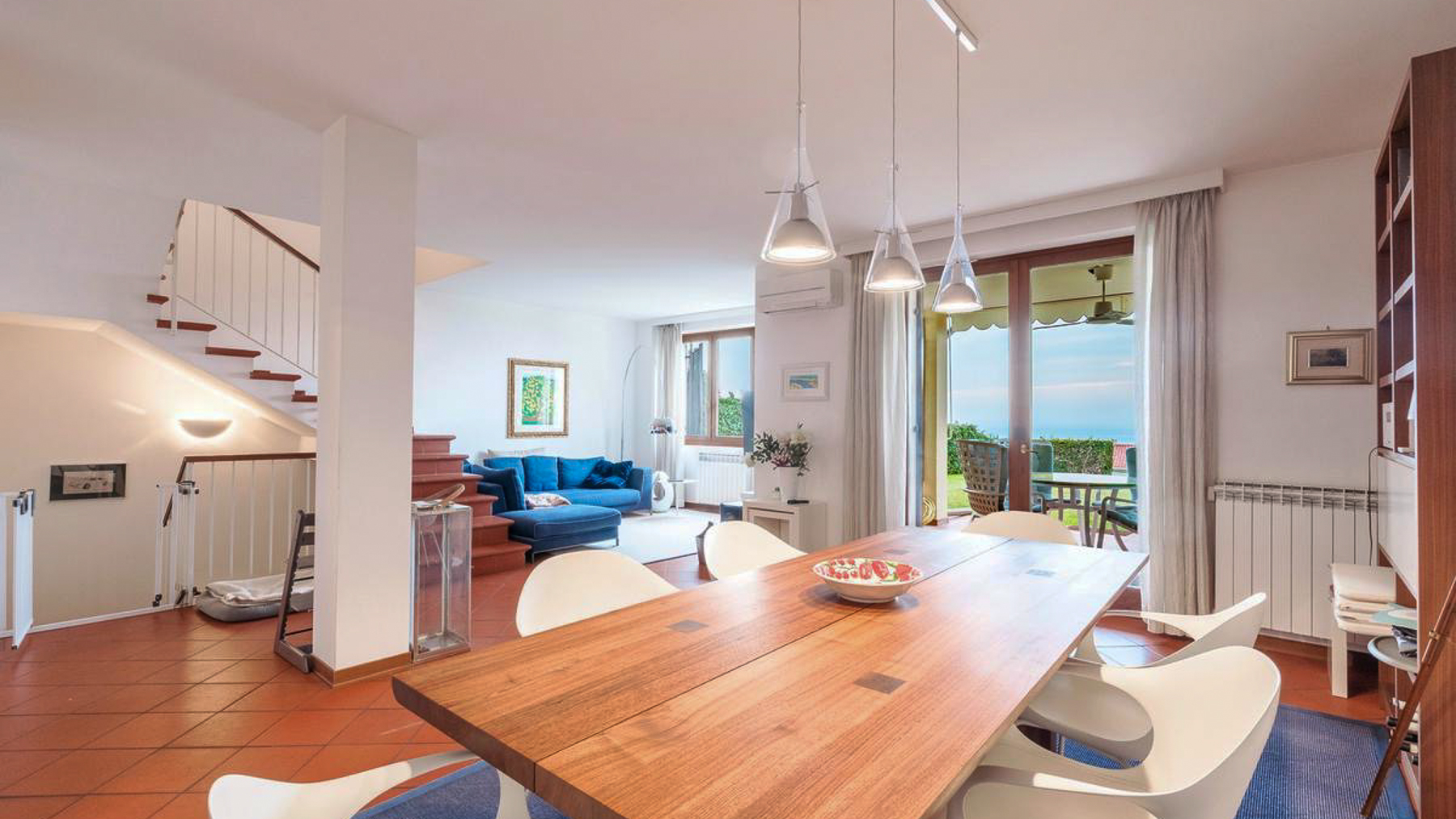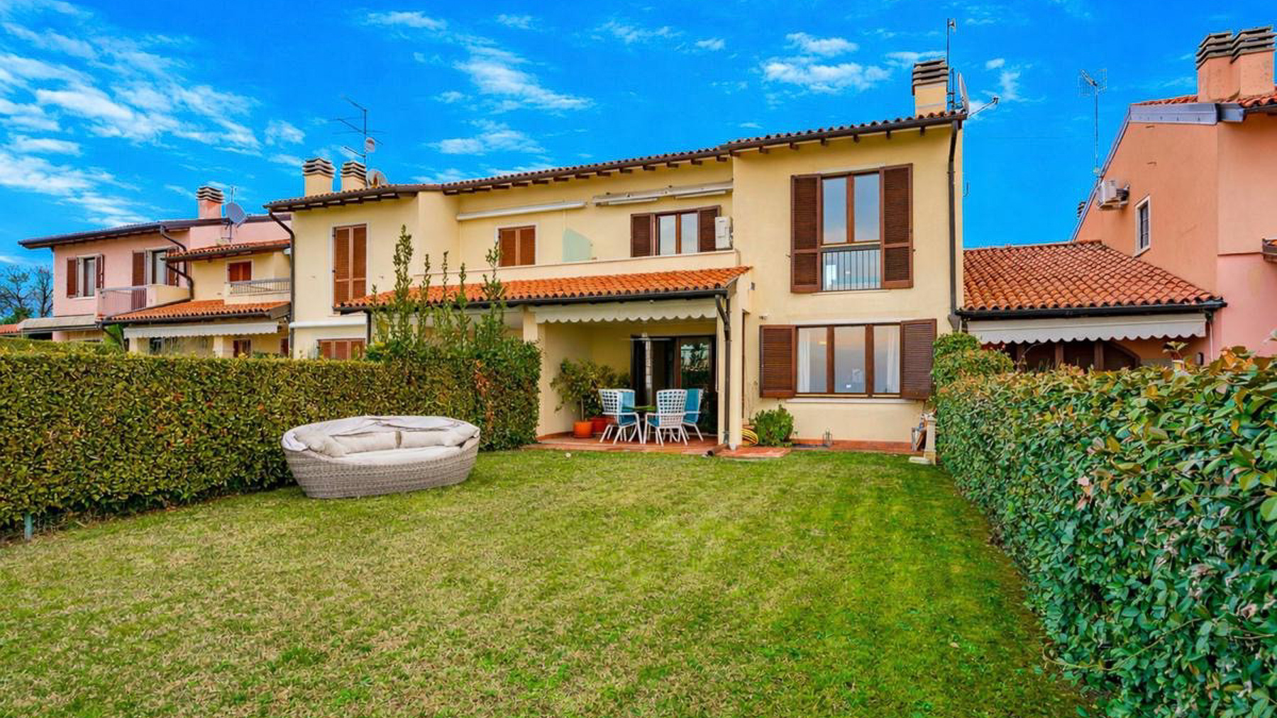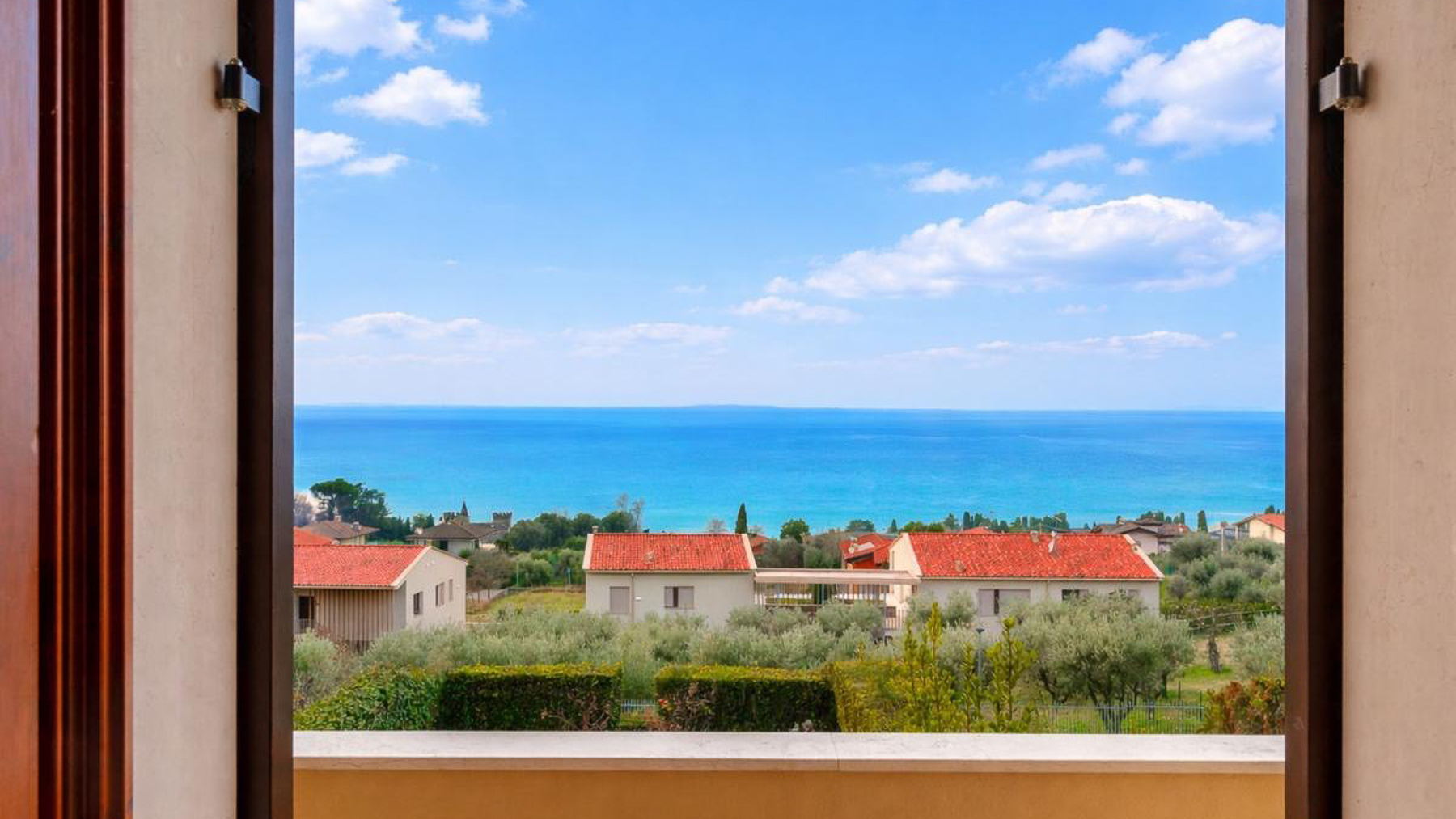 Perched gracefully along the coastline, this exquisite property invites you into a world of serenity and splendor. Imagine waking to the gentle sound of waves, as the morning light dances on the ocean's surface, illuminating the vibrant hues of the garden. The air is filled with the scent of salt and blooming flowers, enveloping you in a sense of peace and luxury. Spanning an impressive 210 square meters, this elegant home in Lazise, Verona, offers six spacious rooms and three luxurious bathrooms. The property is characterized by its warm, welcoming color palette of yellows and browns, with distinctive tiled roofs. A highlight is the expansive terrace, providing breathtaking views of the ocean. The beautifully landscaped garden, complete with a cozy outdoor seating arrangement and dining set, offers an idyllic retreat for relaxation and entertainment. Surrounded by lush green hedges, the property exudes a cozy yet sophisticated atmosphere. Life here is an experience of unparalleled tranquility and style. Picture yourself enjoying leisurely afternoons in the sun-drenched garden, the soft grass beneath your feet and the refreshing breeze from the lake invigorating your senses. As evening falls, the terrace becomes a perfect spot for alfresco dining, where you can savor delicious meals while watching the sun dip below the horizon. This property is a true masterpiece, offering the ideal blend of natural beauty and luxurious living. A unique opportunity awaits to own a piece of paradise in the prestigious locale of Lazise, where every day feels like a dream.