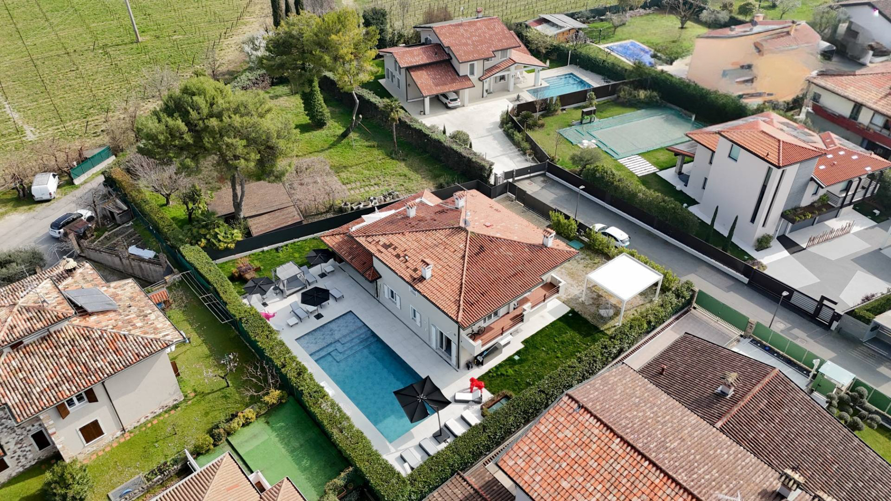 In the picturesque setting of Desenzano del Garda, where the serene beauty of the Italian lakes meets modern luxury, lies a home that promises a life of elegance and relaxation. Imagine waking up to the gentle rustle of leaves and the sight of your private pool shimmering under the morning sun, a sanctuary of peace amidst lush surroundings. Spanning 270 square meters, this exquisite residence boasts seven well-appointed rooms, two luxurious bathrooms, and distinctive features that cater to an opulent lifestyle. The property includes a private garden, perfect for leisurely strolls or intimate gatherings, and a spacious terrace where you can savor breathtaking views of the verdant landscape. Located in the vibrant community of Brescia, this home offers the ideal blend of tranquility and accessibility, ensuring a lifestyle marked by both convenience and exclusivity. Living here is an experience unto itself. Picture evenings spent lounging by the pool, with the fragrance of the garden enveloping you, or hosting friends on the terrace as the sun sets over the horizon. This home is more than a residence; it is a testament to the art of fine living. This property stands as a beacon of sophistication and comfort, a rare opportunity in the luxury real estate market. It is a harmonious blend of timeless charm and modern amenities, waiting to welcome you into a world of unparalleled elegance.