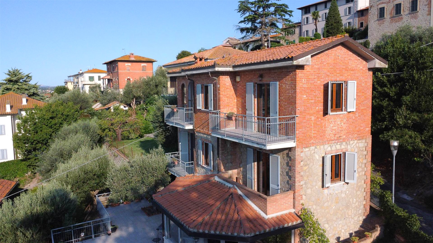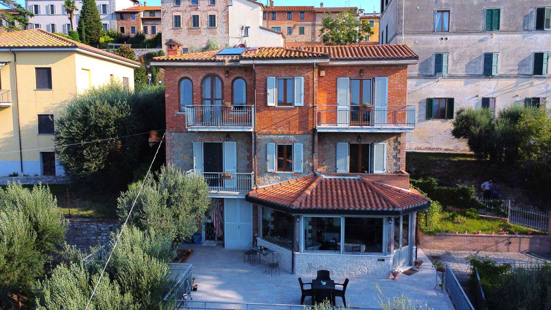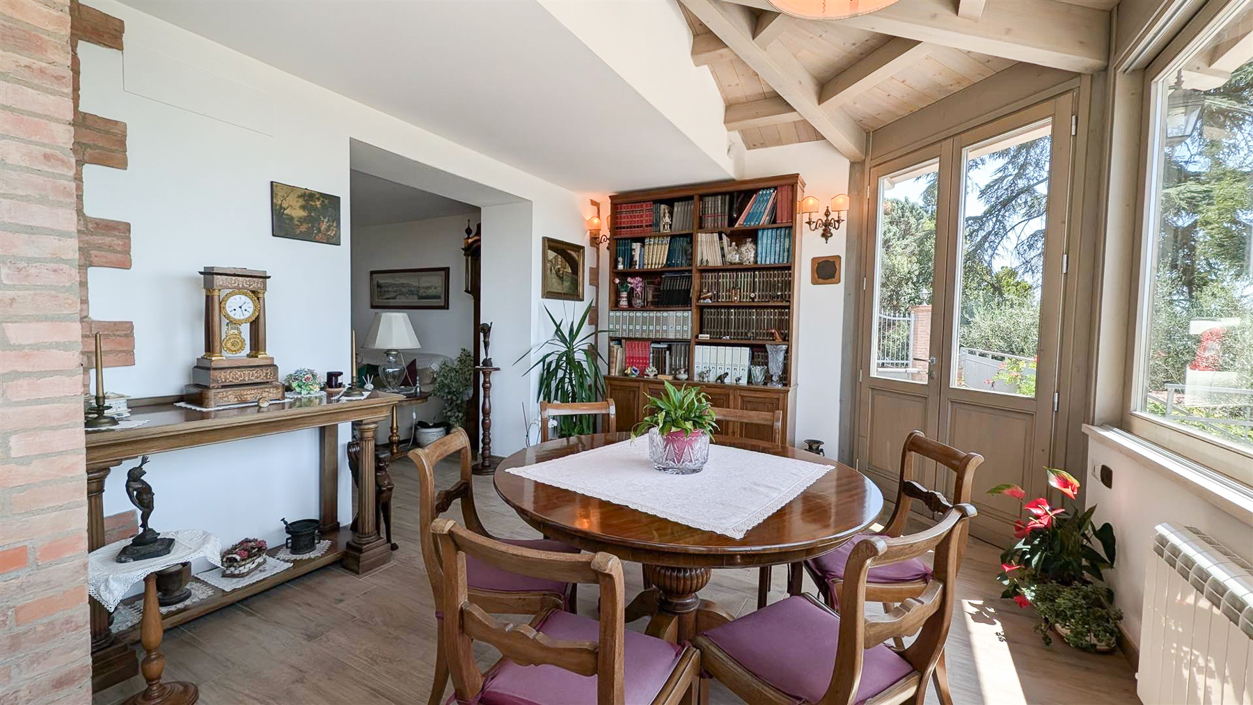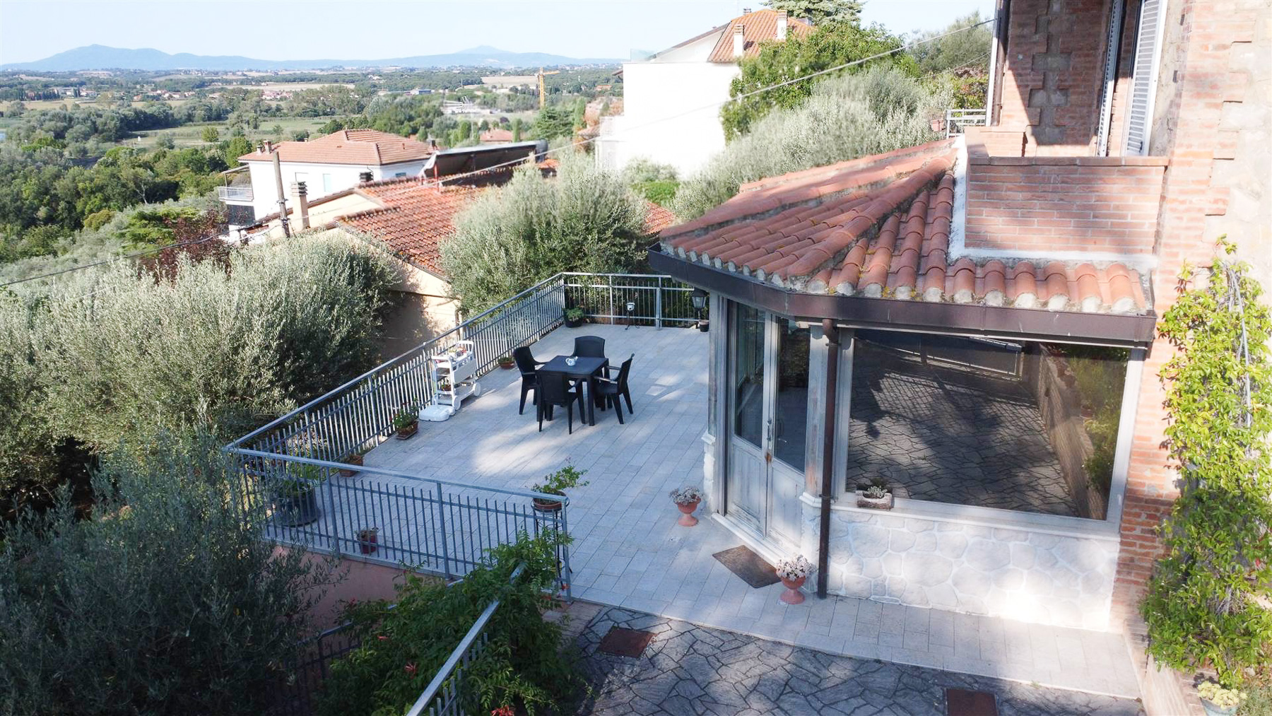 Perched on the edge of Lake Trasimeno, this independent villa offers a serene escape where the gentle breeze carries the scent of olive trees, and the sun's rays dance across the water. Located just a short stroll from the historic center, this property embraces the charm and tranquility of its picturesque surroundings. Spanning approximately 232 sqm across three levels, this villa boasts seven rooms and three bathrooms. The ground floor features a delightful veranda dining area, a spacious kitchen, and a living room that opens onto a stunning 100 sqm panoramic terrace. On the first floor, two double bedrooms with study spaces and a bathroom with a jacuzzi provide comfort and privacy. The second floor's large living room, complete with a fireplace, offers breathtaking views, while an additional bedroom and bathroom ensure ample space for relaxation. With terraces overlooking the lake and a beautifully terraced 500 sqm garden, this property is a true gem in Castiglione del Lago, Provincia di Perugia. Living here means enjoying leisurely afternoons in the verdant garden, surrounded by the whispers of olive leaves. Picture yourself savoring evening meals on the expansive terrace, with the shimmering waters of Lake Trasimeno as your backdrop. This villa is designed for those who cherish both tranquility and elegance. This property is a testament to refined living, where timeless elegance meets contemporary comfort. An exclusive retreat that offers a lifestyle of unparalleled beauty and grace—truly a rare find in the luxury real estate market.