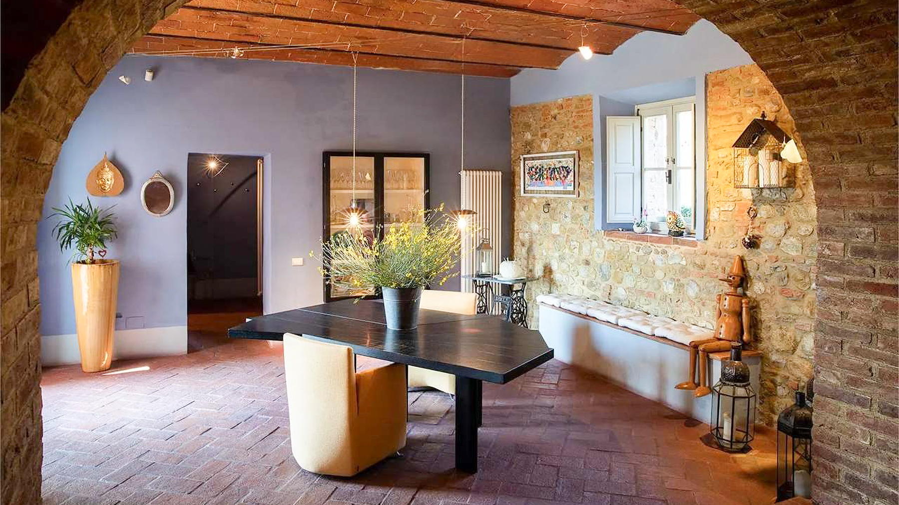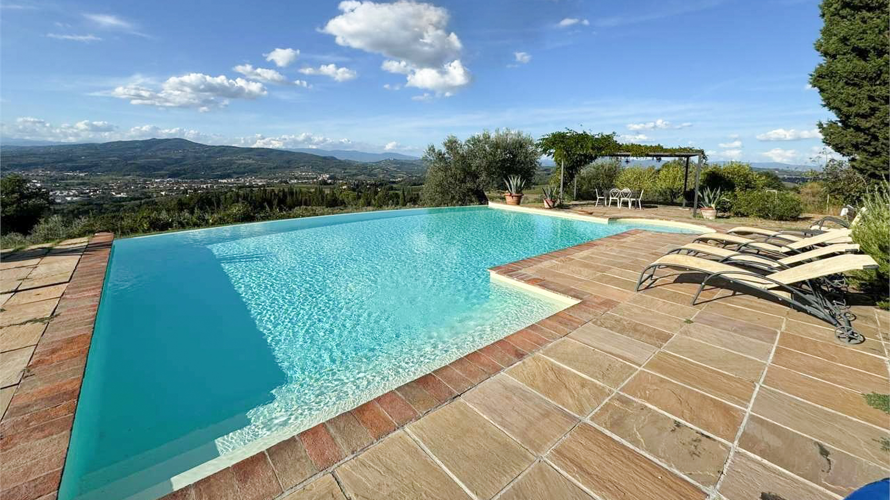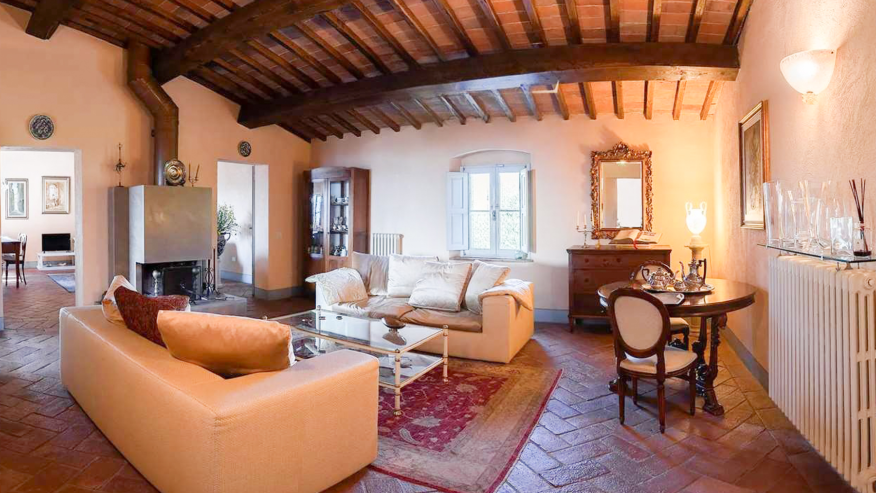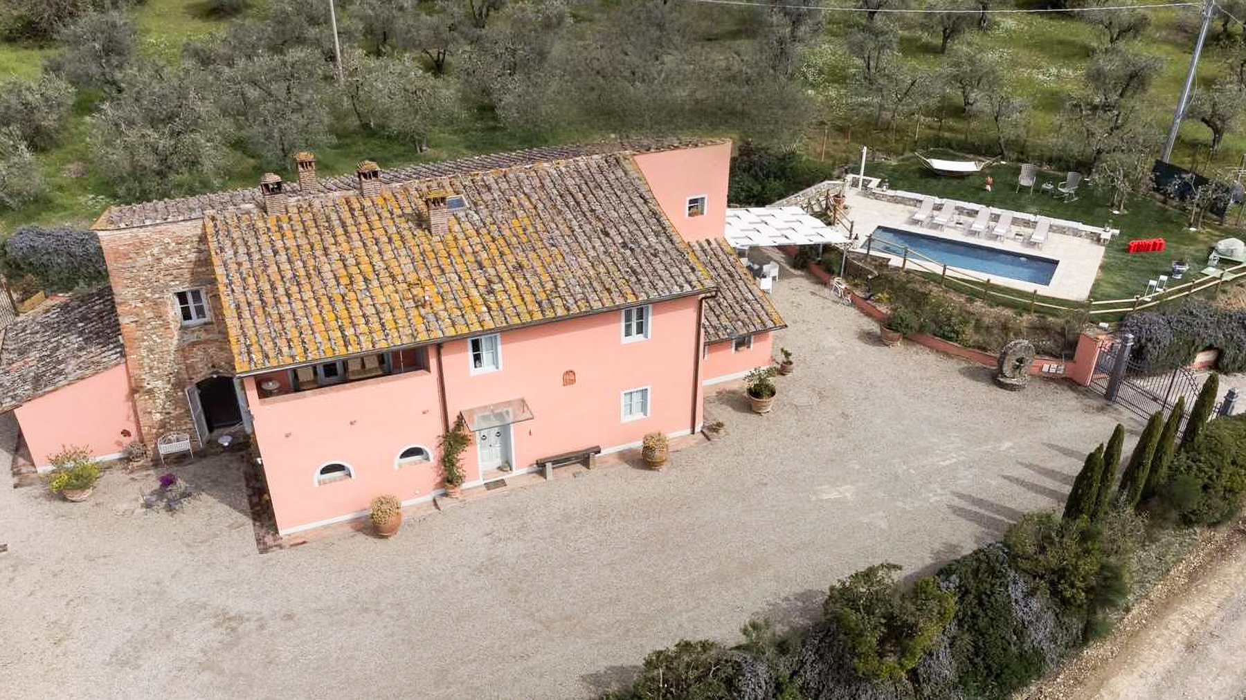 Perched in a dominant and privileged position, this exceptional estate offers breathtaking 360° panoramic views over the enchanting Tuscan countryside and surrounding hills. Only 3 km from Montelupo Fiorentino and within easy reach of Florence, this property is a sanctuary of privacy and authenticity, inviting you to indulge in the ultimate luxury living experience. Spanning 600 sqm, this prestigious property comprises a beautifully restored traditional Tuscan farmhouse and a charming independent barn. With 10 rooms and 8 bathrooms, it accommodates up to 15 guests in exquisite comfort. The estate maintains its authentic Tuscan character with antique terracotta floors, exposed wooden beams, and local stone, while offering modern comforts such as private saltwater swimming pools, hydromassage features, and separate utilities for each of its three independent units. The property also boasts a private garden and terrace, inviting you to relax and unwind. Envision a lifestyle where tranquility meets elegance. Picture yourself enjoying serene mornings in the flourishing olive grove, or savoring leisurely afternoons by the infinity pool, with the gentle breeze carrying the scent of Tuscan blooms. The spacious panoramic terrace is perfect for hosting alfresco dinners under the stars, creating unforgettable moments with loved ones. This estate represents the pinnacle of luxury and comfort—a rare treasure in the heart of Tuscany, ready to be cherished by those who seek an extraordinary living experience.