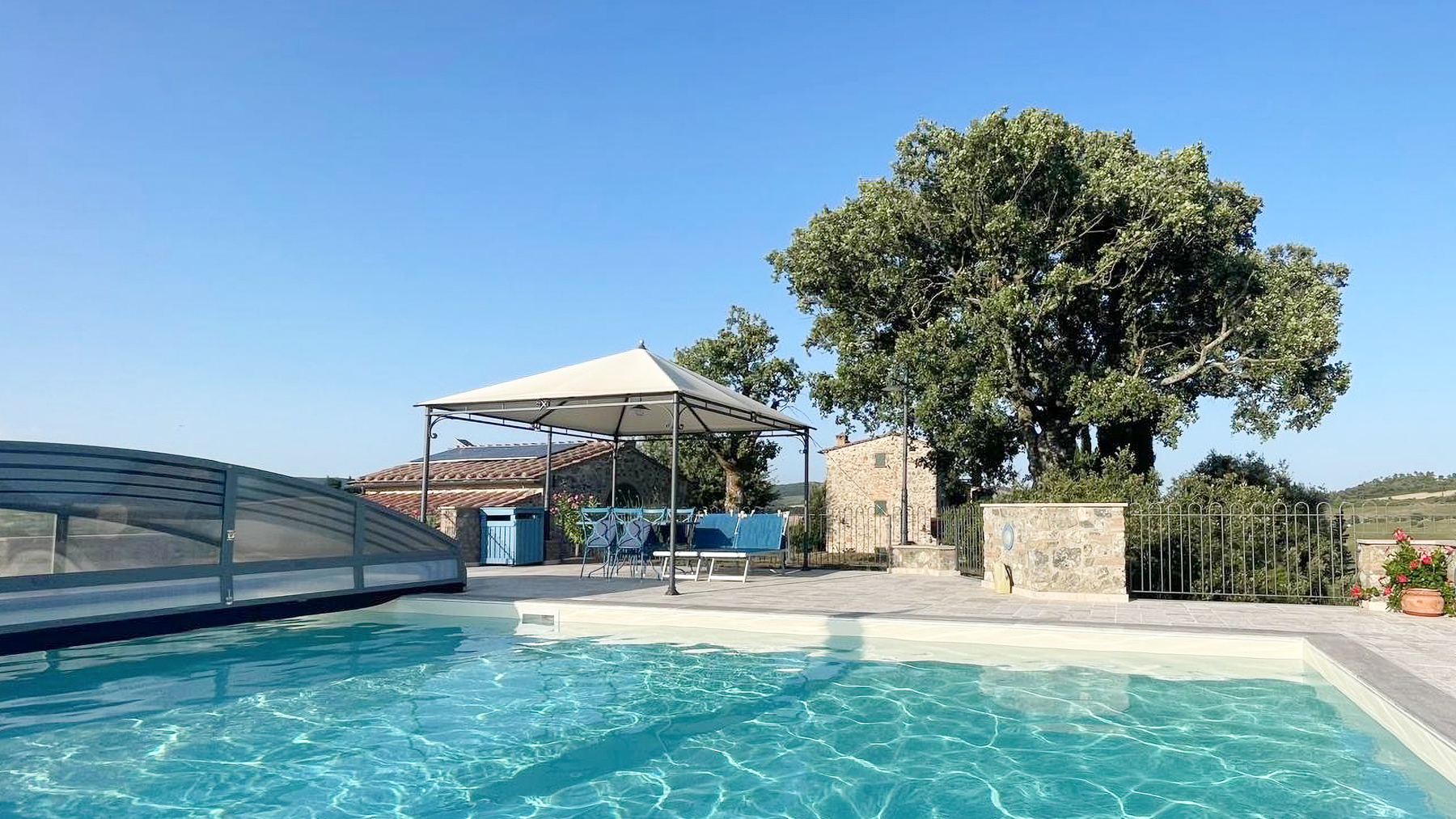 Nascosto tra le dolci colline toscane, a breve distanza dall'antica Volterra, questo agriturismo è un rifugio di pace e comfort. Qui, la natura incontra l'eleganza rustica, dove il profumo degli ulivi e il canto degli uccelli creano un'atmosfera di pura serenità. Con una vista mozzafiato che abbraccia il paesaggio circostante, ogni giorno è un invito a scoprire la bellezza della campagna toscana. La proprietà si estende su 343 mq ed è composta da 15 stanze e 4 bagni, offrendo ampi spazi per il relax e la convivialità. Gli alloggi, elegantemente ristrutturati, conservano il fascino delle vecchie case toscane con soffitti in legno e mattoni a vista. La piscina panoramica, con solarium in marmo travertino, è il luogo ideale per godersi il sole e la vista sulle colline. Un ampio giardino circonda la proprietà, offrendo un angolo di paradiso privato in cui rigenerarsi. Vivere qui significa abbracciare uno stile di vita autentico, immersi in una natura rigogliosa e incontaminata. Immagina lunghe passeggiate tra gli ulivi, serate sotto le stelle a bordo piscina e cene all'aperto con i prodotti locali. Ogni giorno riserva una nuova esperienza, un nuovo momento di pace e bellezza da condividere con i tuoi cari. Questa proprietà è un raro gioiello nel cuore della Toscana, un'opportunità unica per chi cerca un equilibrio perfetto tra tradizione e modernità. Un luogo dove il tempo sembra fermarsi, offrendoti il lusso di una vita in armonia con la natura.