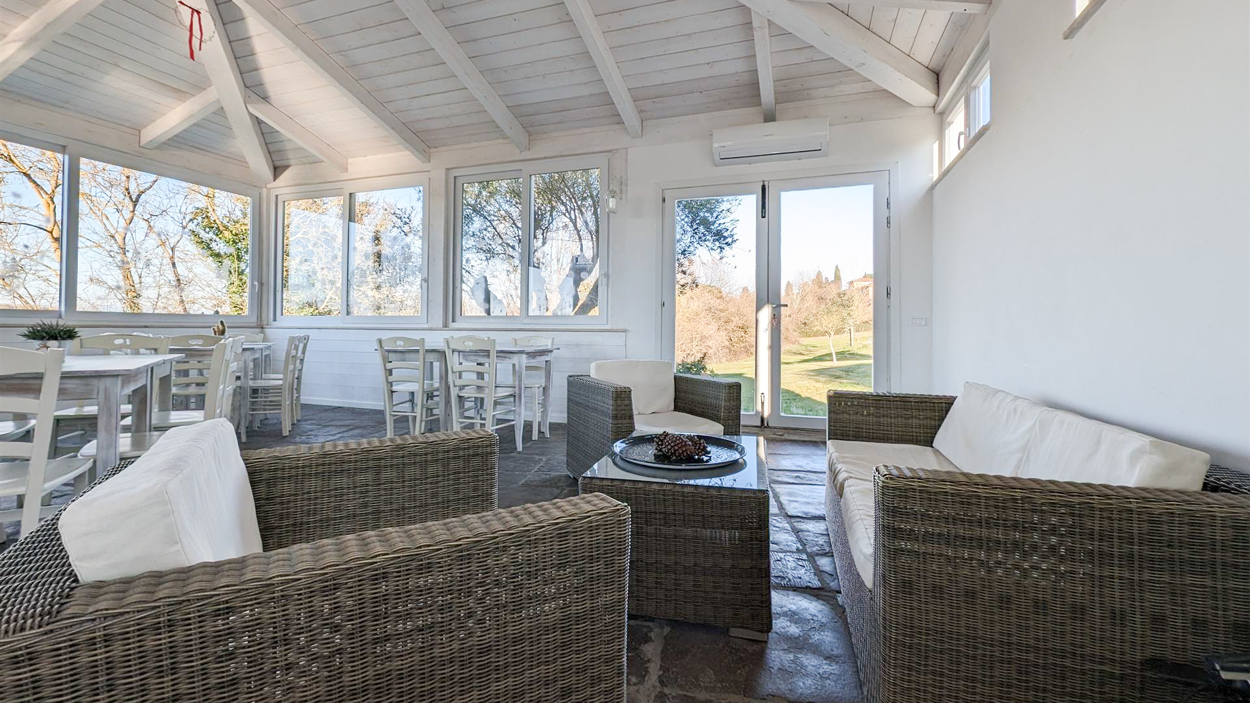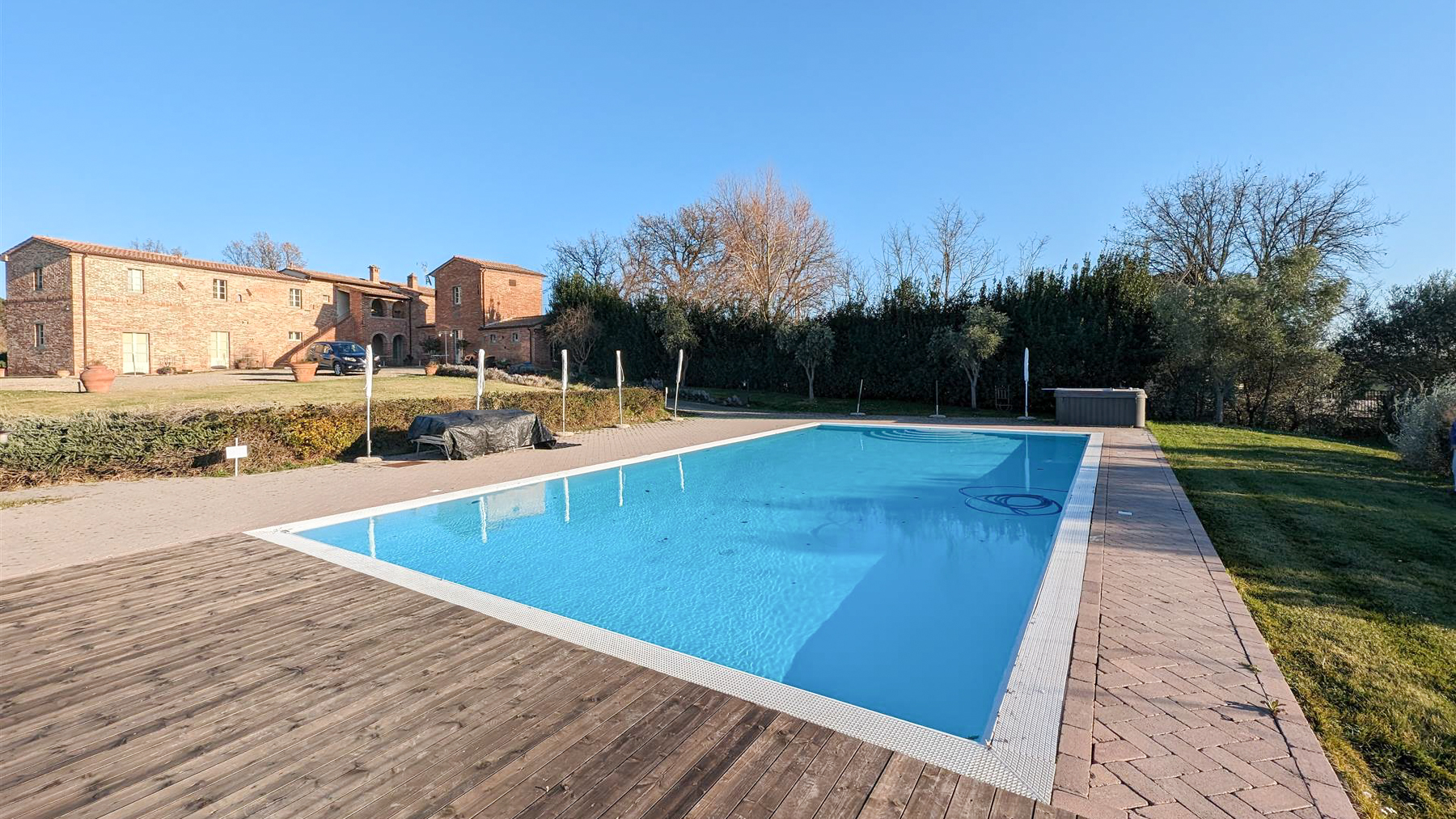 Immersa nella maestosità delle colline toscane, questa tenuta storica a Foiano della Chiana vi accoglie con un panorama mozzafiato che si estende su un parco di 5 ettari. Immaginate il fruscio delle foglie nel bosco circostante e il profumo degli ulivi che si spande nell'aria, mentre il sole si riflette sulla piscina scintillante. Questo è un angolo di paradiso dove la tranquillità incontra il lusso. La proprietà, completamente ristrutturata nel 2010, si estende su 600 mq ed è attualmente adibita a struttura ricettiva. Comprende 8 appartamenti finemente arredati, capaci di ospitare fino a 32 persone, e un appartamento padronale con reception. Una splendida veranda in legno di 180 mq ospita una sala ristorazione con cucina attrezzata. La tenuta offre inoltre 20 stanze e 10 bagni, garantendo ampio spazio e comfort. Situata in una posizione panoramica e dominante, la proprietà è ben collegata e vicina ai servizi essenziali, rappresentando un'opportunità unica per chi cerca un rifugio nella campagna toscana. Immaginate di vivere in un luogo dove ogni mattina vi risveglierete con la vista delle colline toscane, trascorrendo le vostre giornate tra passeggiate nei boschi e rilassanti pomeriggi a bordo piscina. Le serate si trasformano in momenti magici, cenando sotto le stelle nella vostra veranda privata, circondati dal silenzio della campagna. Questa tenuta di lusso rappresenta il perfetto equilibrio tra storia e modernità, una gemma rara nel cuore della Toscana. Un'opportunità irripetibile per chi desidera investire in un'esperienza di vita esclusiva e raffinata.