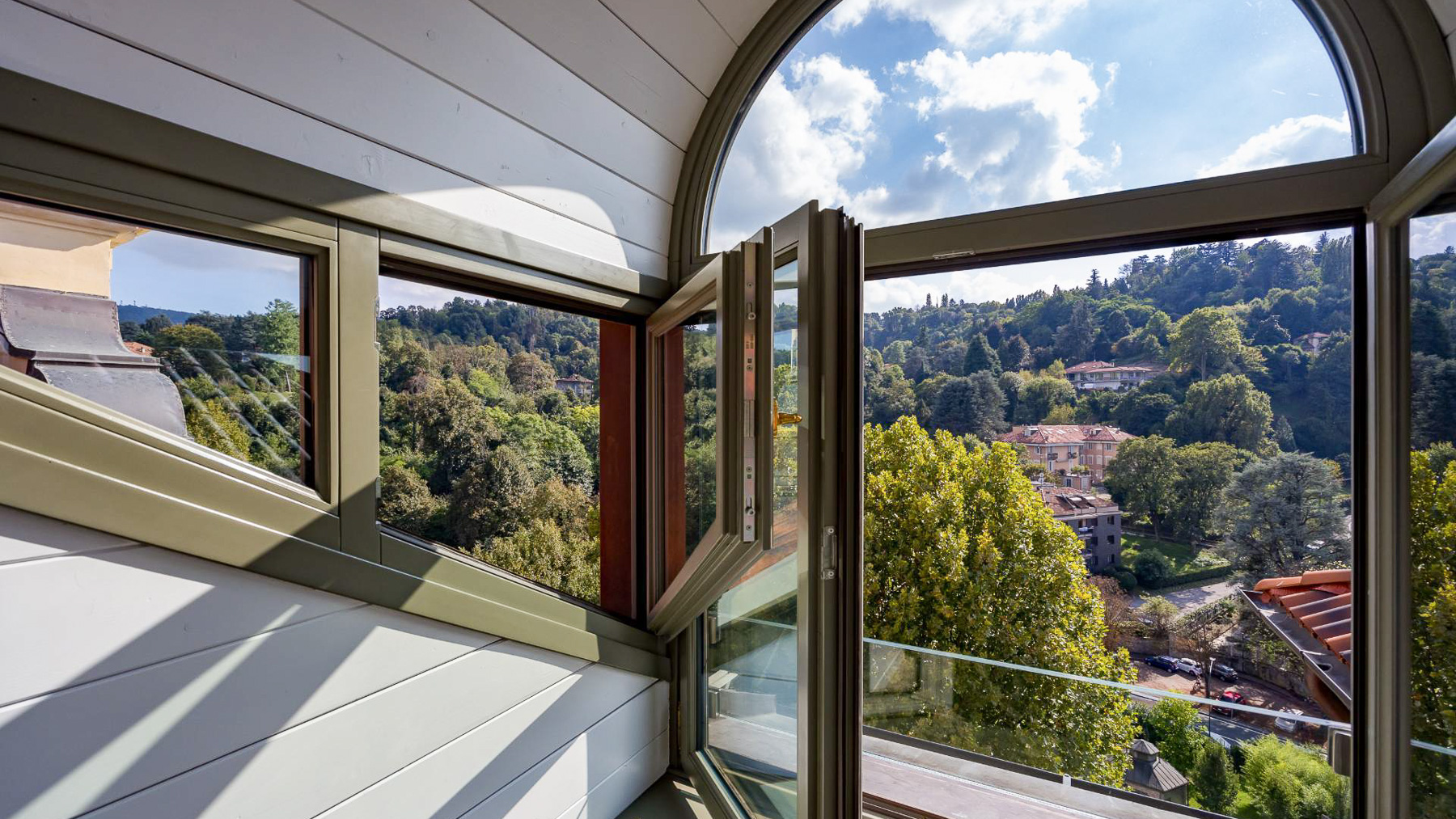 Incastonato tra le colline verdi dell'esclusiva zona Crimea, questo appartamento bilivello è un rifugio di lusso e serenità. L'atmosfera è permeata dal canto degli uccelli e dal profumo del bosco vicino, mentre la luce del sole filtra attraverso le ampie vetrate, accarezzando delicatamente gli spazi interni. A pochi passi dal cuore pulsante di Torino, questa proprietà offre un connubio perfetto tra natura e urbanità. Con una superficie di 220 mq, l'appartamento si estende su due livelli, offrendo un layout elegante e funzionale. Al piano inferiore, l'ingresso living si apre su un ampio salone con zona pranzo e cucina a vista, perfetto per accogliere ospiti o trascorrere serate intime in famiglia. La scala di design in legno e vetro conduce al piano mansardato, dove la master room con cabina armadio e bagno en suite invita al relax. Completano la proprietà altre due camere e due bagni, mentre la terrazza vivibile regala una vista incantevole sul verde circostante. Vivere qui significa abbracciare uno stile di vita sofisticato e rilassato. Immagina di sorseggiare un calice di vino al tramonto sul terrazzino, o di trascorrere pomeriggi assolati nel parco condominiale, avvolto dalla quiete e dalla bellezza del paesaggio. Gli interni moderni, arricchiti da dettagli di design, creano un ambiente accogliente e raffinato, perfetto per chi cerca un'oasi di pace in città. Questa proprietà rappresenta il culmine del lusso moderno, combinando efficienza energetica e tecnologie avanzate con un'estetica senza tempo. Un'opportunità irripetibile per chi desidera vivere in un contesto esclusivo, dove ogni giorno è un'esperienza di eleganza e comfort.