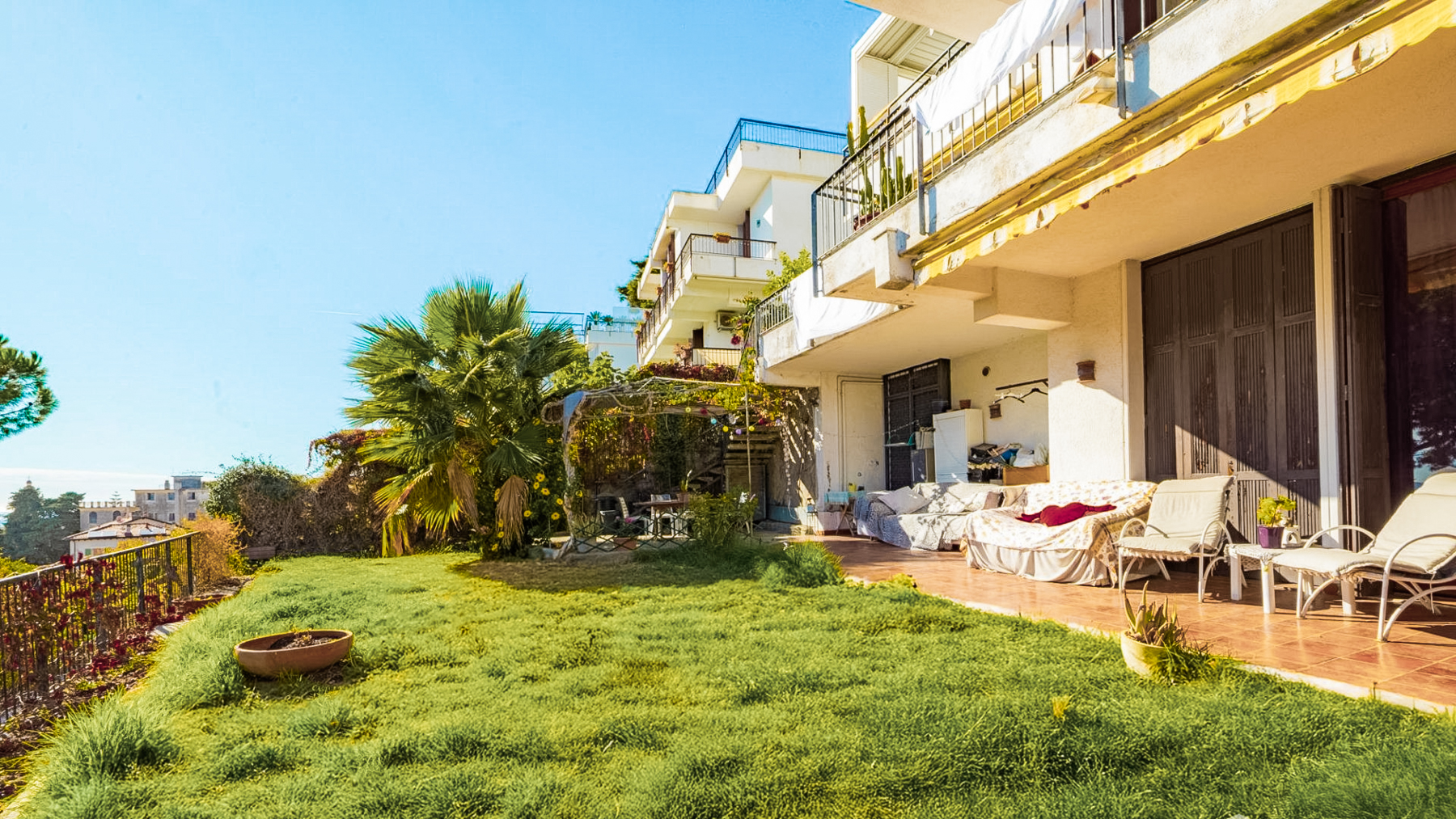 Avvolta dalla quiete delle colline verdi e con lo sguardo che si perde verso l'orizzonte marino, questa proprietà è un rifugio di lusso che promette serenità e bellezza senza tempo. Il canto degli uccelli si fonde con il dolce fruscio delle palme, mentre la brezza marina accarezza dolcemente il viso, regalando una sensazione di pura libertà. Situata a Bordighera, a pochi passi dal cuore pulsante della città, questa incantevole dimora di 100 mq offre un'accogliente atmosfera grazie ai suoi interni luminosi e ben distribuiti. Composta da un ampio soggiorno, una cucina funzionale, una camera matrimoniale, una cameretta, un bagno finestrato e spazi pratici come il ripostiglio e la lavanderia. La proprietà è arricchita da un giardino privato di 170 mq, perfetto per godere di momenti di relax all'aperto, e da un posto auto scoperto. L'assenza di spese condominiali e il riscaldamento autonomo garantiscono una gestione economica ed efficiente. Vivere qui significa immergersi in un lifestyle esclusivo, dove ogni giornata inizia con una vista mozzafiato sul porto di Bordighera e termina con tramonti spettacolari sul mare. Immagina di passeggiare per le strade storiche, di rilassarti nel tuo giardino privato, e di vivere a pochi chilometri dalle meraviglie della Costa Azzurra. Questa residenza è un'opportunità irripetibile per chi cerca un equilibrio perfetto tra eleganza, comfort e bellezza naturale. Un vero gioiello nel panorama immobiliare di lusso.
