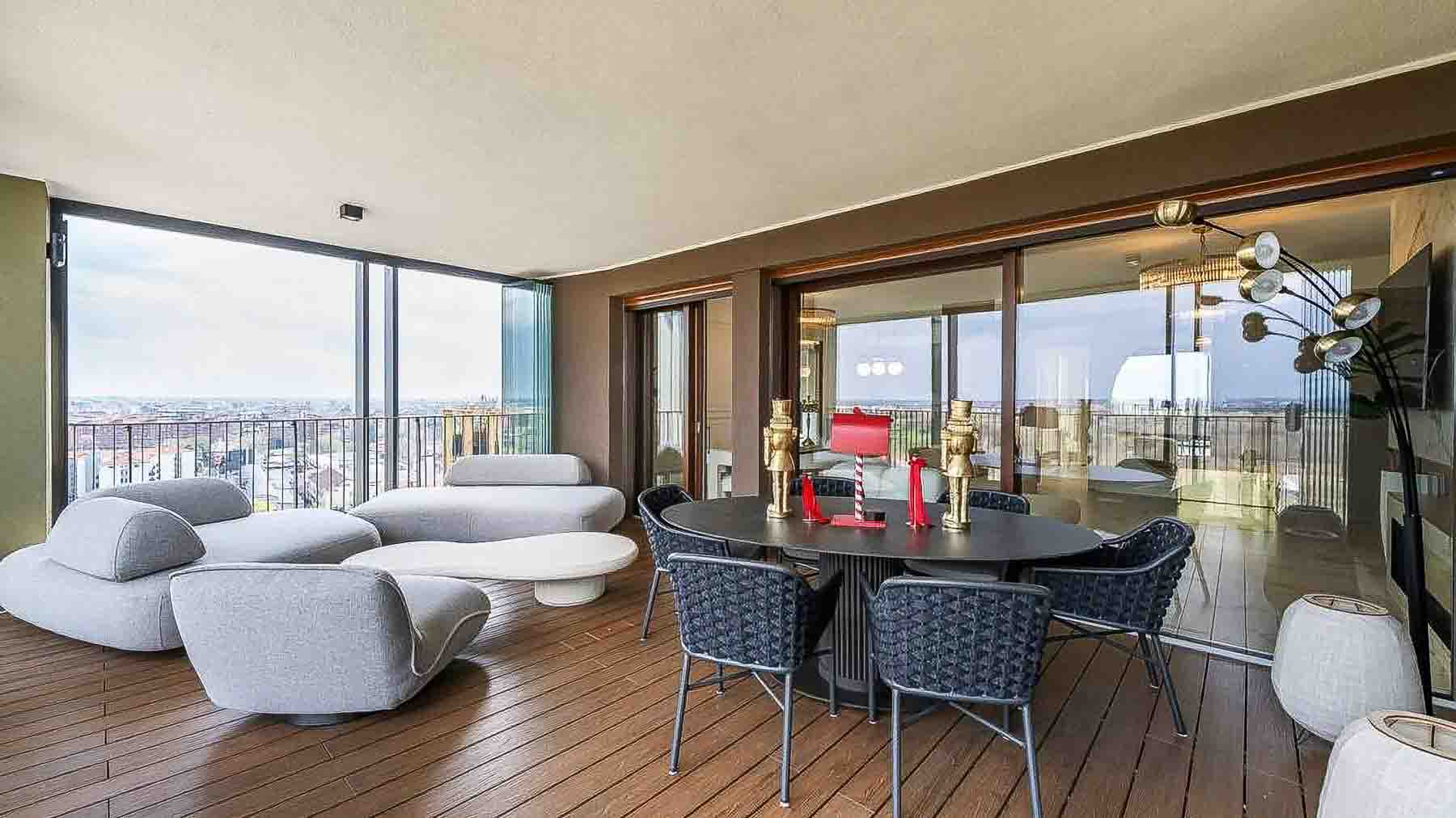Al sedicesimo piano delle prestigiose Park Towers, nel cuore pulsante di Milano, si apre una residenza di rara bellezza. Qui, la luce naturale inonda ogni angolo, riflettendo sui pavimenti in marmo lucido e creando un'atmosfera di calore e luminosità. Le ampie vetrate si affacciano su un terrazzo panoramico, da cui è possibile ammirare il cielo che si fonde con la skyline milanese, mentre un leggero profumo di eleganza pervade l'aria. Questa esclusiva residenza di 200 mq accoglie con spazi ampi e luminosi, caratterizzati da un design eco-sostenibile e moderno. Cinque stanze, tra cui una sontuosa master suite con accesso diretto al terrazzo e una vasca idromassaggio, promettono comfort e privacy ineguagliabili. Tre bagni eleganti completano la proprietà, mentre il salone triplo di rappresentanza, con le sue ampie vetrate, si apre su un terrazzo arredato per momenti di relax e convivialità. La cucina, un capolavoro di design su misura, coniuga funzionalità ed estetica contemporanea, offrendo uno spazio perfetto per creare piatti memorabili. Vivere in questa dimora significa immergersi in un lifestyle esclusivo e raffinato. Immagina le serate trascorse sul terrazzo, con la skyline di Milano a fare da sfondo alle cene sotto le stelle, o il piacere di un allenamento nella palestra attrezzata del complesso. Ogni giorno è un'opportunità per godere di servizi di altissimo livello, come la conciergerie e gli spazi dedicati all'home-working. Questa proprietà rappresenta un'opportunità irripetibile per chi cerca l'equilibrio perfetto tra design, sostenibilità e comfort. Un gioiello nel panorama immobiliare di lusso milanese, dove ogni dettaglio è stato pensato per offrire un'esperienza abitativa senza compromessi.