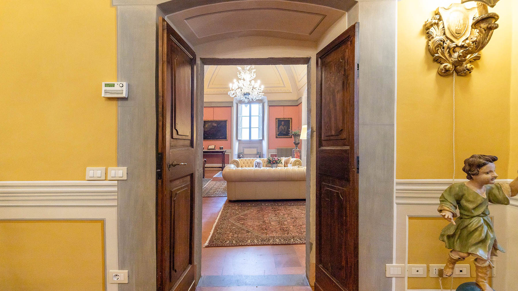 Nel cuore pulsante di Todi, tra le antiche mura e le piazze storiche, si erge un appartamento che incarna la quintessenza dell'eleganza italiana. L'atmosfera che si respira è quella di un tempo passato, dove i soffitti alti oltre quattro metri, affrescati e decorati, raccontano storie di un'epoca aristocratica. Immagina di essere avvolto dalla luce naturale che entra dalle ampie finestre, mentre il suono delicato della città si fonde con la pace della tua dimora. Questa straordinaria proprietà di 395 mq, situata nell'antico Palazzo "degli Oddi", offre nove stanze e quattro bagni, garantendo spazio e comfort senza pari. Con tre ingressi indipendenti, l'appartamento si articola in spazi ricchi di charme: dalla sontuosa sala di rappresentanza con affaccio diretto sulla Piazza del Popolo, alle accoglienti sale che possono essere adibite a studio o salotti intimi. La cucina, moderna e funzionale, è accompagnata da un pratico retrocucina. Due camere da letto principali, entrambe con bagno en-suite e guardaroba, promettono un riposo sereno e rigenerante. Il terrazzo di circa 50 mq, affacciato su un cortile privato, rappresenta il luogo ideale per momenti di relax all'aperto. Vivere in questa residenza significa abbracciare uno stile di vita sofisticato, dove ogni dettaglio è pensato per offrire un'esperienza di lusso. Immagina di organizzare cene eleganti nel tuo salone affrescato, di godere delle sere d'estate sulla terrazza, di perderti tra le pagine di un buon libro nell'atmosfera ovattata della tua biblioteca privata. Ogni giorno qui è un invito a vivere il bello in tutte le sue forme. Con la sua posizione ineguagliabile nel centro storico di Todi e le sue finiture di pregio, questa proprietà rappresenta un'opportunità unica per chi cerca un'abitazione di lusso che unisce storia e modernità in un equilibrio perfetto. Un gioiello raro nel panorama immobiliare, pronto ad accogliere il suo nuovo proprietario.