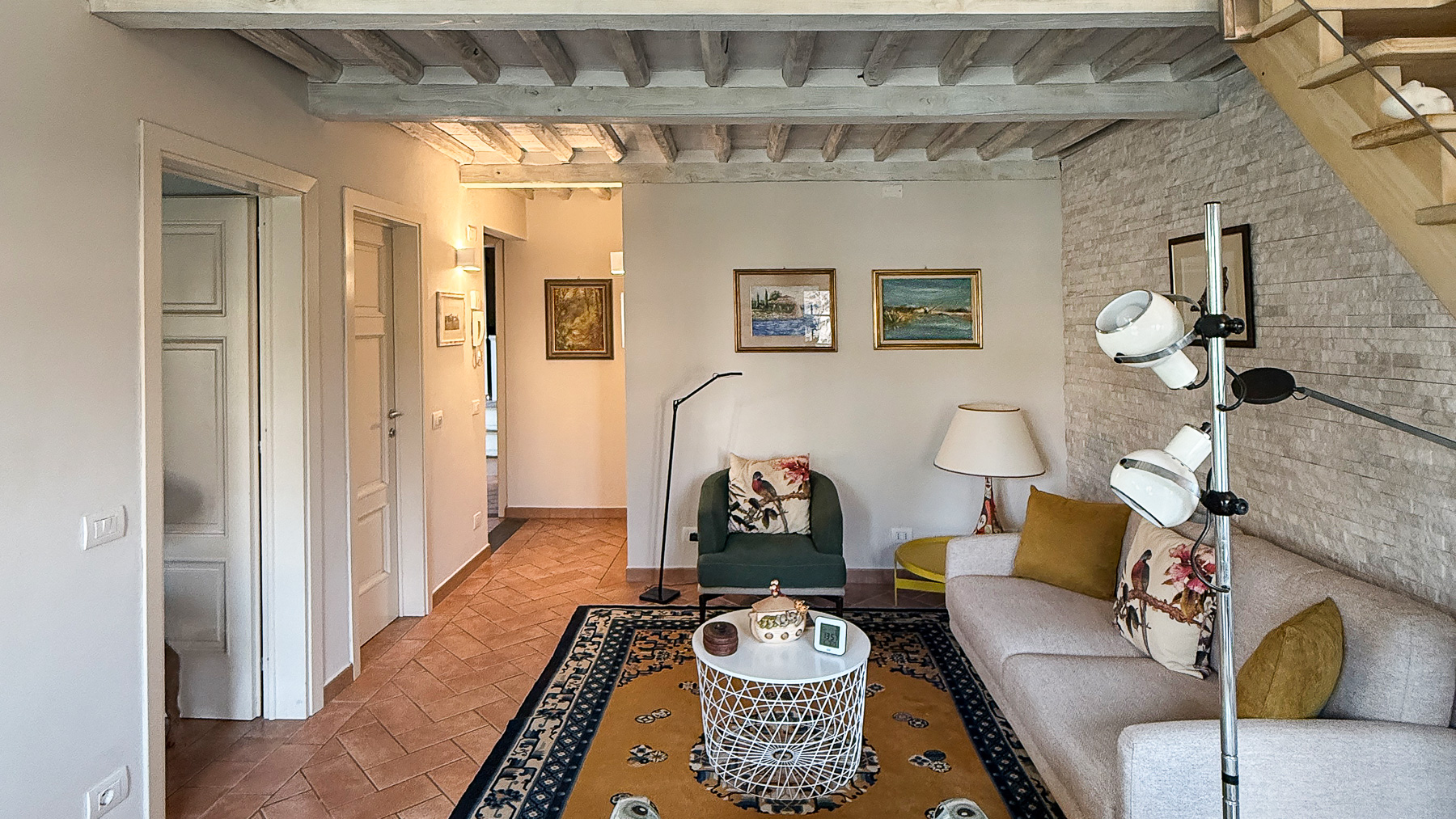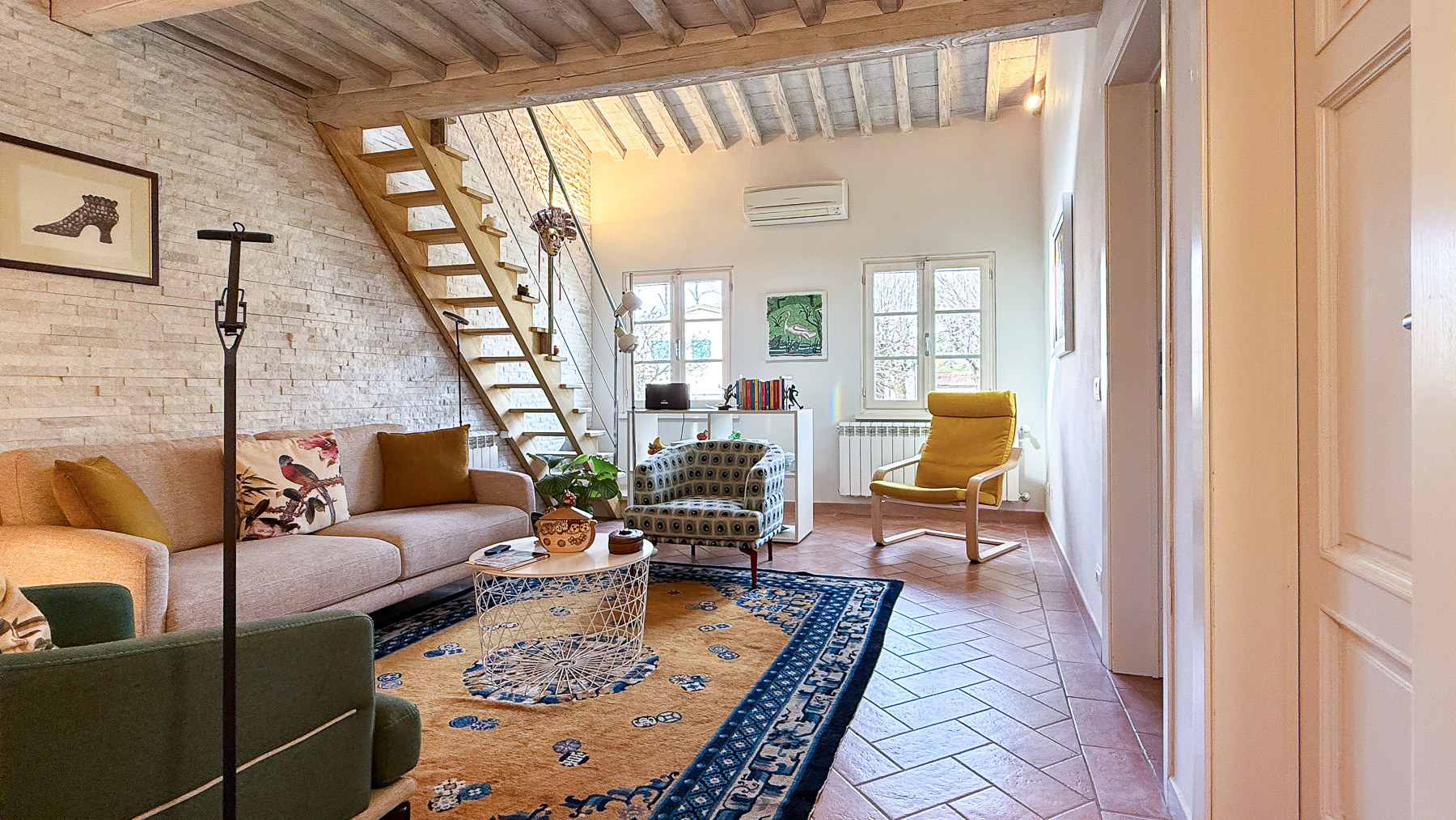 Nel cuore pulsante di Lucca, questa residenza incanta con la sua fusione di eleganza moderna e fascino storico. Immagina di entrare in un ambiente dove la luce naturale si riversa attraverso ampie finestre, accarezzando delicatamente superfici e arredi. I suoni della città si fondono dolcemente con l'atmosfera tranquilla degli interni, creando un rifugio sereno e accogliente. La proprietà si estende su 126 mq e comprende sette stanze ben distribuite e un bagno. Gli interni sono un'opera d'arte di design, dove un divano beige con cuscini decorativi si accompagna a una poltrona verde e una dal motivo blu e bianco. La parete in pietra e le scale in legno aggiungono un tocco di calore e autenticità. Il tavolino da caffè rotondo e le opere d'arte appese alle pareti contribuiscono a creare un'atmosfera sofisticata e invitante. La luce naturale inonda ogni angolo, mentre le finestre incorniciano viste mozzafiato sulla città e sugli alberi circostanti. Vivere in questa dimora significa abbracciare uno stile di vita urbano raffinato. Immagina di iniziare la giornata con un caffè nel soggiorno luminoso, mentre la città si risveglia attorno a te. Dopo una giornata di esplorazioni tra le vie storiche di Lucca, il ritorno a casa è un abbraccio di comfort e lusso. La proprietà invita a momenti di relax e convivialità, perfetta per accogliere amici e familiari in un ambiente esclusivo. Questa residenza rappresenta un'opportunità irripetibile nel panorama immobiliare di Lucca, combinando lusso e autenticità in un'unica soluzione. Un gioiello di eleganza e stile attende solo di essere scoperto da chi sa apprezzare il fascino senza tempo di una dimora unica nel suo genere.