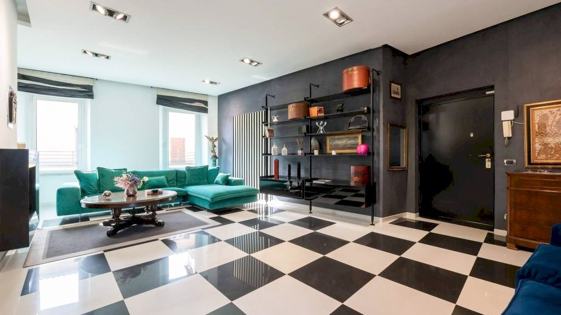 In una delle zone più affascinanti di Roma, dove l'arte si fonde con la storia e la modernità, sorge una residenza che incarna lusso e stile. Immagina il sole romano che filtra dalle ampie finestre, illuminando un salotto dal design contemporaneo, dove ogni dettaglio è studiato per affascinare e accogliere. Questa prestigiosa proprietà di 183 mq, situata nel cuore della città eterna, offre quattro ampie stanze e due bagni eleganti. Il living, caratterizzato da un pavimento a scacchi in bianco e nero, è arredato con un divano turchese che invita al relax e una tavolino circolare al centro che funge da punto focale per conversazioni intime. Le pareti sono arricchite da opere d'arte che riflettono il dinamismo urbano, mentre un camino dal mantello scuro aggiunge calore e charme all'ambiente. Una libreria, colma di oggetti decorativi, completa l'atmosfera raffinata. La luce naturale inonda ogni angolo, creando un'atmosfera accogliente e sofisticata. Vivere in questa proprietà significa immergersi in un lifestyle cittadino ricco di emozioni, dove ogni giorno è un'opportunità per esplorare la cultura vibrante di Roma. Immagina di rilassarti con un buon libro vicino al camino, o di gustare un aperitivo con gli amici intorno al tavolo da caffè, circondato da un design che ispira. Questa residenza rappresenta un'opportunità unica per chi cerca l'eleganza e il comfort in uno dei quartieri più esclusivi di Roma. Un vero gioiello nel panorama immobiliare di lusso, dove storia e modernità si incontrano in perfetta armonia.