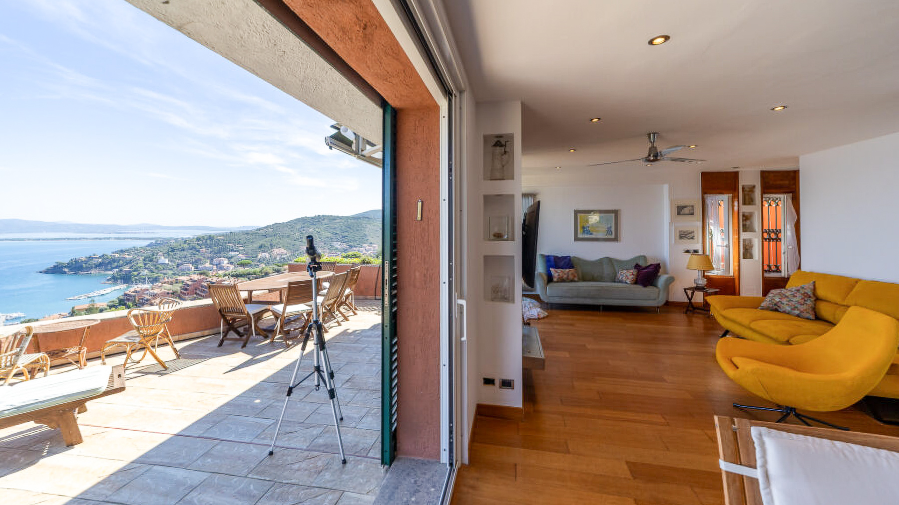 Nascosta tra le meraviglie naturali di Monte Argentario, questa straordinaria residenza è un rifugio di eleganza e serenità, dove il mare incontra il cielo in un abbraccio di colori e profumi. Immaginate di essere accolti da ampie vetrate che lasciano entrare una luce naturale avvolgente, mentre il profumo della salsedine si fonde con l'aria fresca del mare, creando un'atmosfera unica e incantevole. Con una superficie di 120 mq, la proprietà è stata recentemente ristrutturata per garantire il massimo comfort e privacy. Si sviluppa su un unico livello e comprende cinque stanze che includono un'accogliente zona living con pavimenti in legno e una cucina a vista che si apre su un ampio terrazzo. Il terrazzo è perfetto per ammirare lo spettacolo dei tramonti sul mare. La zona notte dispone di tre eleganti bagni e camere da letto arredate con gusto, mentre due posti auto coperti e un pratico locale tecnico di 20 mq completano la proprietà. Vivere qui significa abbracciare uno stile di vita esclusivo e raffinato. Immaginate di iniziare le vostre giornate con una colazione all'aperto, il sole che vi accarezza dolcemente, o di trascorrere serate indimenticabili sul terrazzo, con il suono delle onde come sottofondo e una vista che toglie il fiato. Ogni momento sarà un'opportunità per godere della bellezza senza tempo del paesaggio circostante. Questa proprietà rappresenta un'opportunità irripetibile nel mercato immobiliare di lusso. Una gemma rara che combina armoniosamente eleganza, comfort e una posizione invidiabile, destinata a chi sa apprezzare il fascino esclusivo di un rifugio sul mare.