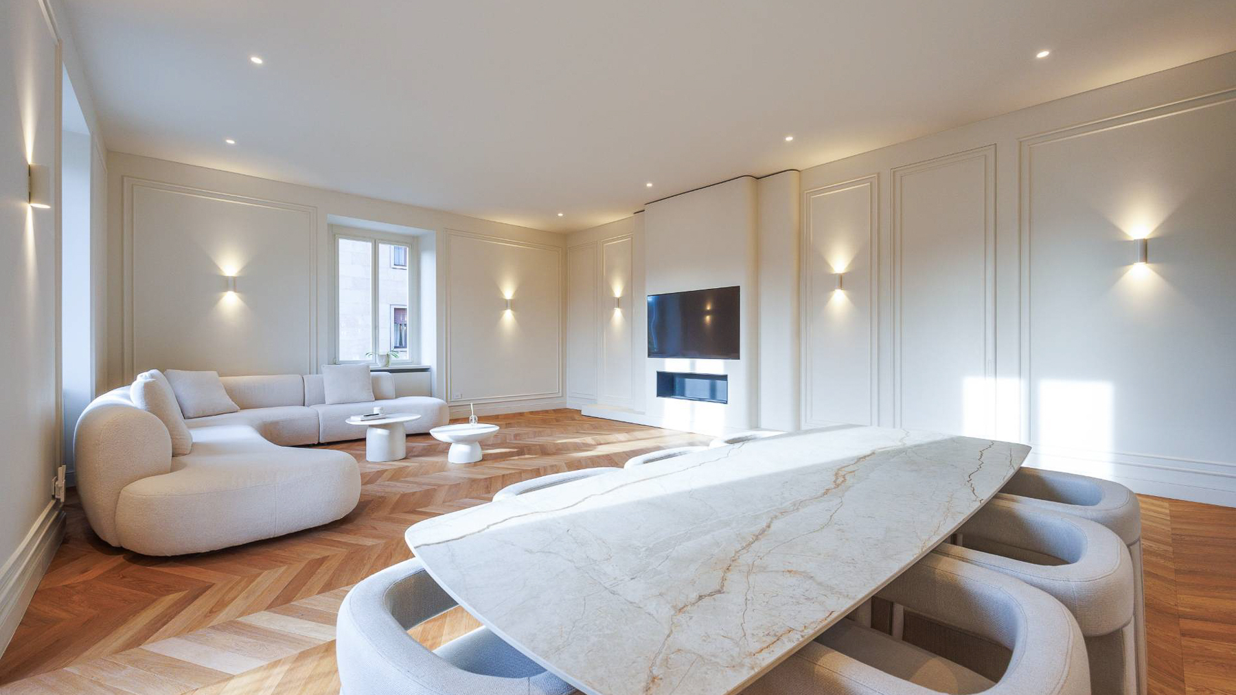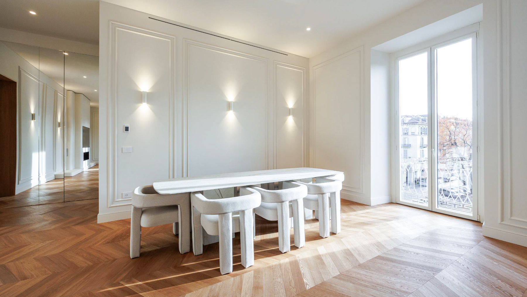Nel cuore pulsante di Torino, una residenza unica in grado di offrire un'oasi di pace e raffinatezza. Entra in un mondo dove la luce naturale danza attraverso ampie finestre, accarezzando superfici eleganti e dettagli di design che catturano l'essenza della modernità. Immagina il calore del parquet a spina di pesce sotto i piedi e l'atmosfera accogliente che solo una casa di lusso può regalare. Questa splendida proprietà di 156 mq si distingue per la sua spaziosità e il suo stile contemporaneo. Con quattro ampie stanze e due bagni finemente arredati, ogni angolo è stato progettato per offrire comfort e classe. La zona giorno, dal design aperto, include un soggiorno con un divano dalle forme organiche e una zona pranzo con un tavolo in marmo e sedie dal design unico. Le pareti chiare, arricchite da pannellature eleganti, creano un ambiente luminoso e invitante, mentre la televisione a parete e le luci soffuse aggiungono un tocco di modernità. Una sezione a specchio amplia ulteriormente la percezione dello spazio, rendendo ogni momento vissuto qui un'esperienza indimenticabile. Vivere in questa proprietà significa abbracciare uno stile di vita cittadino senza rinunciare alla tranquillità e al lusso. Immagina di rilassarti in una zona living che si trasforma in un rifugio personale, dove ogni dettaglio è pensato per il tuo benessere. La posizione centrale ti permette di godere appieno delle meraviglie culturali e gastronomiche di Torino, con la comodità di avere tutto a portata di mano. Questa residenza rappresenta un'opportunità irripetibile nel mercato immobiliare di Torino. Un perfetto connubio tra eleganza contemporanea e comfort, ideale per chi cerca una dimora esclusiva in una delle città più affascinanti d'Italia.