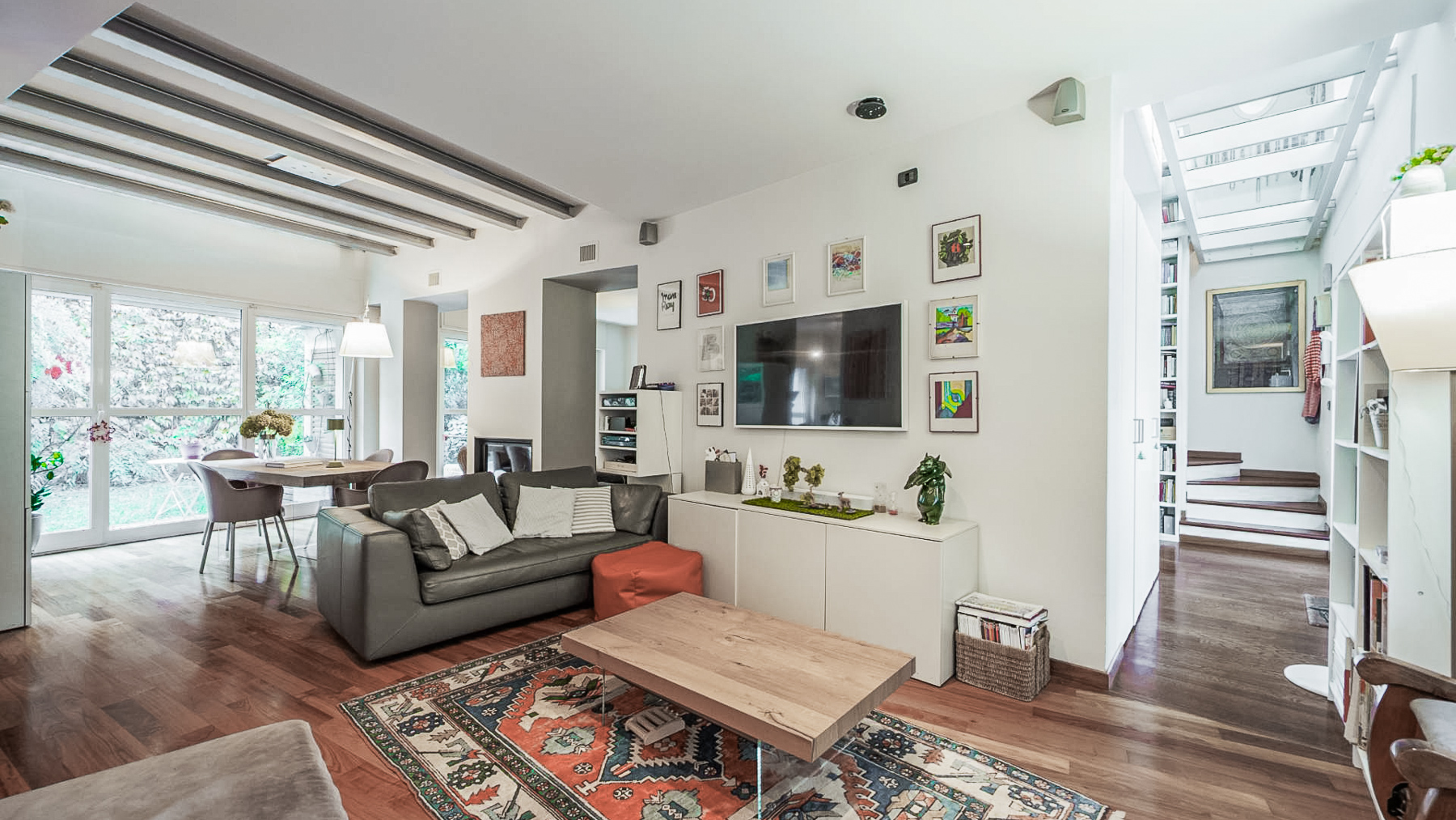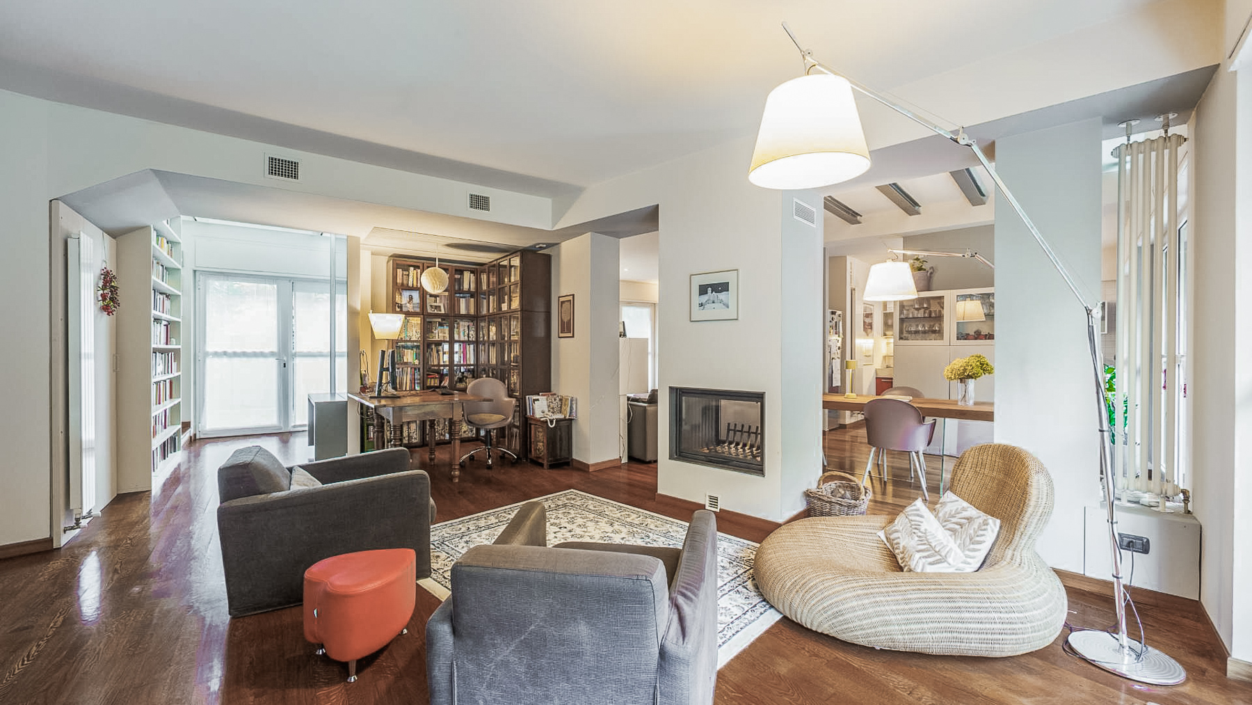 Immersa nel cuore pulsante di Torino, questa elegante residenza si affaccia su uno spazio di pura bellezza e modernità. Immagina di essere accolto da un ambiente inondato di luce naturale, che filtra dolcemente attraverso ampie finestre, mentre il calore di un moderno camino ti avvolge in un abbraccio confortante. Con una superficie di 205 mq, la proprietà si estende su sette stanze raffinate, tra cui un accogliente soggiorno dotato di sedute confortevoli come poltrone grigie e una poltrona a sacco dal design unico. Tre bagni moderni offrono comfort e privacy, mentre una libreria colma di volumi invita a momenti di quiete e riflessione. Un angolo studio con scrivania e sedia suggerisce un rifugio per il lavoro o la lettura. Il grande tappeto e il pavimento in legno aggiungono un tocco di calore al design contemporaneo. Il giardino privato e la terrazza completano questa oasi cittadina, offrendo spazi per il relax all'aperto o cene al chiaro di luna. Vivere qui significa abbracciare uno stile di vita raffinato e dinamico, dove ogni giorno si alternano momenti di tranquillità e vibranti esperienze urbane. Immagina di sorseggiare un caffè al mattino nel tuo giardino, circondato dal verde, o di organizzare cene memorabili sulla terrazza con vista sulla città. Questa residenza rappresenta un'opportunità rara e preziosa nel cuore di Torino, un connubio perfetto tra eleganza senza tempo e design contemporaneo. Non perdere l'occasione di vivere in un luogo dove ogni dettaglio è stato pensato per offrire un'esperienza di lusso senza pari.