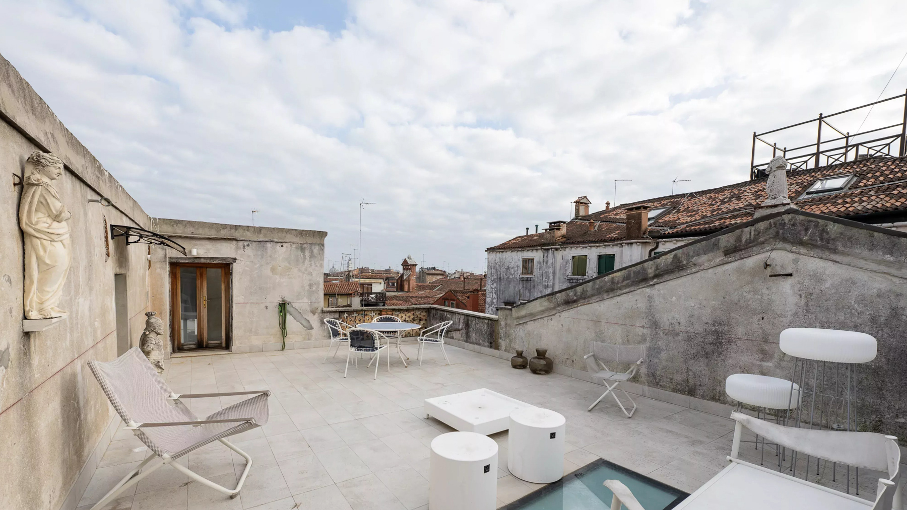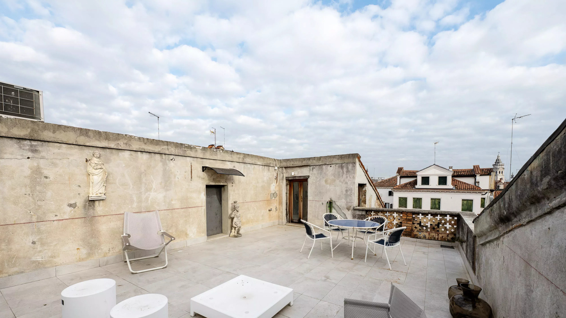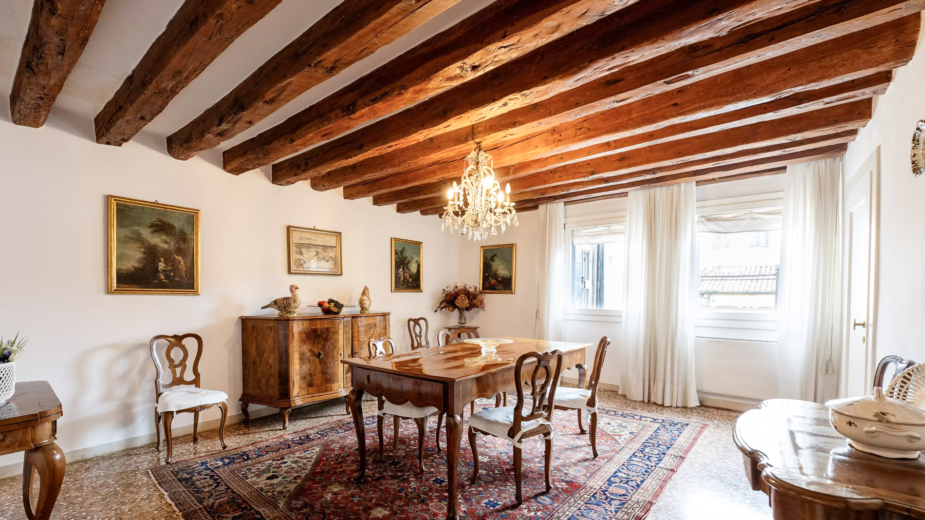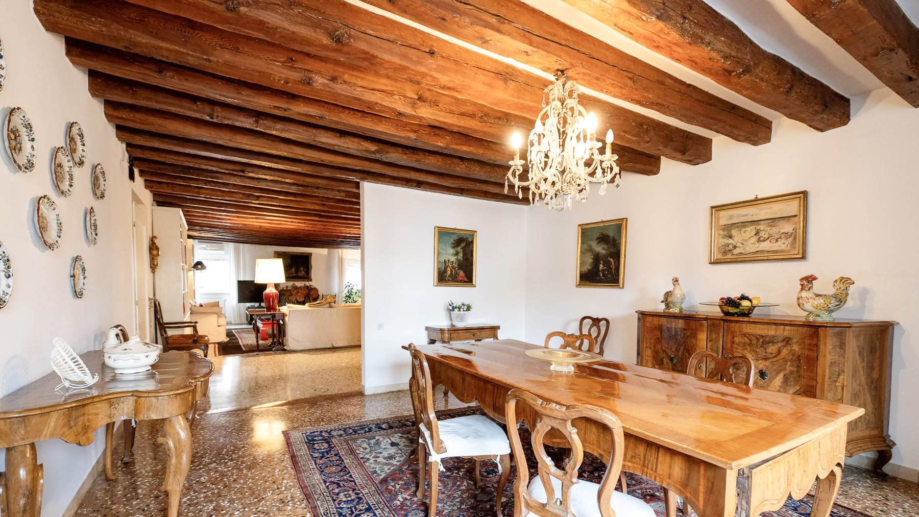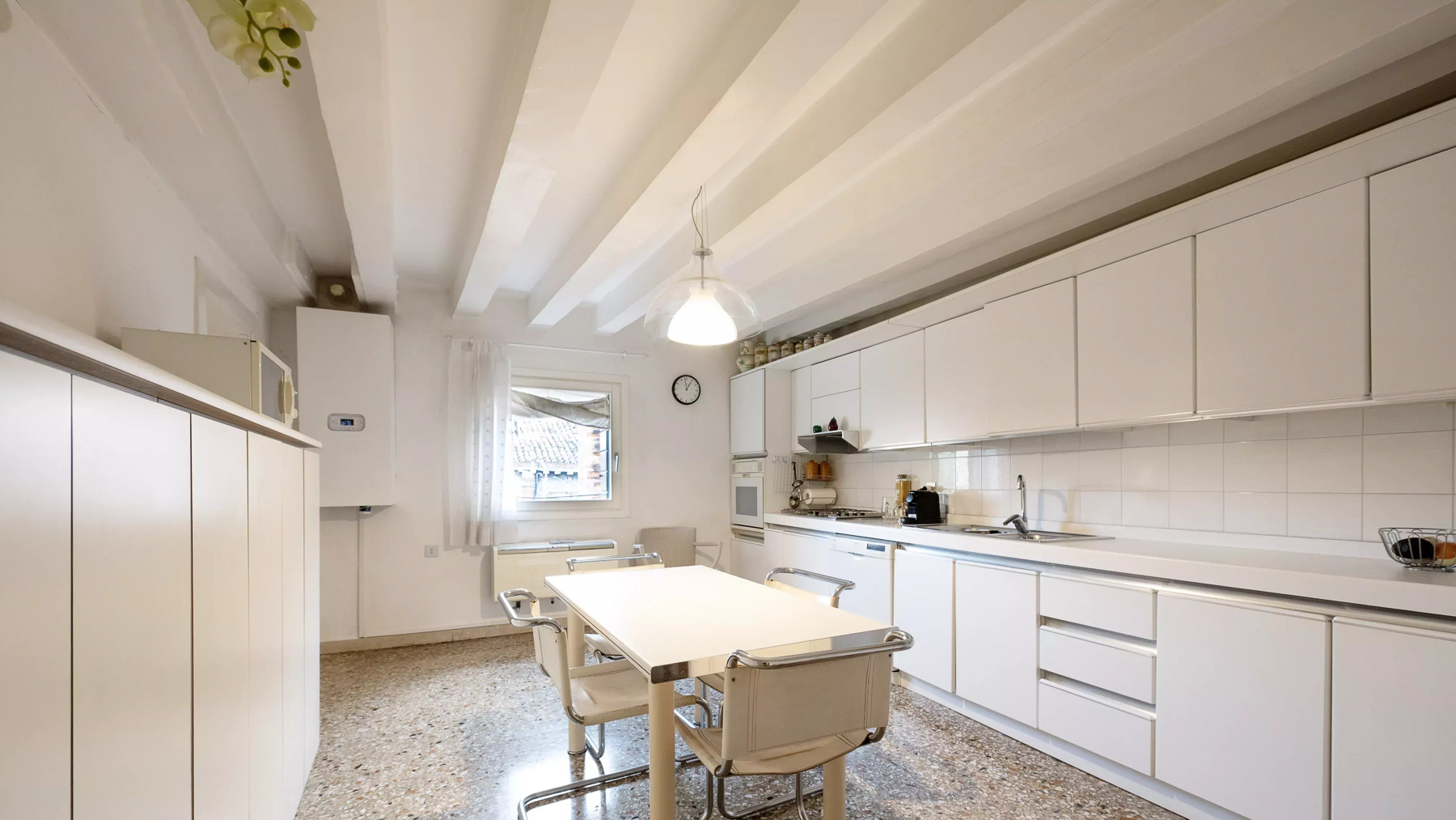 Nel cuore più riservato e autentico di Venezia, a pochi passi dal Ponte di Rialto e con collegamenti comodi verso Piazza San Marco, questa elegante residenza si trova al terzo piano di un edificio veneziano ben conservato, immerso in un contesto di quiete rara. L’affaccio diretto sul canale accompagna la luce naturale negli ambienti e restituisce quella Venezia intima e quotidiana, fatta di riflessi d’acqua, silenzi e passaggi lenti. Gli interni interpretano con coerenza il carattere senza tempo della città: le travi lignee a vista dialogano con la pavimentazione in terrazzo veneziano, mentre la zona living, ampia e armoniosa, invita alla convivialità in un’atmosfera raffinata e raccolta. La cucina è separata e abitabile, pensata per un uso quotidiano confortevole. La zona notte, ben distinta, ospita due camere matrimoniali luminose e silenziose, oggi servite da un bagno con doppio lavabo