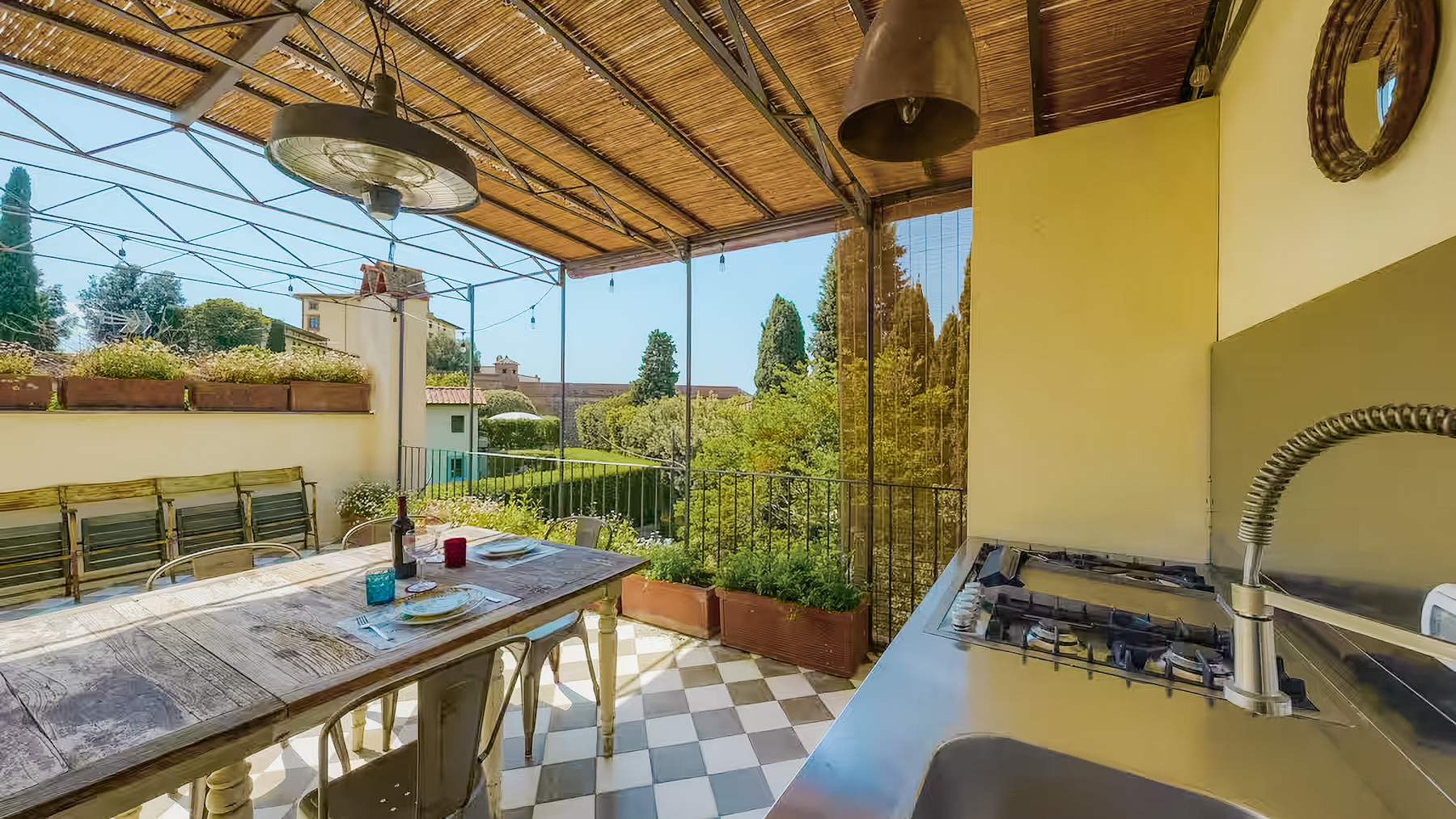 Nascosta tra le meraviglie storiche di Firenze, questa straordinaria proprietà cattura la magia di un rifugio urbano. Immagina di svegliarti con la luce morbida del mattino che filtra dalle tende, accompagnato dal cinguettio degli uccelli e dalla leggera brezza che accarezza la terrazza, un'area che invita a momenti di relax e convivialità. Con una superficie di 85 mq, questa elegante dimora offre cinque stanze sapientemente arredate, tre bagni moderni e un terrazzo dalle ampie vedute. Gli interni sono pensati per accogliere con stile e comfort, evidenziati dalla camera padronale che mescola dettagli contemporanei a un lusso senza tempo, come il bagno con vasca a vista. La cucina all'aperto è un invito a cene sotto le stelle, mentre l'ambiente circostante, con i suoi toni chiari e ariosi, crea un'atmosfera di pace e raffinatezza. Vivere in questa residenza significa abbracciare un lifestyle cittadino senza rinunciare alla tranquillità. Immagina di trascorrere serate indimenticabili sul terrazzo, con Firenze che si illumina al crepuscolo, o di rilassarti nella tua oasi privata dopo una giornata tra le bellezze artistiche della città. Questa proprietà esclusiva non è solo una casa, ma un'opportunità unica di vivere il fascino di Firenze con il massimo del comfort e dell'eleganza. Una residenza dove ogni dettaglio racconta una storia di lusso e stile ineguagliabile.