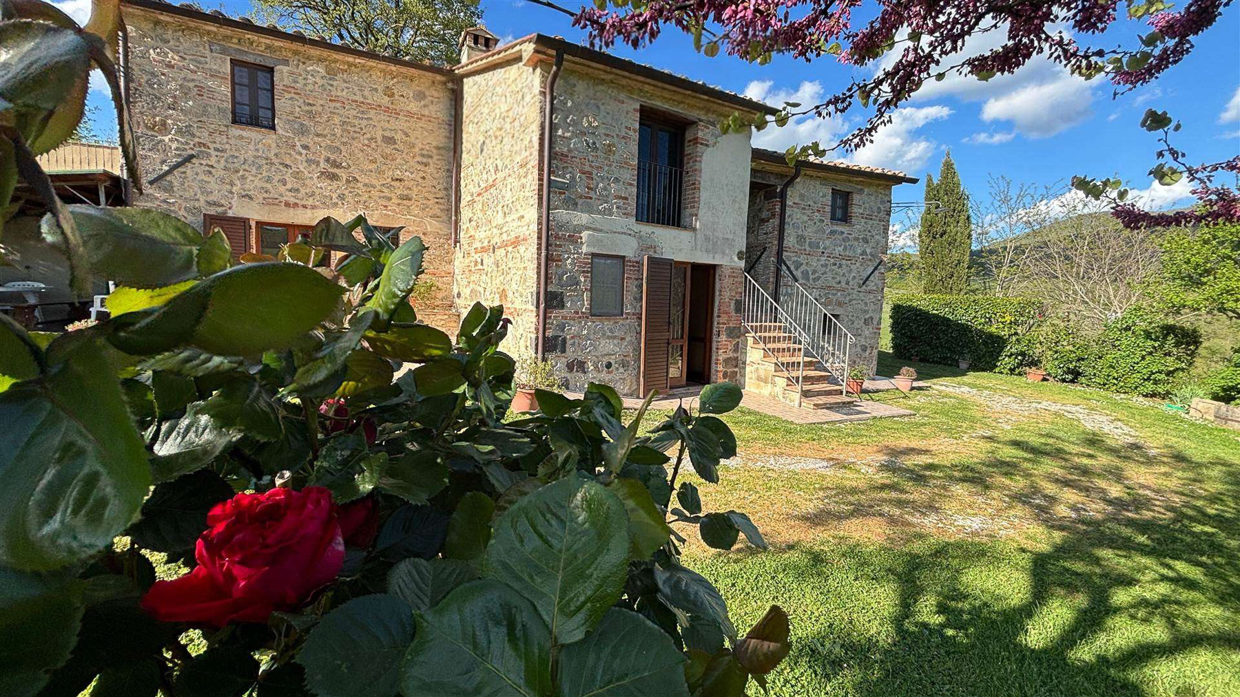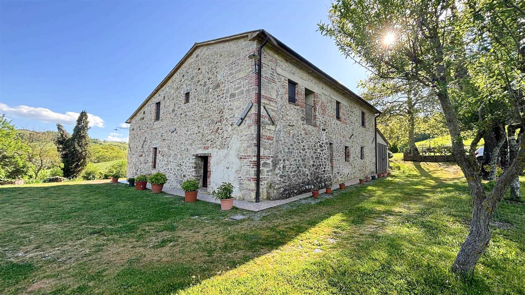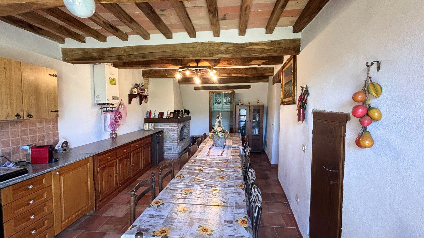 Tra le dolci colline della Val d'Orcia, dove la natura si fonde con l'arte e la storia, si erge una proprietà che incanta i sensi. Il profumo della terra, il suono del vento tra le fronde e la vista mozzafiato sulle colline senesi offrono un rifugio in cui ritrovare equilibrio e serenità. Questa magnifica azienda agricola e agrituristica si estende su 37,5 ettari di terreno, comprensivi di seminativi, pascoli e boschi, offrendo un ventaglio di opportunità per chi desidera immergersi nella vita di campagna. Il casale in pietra, di 380 mq, recentemente ristrutturato, rappresenta la perfetta fusione tra tradizione e comfort moderno. Al piano terra, un'accogliente reception e un salone rustico danno il benvenuto agli ospiti, mentre il piano superiore ospita due appartamenti indipendenti, arredati con gusto e cura dei dettagli, con pavimenti in cotto e travi a vista. Completa la proprietà una splendida piscina, ideale per rilassarsi durante le calde giornate estive. Vivere qui significa abbracciare uno stile di vita autentico, dove ogni giorno è un viaggio tra i sapori e i profumi della terra toscana. Immagina pomeriggi trascorsi a passeggiare tra i campi, serate di convivialità sotto le stelle, e momenti di intimità nel comfort della tua dimora. Questa proprietà rappresenta un'opportunità irripetibile per chi cerca un investimento che unisca lusso, storia e natura. Un luogo dove i sogni si trasformano in realtà, nel cuore di uno dei paesaggi più affascinanti d'Italia.
