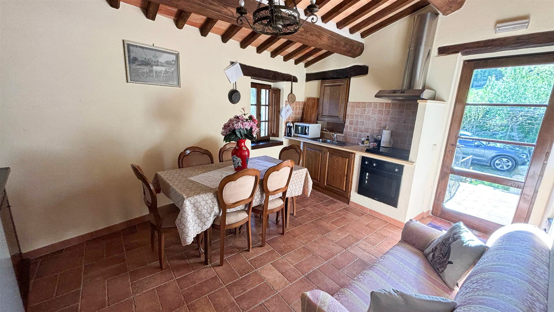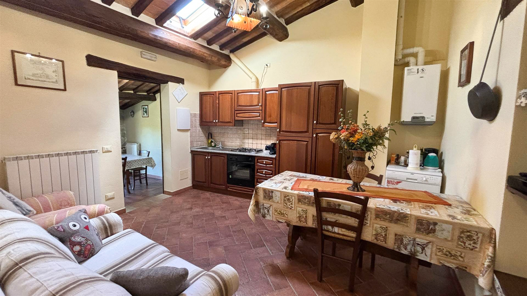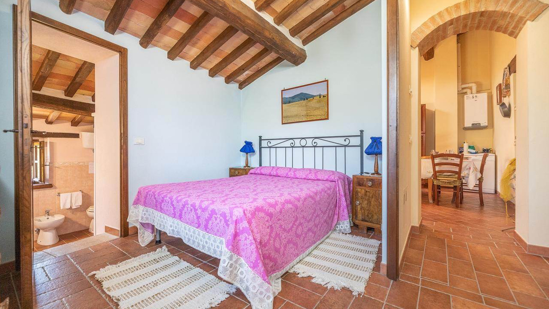 Tra le dolci colline della Val d'Orcia, dove la natura si fonde con l'arte e la storia, si erge una proprietà che incanta i sensi. Il profumo della terra, il suono del vento tra le fronde e la vista mozzafiato sulle colline senesi offrono un rifugio in cui ritrovare equilibrio e serenità. Questa magnifica azienda agricola e agrituristica si estende su 37,5 ettari di terreno, comprensivi di seminativi, pascoli e boschi, offrendo un ventaglio di opportunità per chi desidera immergersi nella vita di campagna. Il casale in pietra, di 380 mq, recentemente ristrutturato, rappresenta la perfetta fusione tra tradizione e comfort moderno. Al piano terra, un'accogliente reception e un salone rustico danno il benvenuto agli ospiti, mentre il piano superiore ospita due appartamenti indipendenti, arredati con gusto e cura dei dettagli, con pavimenti in cotto e travi a vista. Completa la proprietà una splendida piscina, ideale per rilassarsi durante le calde giornate estive. Vivere qui significa abbracciare uno stile di vita autentico, dove ogni giorno è un viaggio tra i sapori e i profumi della terra toscana. Immagina pomeriggi trascorsi a passeggiare tra i campi, serate di convivialità sotto le stelle, e momenti di intimità nel comfort della tua dimora. Questa proprietà rappresenta un'opportunità irripetibile per chi cerca un investimento che unisca lusso, storia e natura. Un luogo dove i sogni si trasformano in realtà, nel cuore di uno dei paesaggi più affascinanti d'Italia.