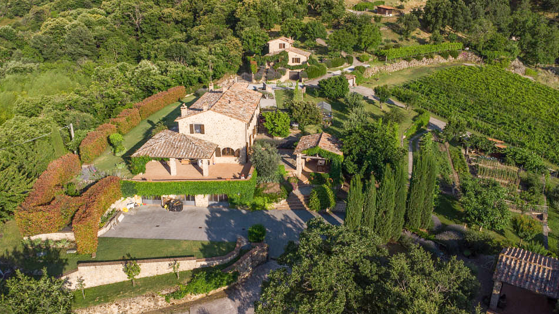 Nel cuore delle colline toscane, dove il cielo si unisce alla terra in un abbraccio di colori, sorge Casale Eloisa. Qui, la luce del tramonto danza tra gli uliveti e i vigneti, accarezzando dolcemente le antiche pietre dei casali. L'aria profuma di fiori selvatici e di terra baciata dal sole, creando un'atmosfera di pace e serenità che avvolge chiunque metta piede in questo angolo di paradiso. Questa straordinaria proprietà si estende su 670 mq e comprende tre casali indipendenti, offrendo un totale di 12 camere e 8 bagni. La residenza principale, sapientemente restaurata, è un capolavoro di architettura in pietra che conserva il fascino del passato, con camini antichi e spazi ampi che invitano a momenti di intimità e convivialità. I casali aggiuntivi, con le loro dimensioni accoglienti di 100 mq e 70 mq, offrono ulteriori spazi abitativi con cucine e salotti, perfetti per ospiti o familiari. Vivere a Casale Eloisa significa abbandonarsi a un lifestyle di campagna raffinato e autentico. Immagina di passeggiare tra i giardini rigogliosi, raccogliendo frutti maturi dagli alberi, o di sorseggiare un bicchiere di vino prodotto dal tuo vigneto, mentre il sole tramonta dietro le colline. Qui, ogni giorno è un invito a godere della bellezza naturale e della tranquillità, lontano dal caos cittadino. Questa proprietà unica a Castel del Piano è una gemma rara nel panorama immobiliare di lusso. Con la possibilità di realizzare una piscina e spazi già destinati a energia sostenibile, Casale Eloisa incarna il perfetto equilibrio tra eleganza senza tempo e comfort moderno, offrendo un'opportunità irripetibile per chi desidera vivere immerso nella bellezza della Toscana.