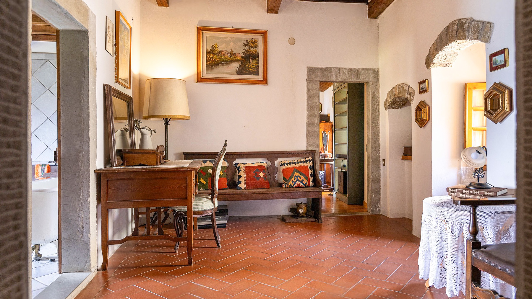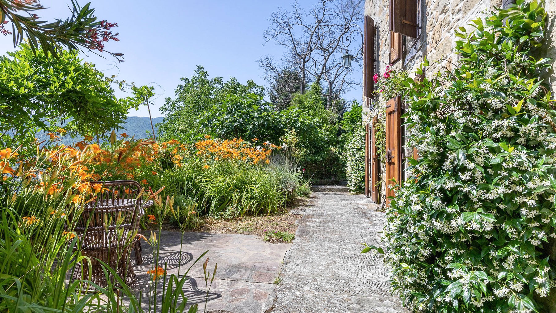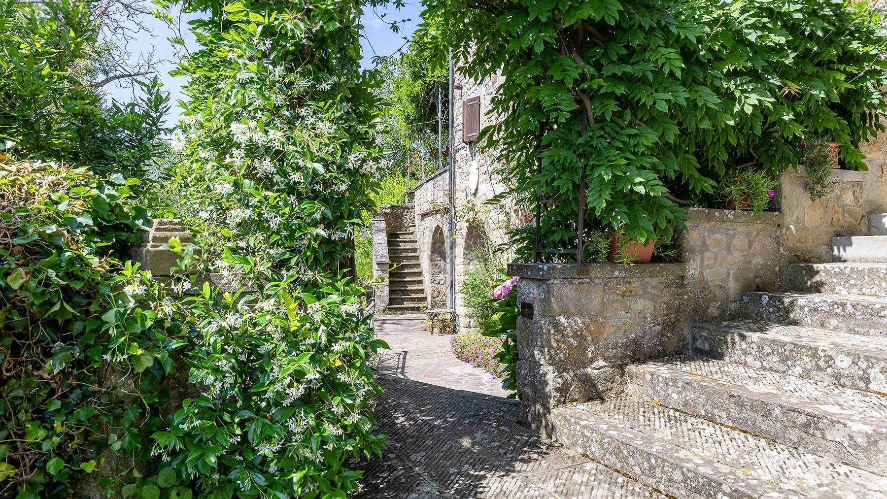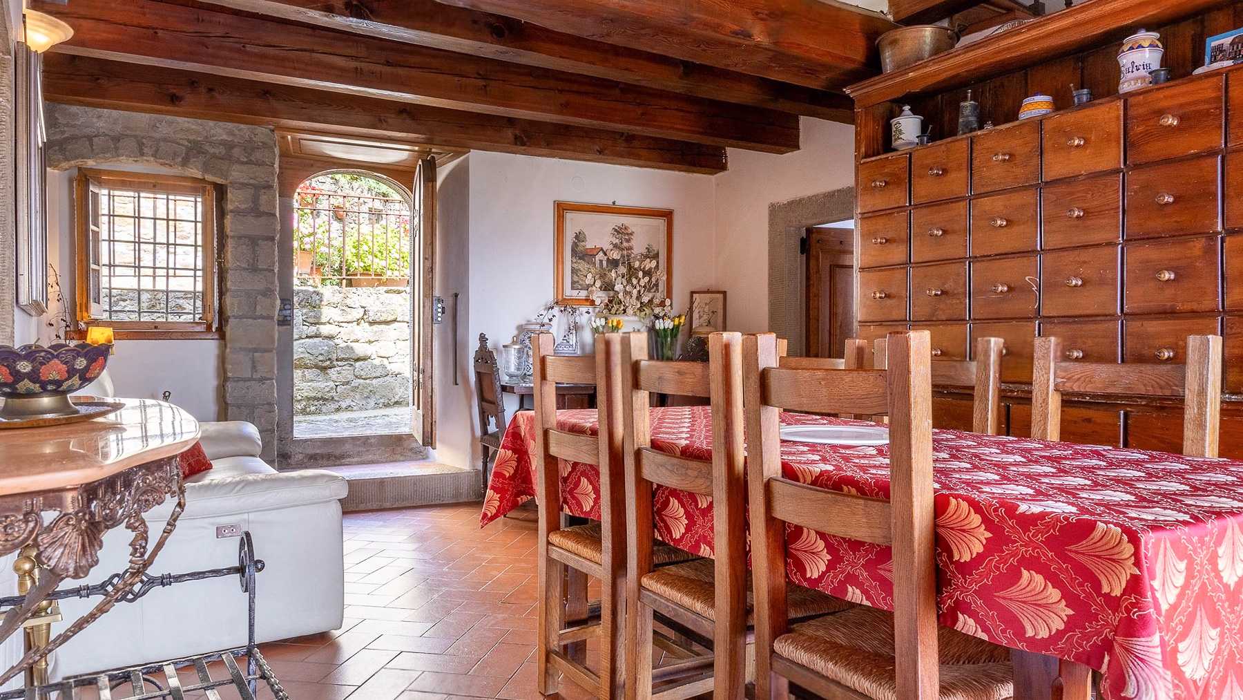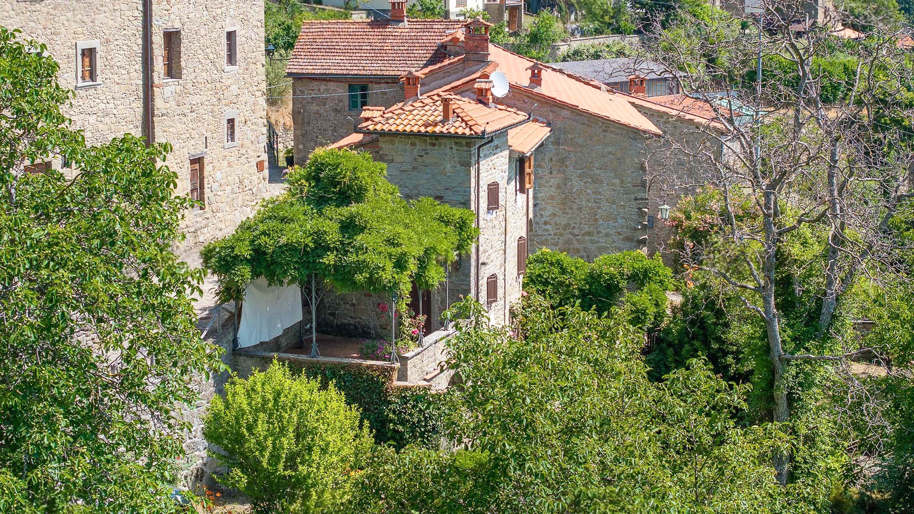 Nel cuore del Casentino, tra le dolci colline dell'Appennino Toscano, si trova una dimora che incanta i sensi. Immagina di passeggiare tra i vicoli di un borgo affascinante, dove l'antico profumo delle pietre si mescola a quello delle piante mediterranee. Un luogo dove il tempo sembra essersi fermato, circondato da un paesaggio mozzafiato. Questa proprietà di 350 mq ad Ortignano Raggiolo, nella provincia di Arezzo, è un vero gioiello di eleganza e storia. La residenza, risalente al XVII secolo, è suddivisa in due unità abitative indipendenti, offrendo un totale di 10 stanze e 3 bagni. Tra gli elementi distintivi, spiccano un incantevole giardino di circa 400 m² e una terrazza panoramica, perfetti per chi cerca un rifugio di pace e bellezza. Le porte in legno di castagno e le mura in pietra conferiscono un carattere unico e raffinato, mentre le due cucine, di cui una dotata di forno per pizza, invitano a momenti di convivialità. Vivere in questa residenza significa abbracciare uno stile di vita fatto di serenità e contatto con la natura. Immagina di godere delle cene estive nel giardino all'italiana, avvolto dal profumo di rose e glicini, o di ammirare il tramonto dalla terrazza, con una vista che si perde tra le colline toscane. Questa proprietà rappresenta un'opportunità irripetibile per chi desidera coniugare il fascino del passato con il comfort moderno. Una dimora esclusiva che racchiude in sé l'essenza della Toscana più autentica.