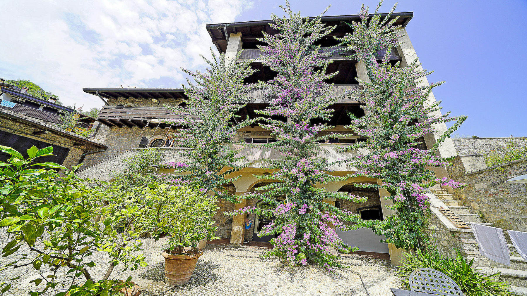 Gardone Riviera, Lago di Garda - In una delle frazioni del comune di Gardone Riviera, sorge un accogliente ed antico casale del 1500 con vista lago, completamente ristrutturato, composto da più unità immobiliari, che può essere adatto sia come abitazione principale, sia come b&b che può ospitare clienti da tutto il mondo, per godere delle meraviglie del Lago di Garda. La proprietà è ora divisa in appartamenti, che sono stati ristrutturati nel pieno rispetto della storicità della casa. Travi a vista, pavimenti di cotto fatti a mano, i vecchi pavimenti di larice oliato e gli infissi originali recuperati caratterizzano la loro struttura e autenticità. Ampie terrazze e balconi offrono vista lago ed un ambiente accogliente per i momenti di relax e pasti all’aperto. Il casale offre un ampio e curato giardino di 3.500mq con piscina. Sono presenti una varietà di alberi da frutto, tra i quali fichi, albicocche, kaki e uva. Lavanda e rosmarino incantano con il loro colore e profumo ed un terrazzino, sotto una pergola di vite americana, è attrezzato con barbecue. Questa proprietà, unica ed introvabile, è un ottimo investimento per chi sogna di vivere in una casa storica nella tranquillità che la circonda ed a pochi passi dal lago e dai principali servizi.