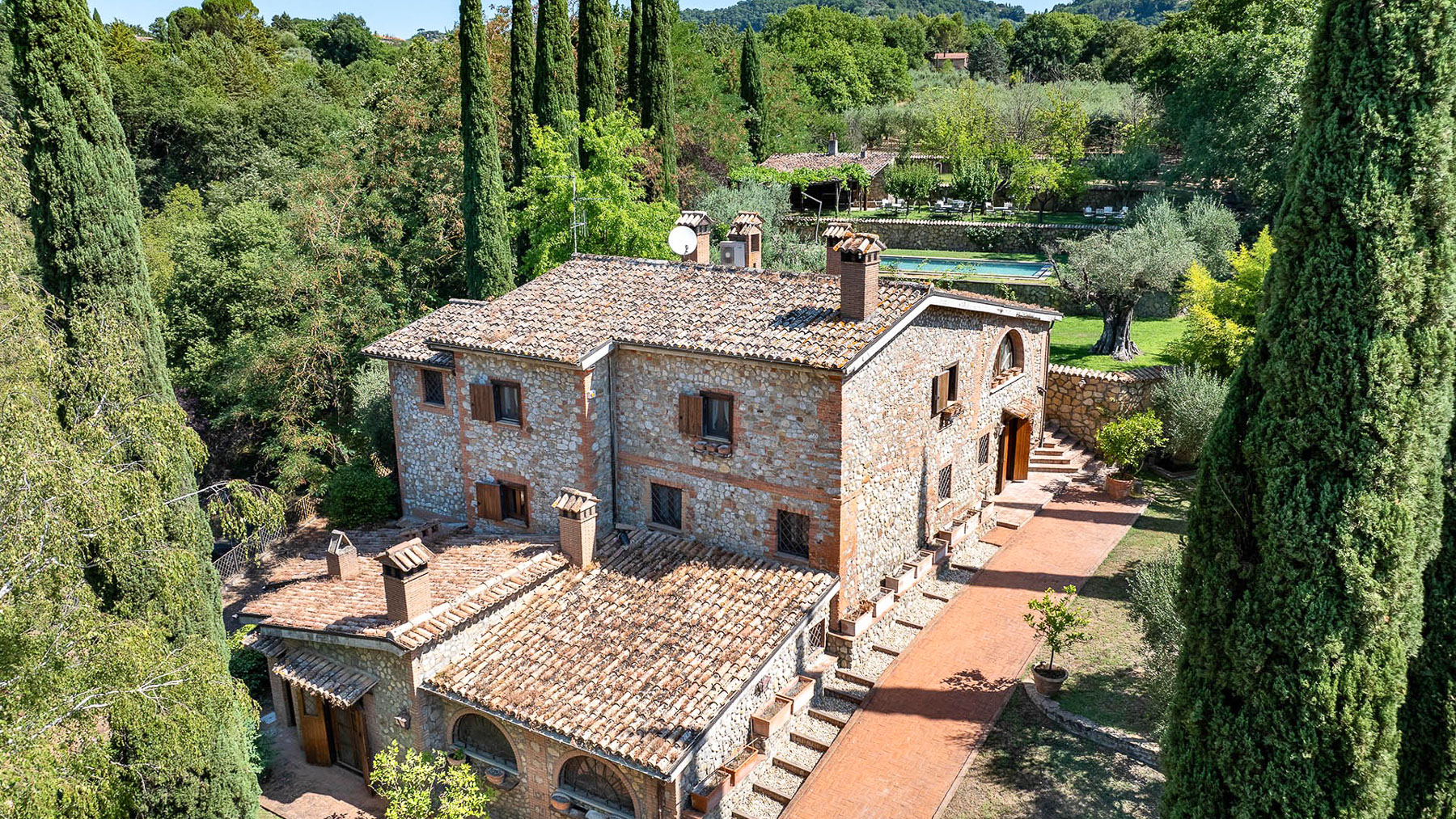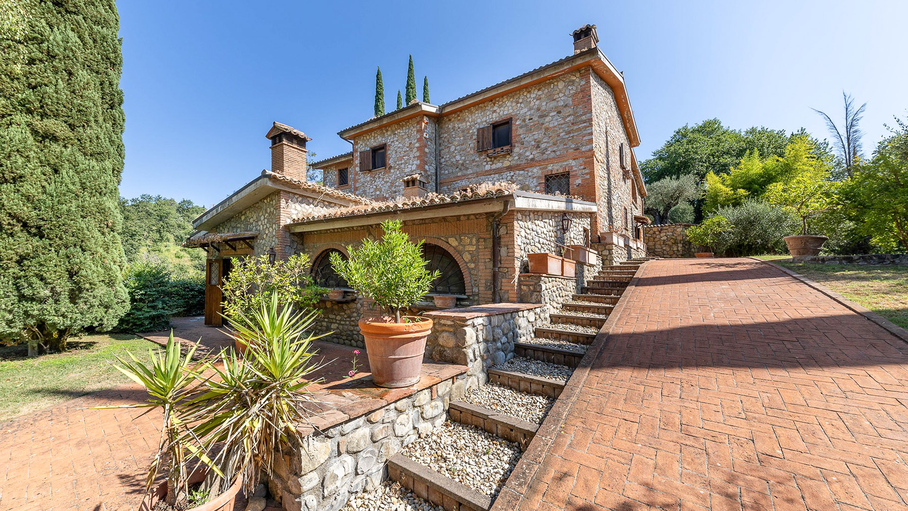 Tra le dolci colline dell'alto Orvietano, a pochi passi dal pittoresco borgo di Monteleone d'Orvieto, si cela un rifugio di pace e bellezza: un casale in pietra che racconta storie di tempi passati. Qui, la luce del sole filtra tra gli ulivi e il fruscio delle foglie accompagna ogni passo, mentre il profumo del bosco e delle piante da frutto avvolge i sensi, creando un'oasi di tranquillità e lusso. Questo magnifico casale di 500 mq, risalente al 1800 e sapientemente ristrutturato, vanta 12 stanze tra cui spiccano ampi salotti con camini accoglienti, una cucina abitabile, e 5 bagni. Gli interni sono un omaggio all'architettura tradizionale, con pavimenti in cotto, travi in legno e dettagli in pietra che raccontano la storia del luogo. All'esterno, un giardino curato di oltre 1000 mq accoglie una piscina scintillante, perfetta per rilassarsi nelle lunghe giornate estive, e una pergola di 50 mq con barbecue e forno a legna per cene all'aperto sotto il cielo stellato. La proprietà si estende su 1,8 ettari di terreno, con uliveti, noceti e bosco, offrendo uno stile di vita bucolico e rigenerante. Immagina di svegliarti ogni mattina con il canto degli uccelli, di passeggiare tra gli alberi secolari e di godere di pranzi all'aperto con i sapori genuini della terra. La sera, il crepitio del camino nella taverna rustica invita a momenti di convivialità e calore. Questa proprietà è un raro gioiello nel cuore dell'Umbria, dove tradizione e comfort moderno si fondono in un equilibrio perfetto. Un'opportunità imperdibile per chi cerca un'esperienza di vita unica in un contesto di lusso e serenità.