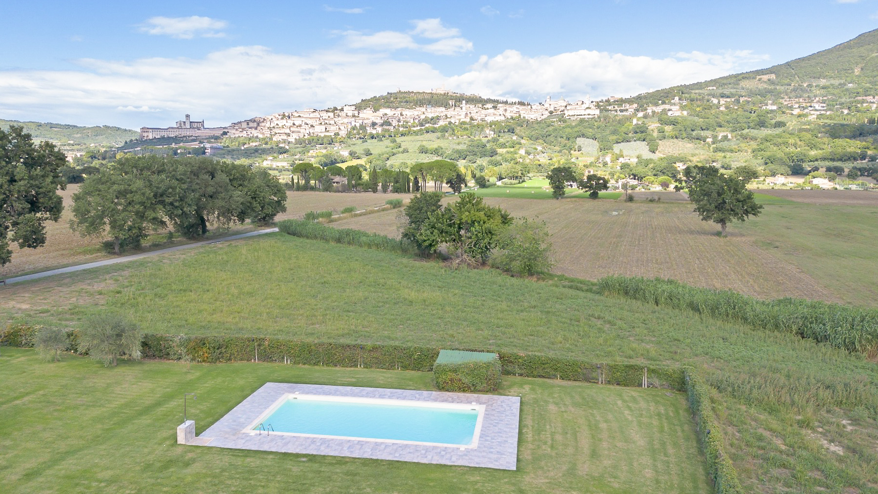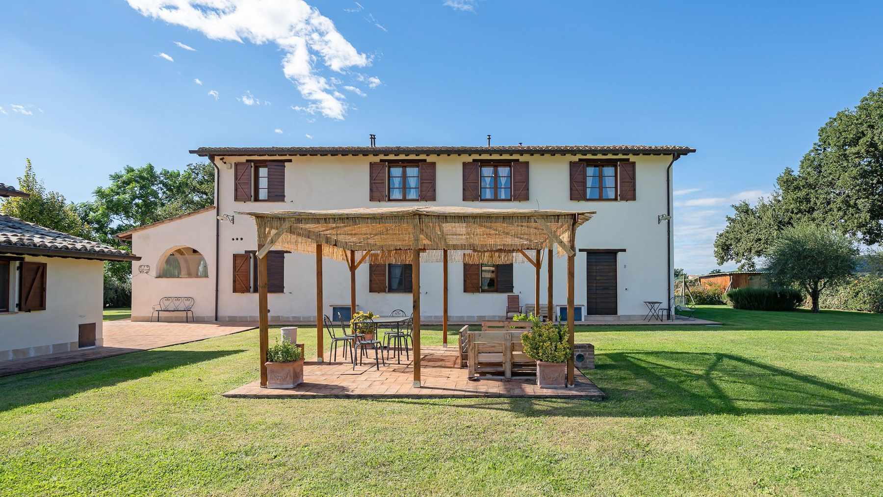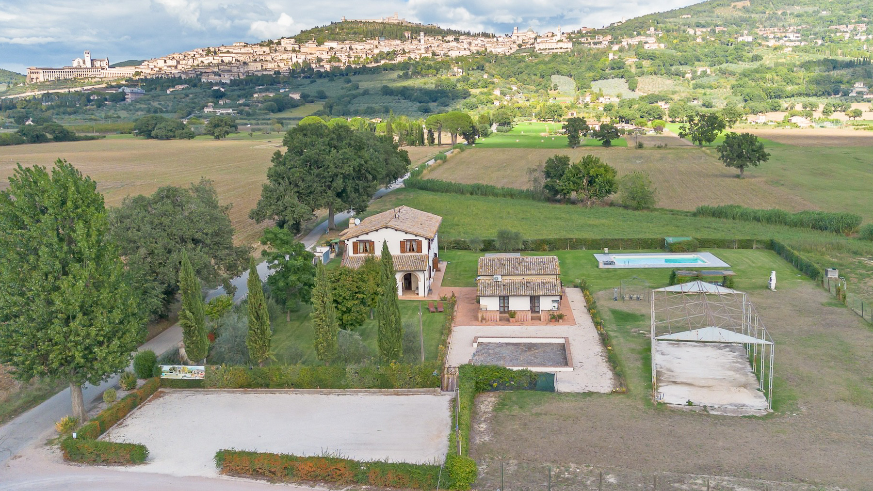 Immersa nell'incantevole cornice delle colline umbre, questa proprietà rappresenta un rifugio di pace e bellezza. Qui, la luce del sole accarezza dolcemente il giardino fiorito, mentre il canto degli uccelli accompagna le giornate trascorse tra la natura incontaminata e il fascino storico di Assisi, a pochi passi di distanza. Questa prestigiosa tenuta si estende su 596 mq, offrendo 18 stanze e 12 bagni, suddivisi tra un casale principale e una dépendance. Gli ampi spazi sono pensati per garantire il massimo comfort e flessibilità, con un giardino di 5.000 mq e una piscina che invita al relax sotto il cielo azzurro. La proprietà, situata nella provincia di Perugia, incarna il perfetto stile di vita di campagna, combinando eleganza e funzionalità in un contesto unico. Ogni giornata in questa residenza è un'opportunità per vivere esperienze indimenticabili. Immagina di passeggiare tra i filari di alberi, sorseggiando un bicchiere di vino locale al tramonto, mentre la vista sulle colline circostanti ti avvolge in un abbraccio di serenità. È il luogo ideale per chi cerca un equilibrio tra la vita moderna e la quiete della natura. Questa proprietà è una rara gemma nel panorama immobiliare di lusso, un'opportunità irripetibile per chi desidera vivere in un ambiente esclusivo, dove ogni dettaglio racconta una storia di eleganza e raffinatezza senza tempo.