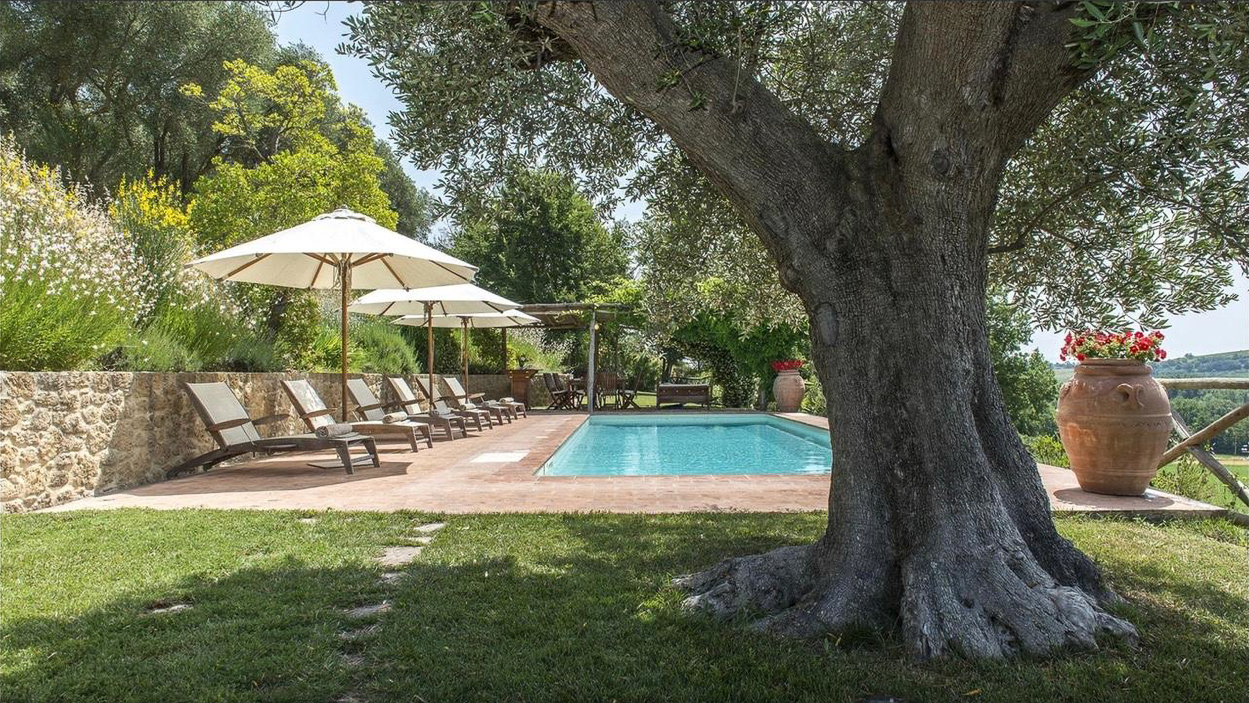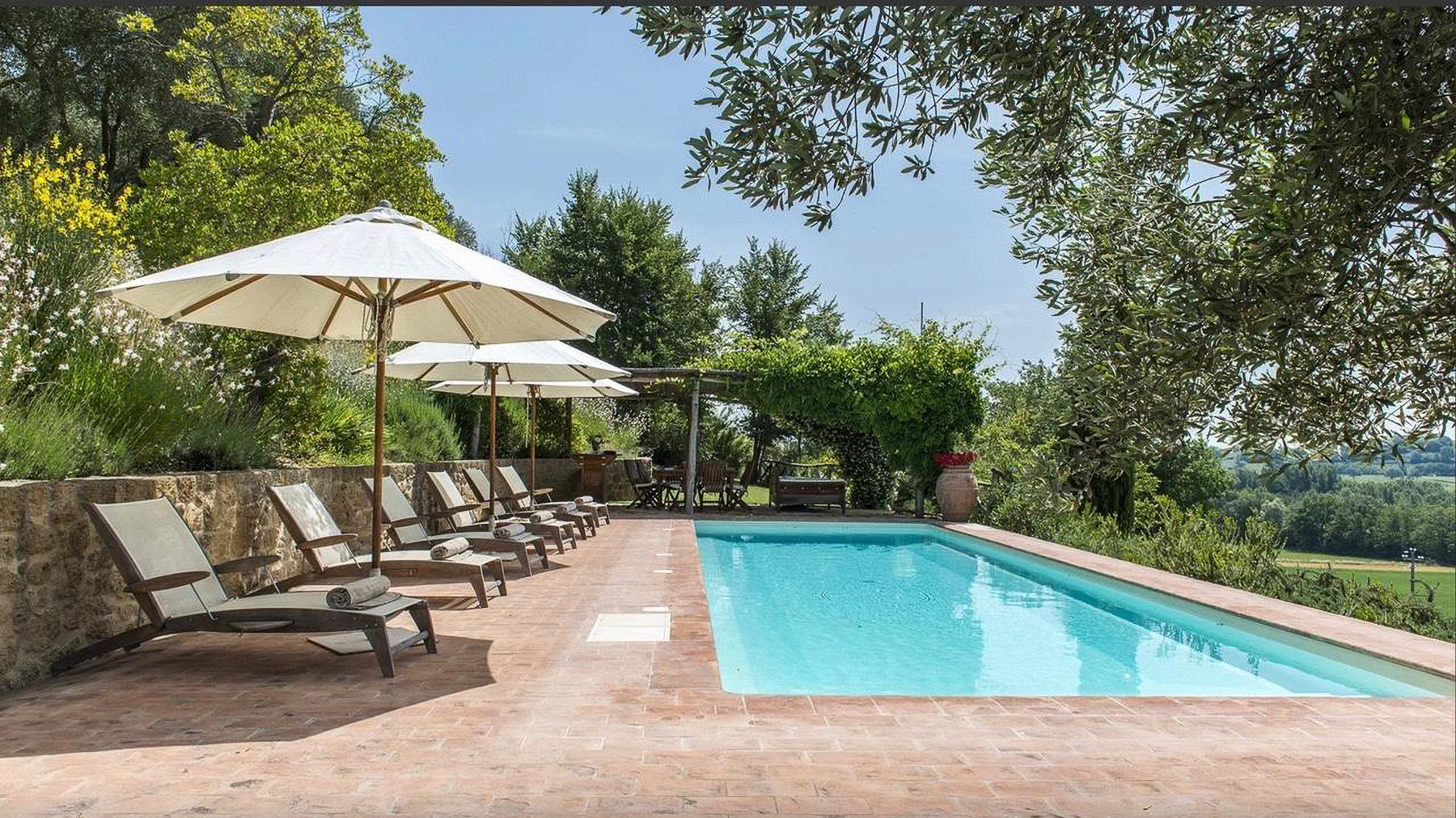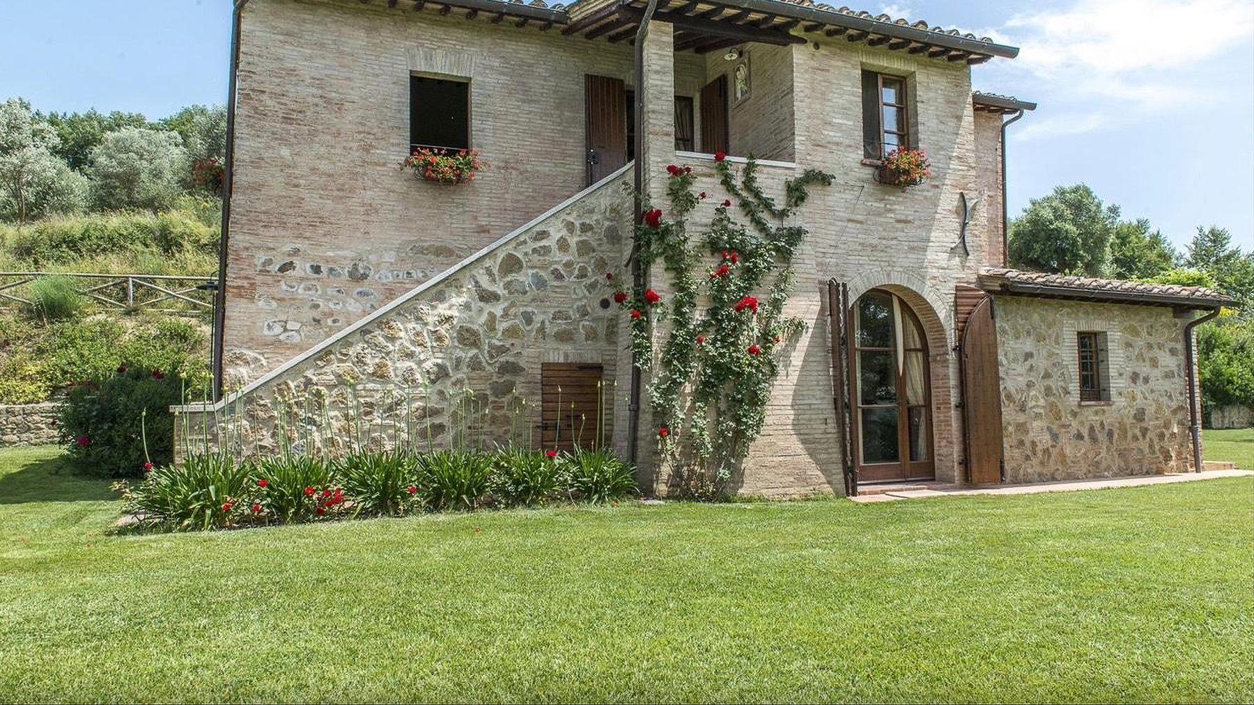 Immerso nel cuore delle colline toscane, questo casale in pietra è un rifugio di serenità e bellezza. Il fruscio delle foglie, il canto degli uccelli e il profumo delle piante aromatiche vi accolgono in un'atmosfera che richiama la dolce quiete della campagna. A pochi chilometri dalla storica Montepulciano, la proprietà si presenta come un angolo di paradiso, dove ogni stagione offre un incanto diverso. La casa, di 255 mq, si sviluppa su due livelli e offre sei stanze, tra cui tre ampie camere matrimoniali con bagni privati, e un totale di tre bagni. Un ampio salone con caminetto e una cucina con accesso diretto al pergolato esterno completano l'interno. All'esterno, un giardino di 5.000 mq ospita una piscina soleggiata, perfetta per rilassarsi ammirando il panorama di vigneti e uliveti. Situata nella provincia di Siena, questa dimora è perfetta per chi cerca il connubio tra lusso e vita rurale. Vivere in questa proprietà significa godere di momenti di puro relax, tra bagni di sole a bordo piscina e cene al tramonto sotto il pergolato. L'atmosfera è quella di un resort esclusivo, dove ogni dettaglio è pensato per offrire comfort e bellezza. Le serate estive trascorse nel giardino fiorito, circondati dal profumo di lavanda e rosmarino, regalano emozioni indimenticabili. Questa proprietà rappresenta un'opportunità irripetibile per chi desidera un'immobile di prestigio, dove eleganza e comfort si fondono armoniosamente. Un vero gioiello nel panorama delle residenze di lusso italiane.