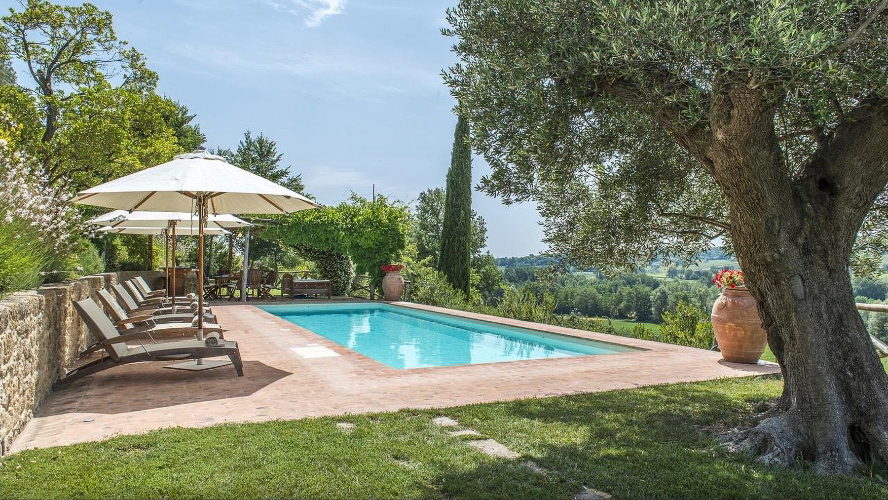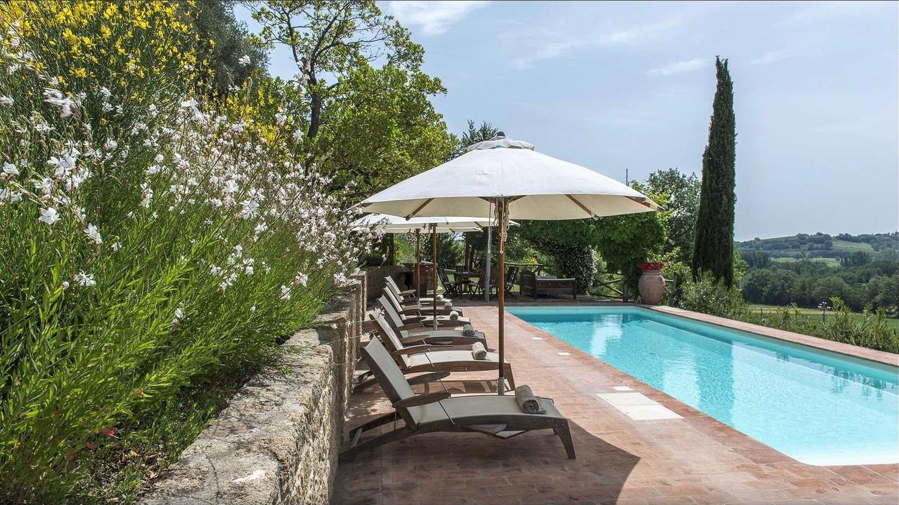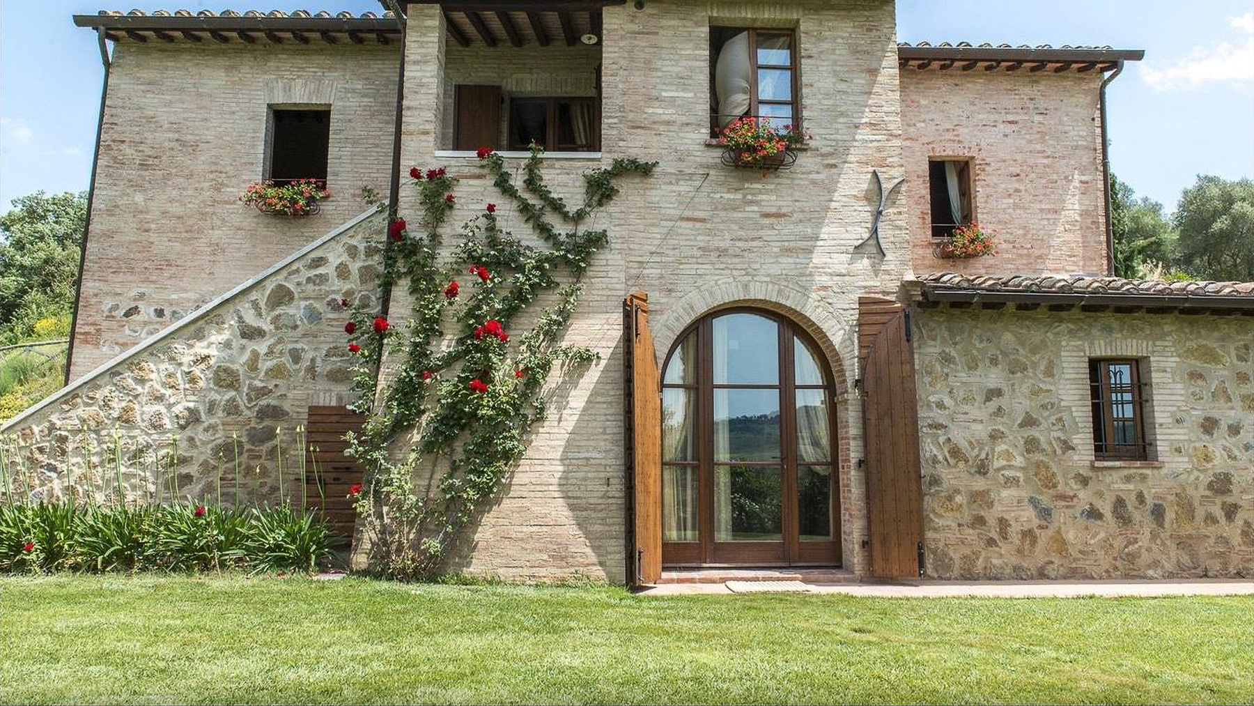 Immerso nel cuore delle colline toscane, questo casale in pietra è un rifugio di serenità e bellezza. Il fruscio delle foglie, il canto degli uccelli e il profumo delle piante aromatiche vi accolgono in un'atmosfera che richiama la dolce quiete della campagna. A pochi chilometri dalla storica Montepulciano, la proprietà si presenta come un angolo di paradiso, dove ogni stagione offre un incanto diverso. La casa, di 255 mq, si sviluppa su due livelli e offre sei stanze, tra cui tre ampie camere matrimoniali con bagni privati, e un totale di tre bagni. Un ampio salone con caminetto e una cucina con accesso diretto al pergolato esterno completano l'interno. All'esterno, un giardino di 5.000 mq ospita una piscina soleggiata, perfetta per rilassarsi ammirando il panorama di vigneti e uliveti. Situata nella provincia di Siena, questa dimora è perfetta per chi cerca il connubio tra lusso e vita rurale. Vivere in questa proprietà significa godere di momenti di puro relax, tra bagni di sole a bordo piscina e cene al tramonto sotto il pergolato. L'atmosfera è quella di un resort esclusivo, dove ogni dettaglio è pensato per offrire comfort e bellezza. Le serate estive trascorse nel giardino fiorito, circondati dal profumo di lavanda e rosmarino, regalano emozioni indimenticabili. Questa proprietà rappresenta un'opportunità irripetibile per chi desidera un'immobile di prestigio, dove eleganza e comfort si fondono armoniosamente. Un vero gioiello nel panorama delle residenze di lusso italiane.