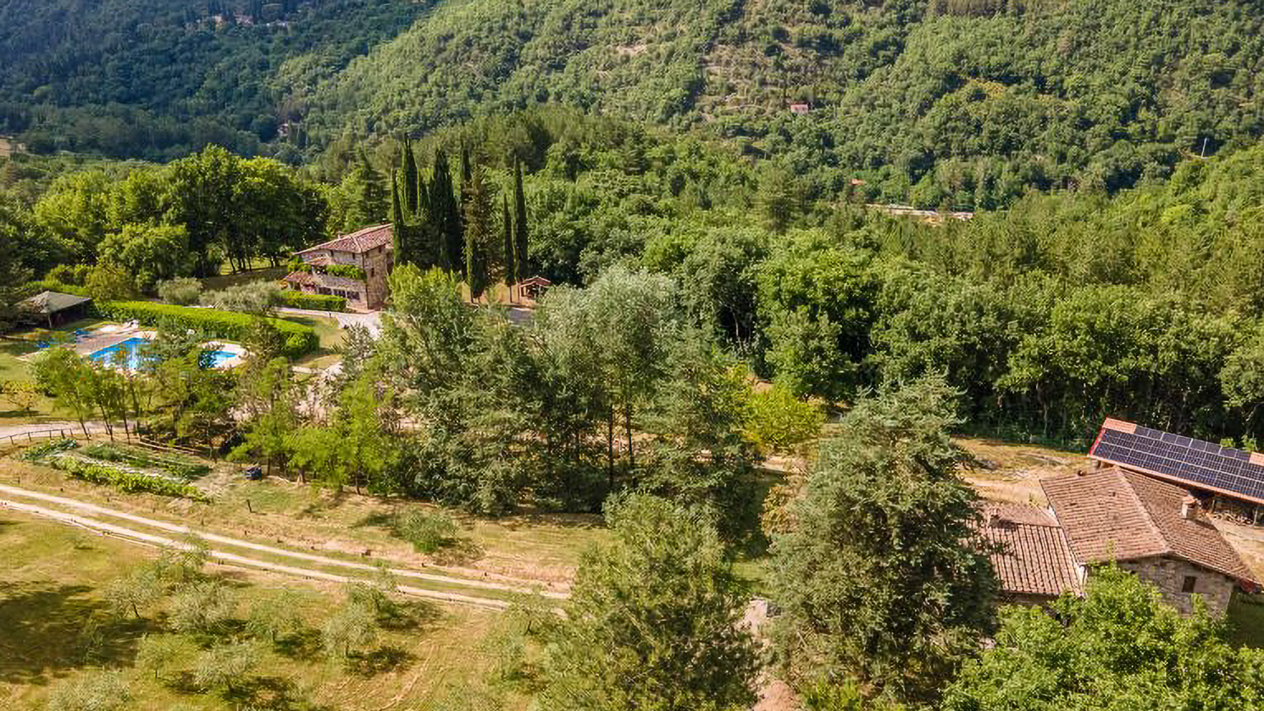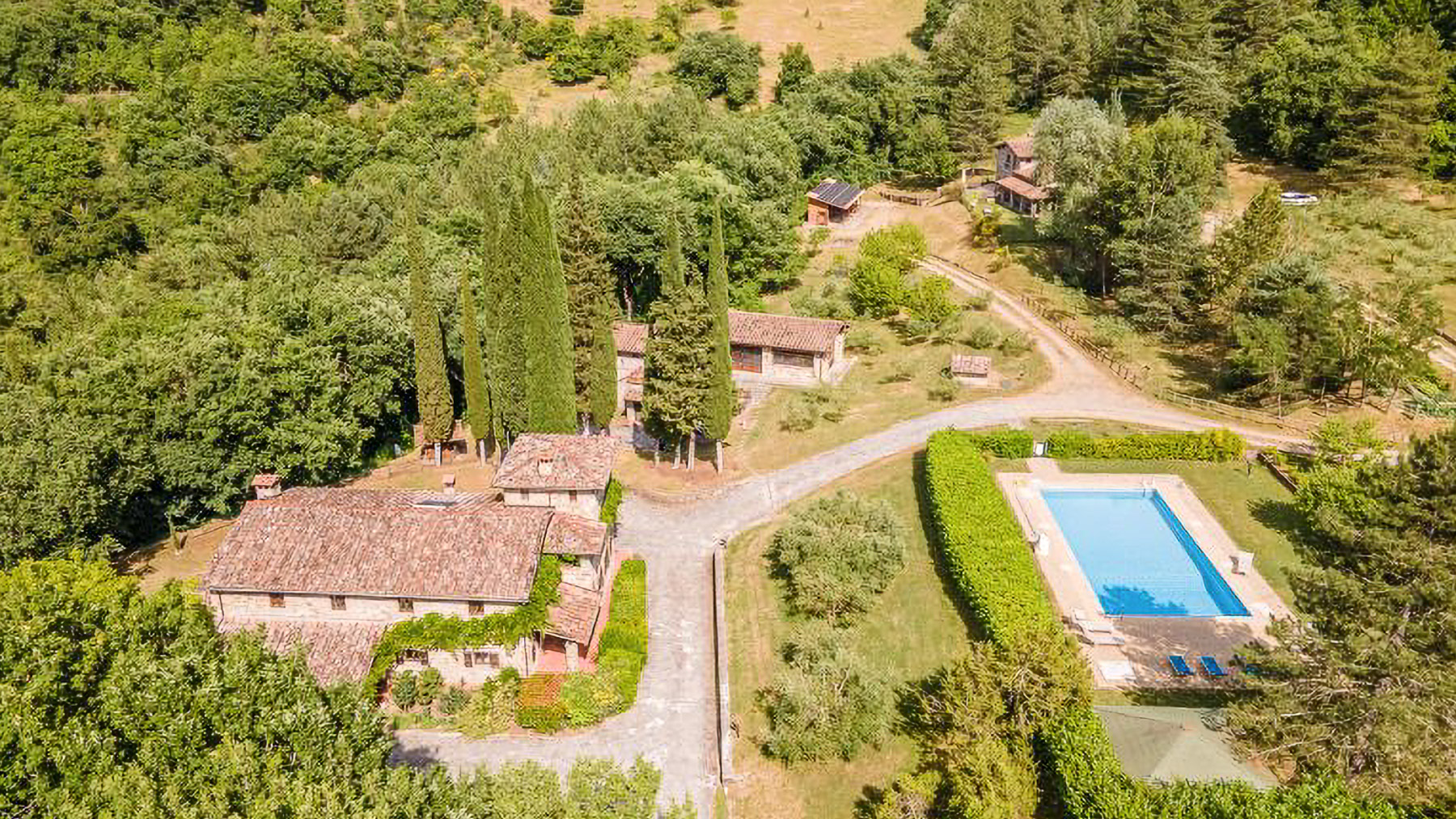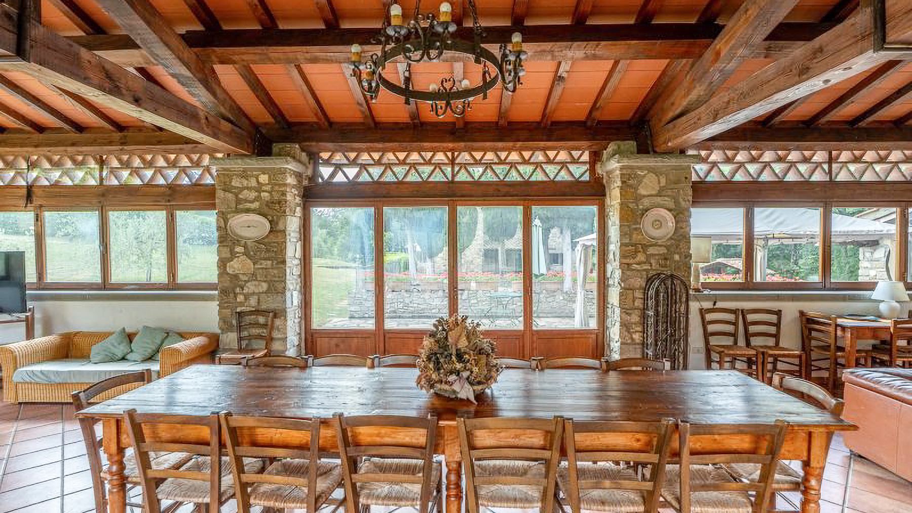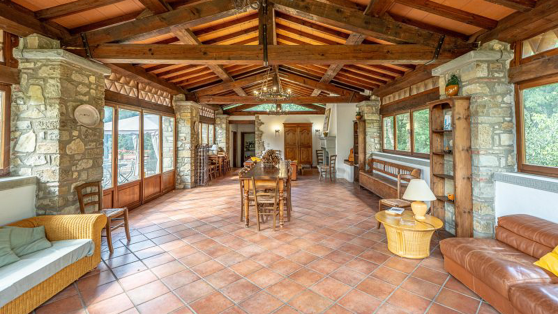 Immersa nella quiete incantata delle colline casentinesi, questa residenza in pietra è un rifugio dove il lusso si fonde con la natura. Tra il profumo dei boschi e il canto melodioso degli uccelli, si svela un'oasi di pace che invita a vivere un'esperienza fuori dal comune. Con una superficie di 1200 mq, la proprietà si erge come un capolavoro architettonico distribuito su più livelli. Le 18 stanze eleganti e gli 11 bagni, arredati con gusto impeccabile, offrono un'accoglienza senza pari. Tra le caratteristiche distintive, si annoverano un ampio salone conviviale, una piscina privata immersa nel verde, e un parcheggio coperto con un moderno impianto fotovoltaico da 12 kW. Situata nel comune di Chiusi della Verna, in provincia di Arezzo, questa dimora incarna la quintessenza del lifestyle di campagna, offrendo un perfetto connubio di privacy e natura. Vivere in questa residenza significa abbandonarsi a un mondo di esperienze uniche e momenti indimenticabili. Immagina di trascorrere pomeriggi assolati a bordo piscina, circondato dal verde lussureggiante, o serate invernali accanto al camino, coccolato dal crepitio del fuoco. La terrazza panoramica invita a cene sotto le stelle, regalando viste mozzafiato su un paesaggio che incanta in ogni stagione. Questa residenza rappresenta un'opportunità irripetibile nel mercato immobiliare di lusso, un equilibrio perfetto tra eleganza senza tempo e comfort moderno. Un luogo dove ogni dettaglio è pensato per offrire un'esperienza di vita esclusiva e raffinata.