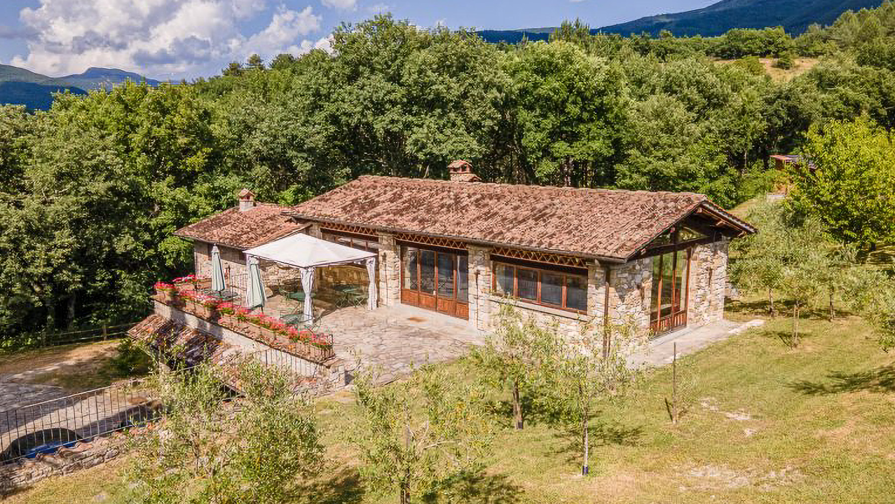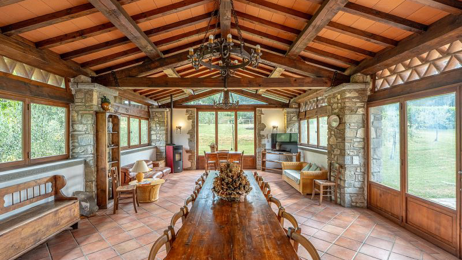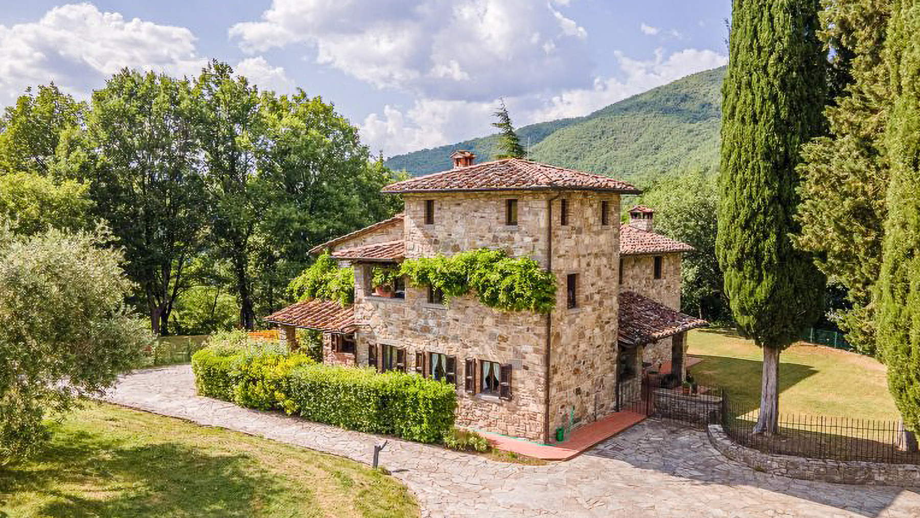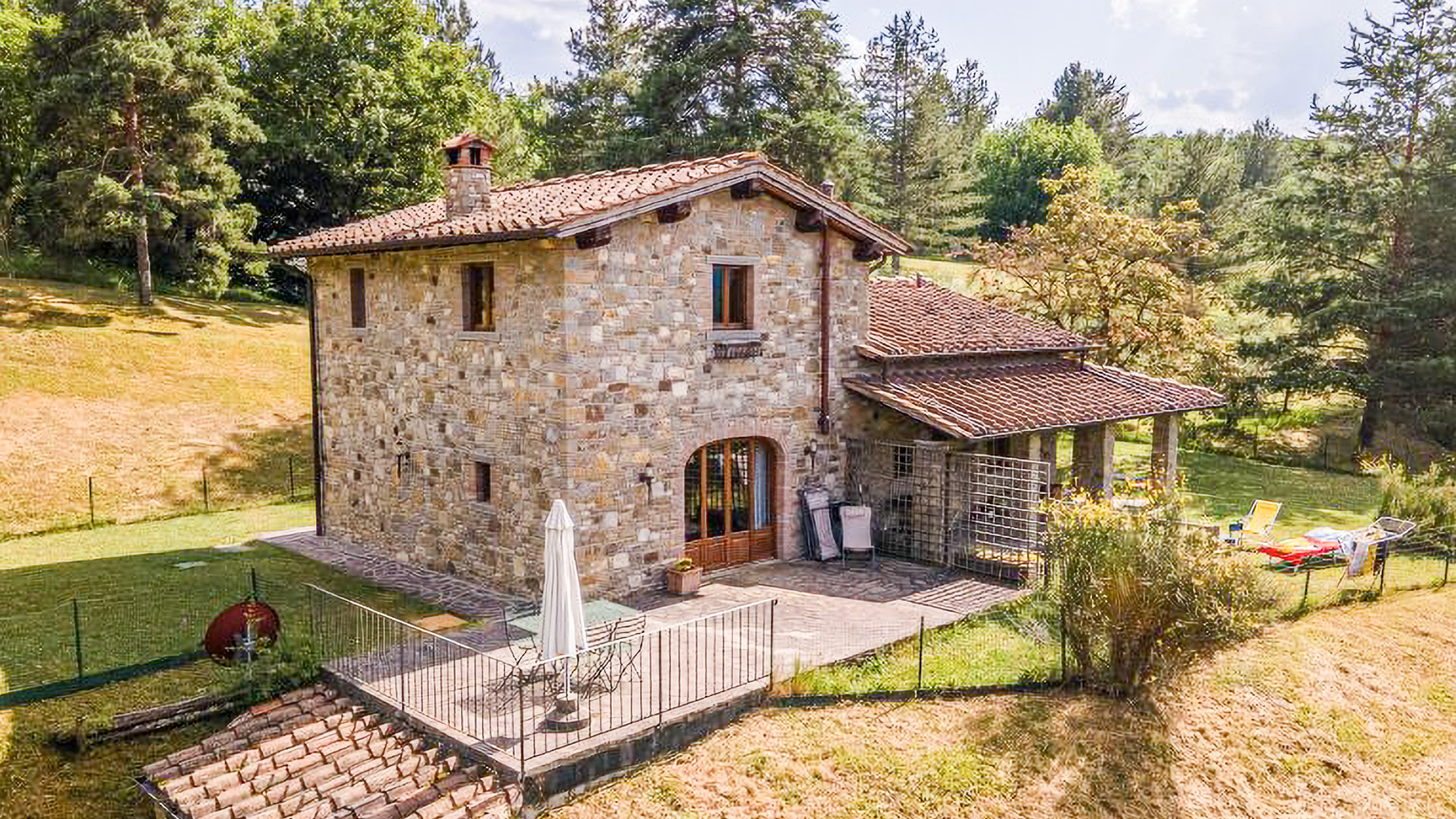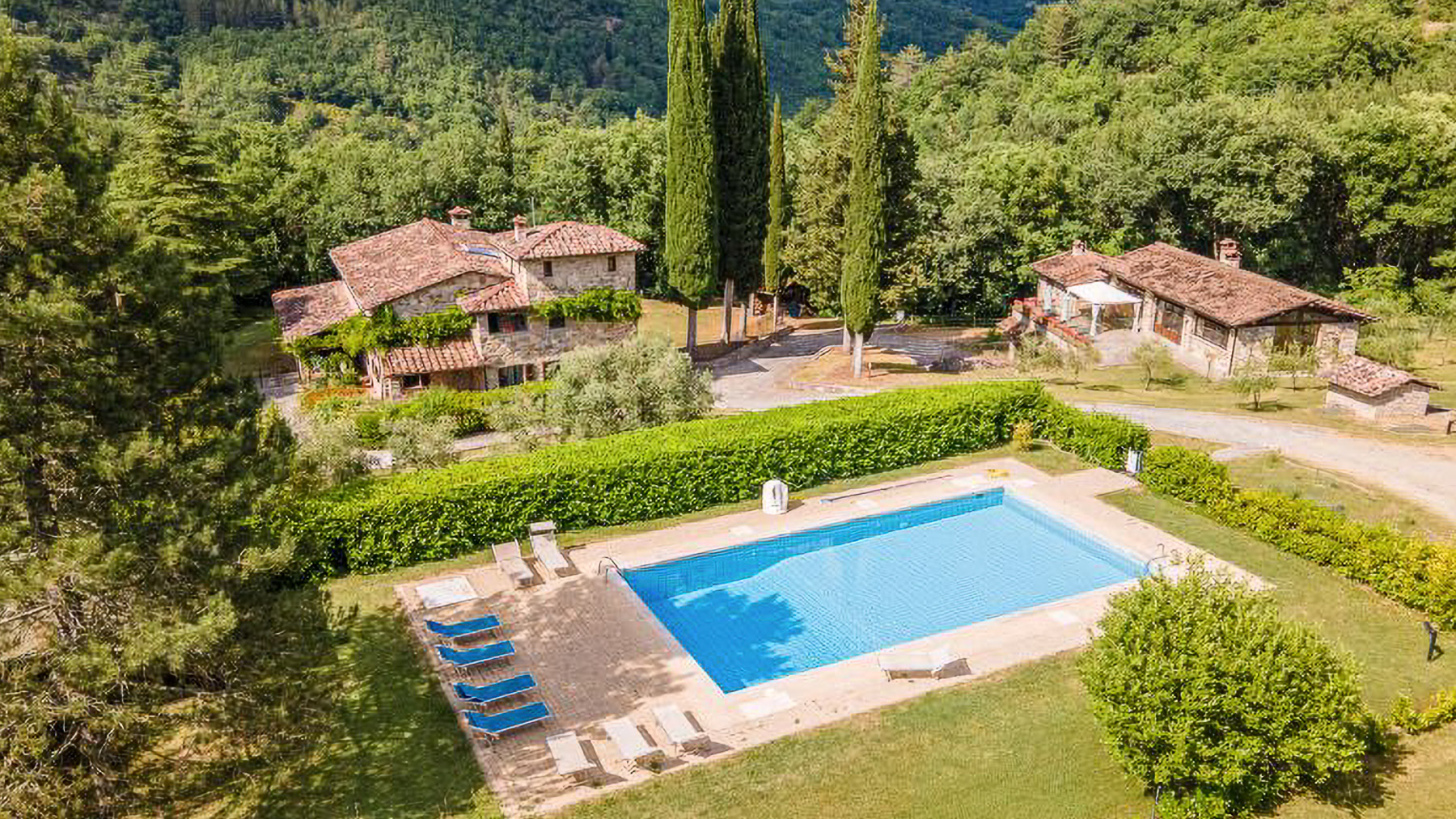 Immersa nella quiete incantata delle colline casentinesi, questa residenza in pietra è un rifugio dove il lusso si fonde con la natura. Tra il profumo dei boschi e il canto melodioso degli uccelli, si svela un'oasi di pace che invita a vivere un'esperienza fuori dal comune. Con una superficie di 1200 mq, la proprietà si erge come un capolavoro architettonico distribuito su più livelli. Le 18 stanze eleganti e gli 11 bagni, arredati con gusto impeccabile, offrono un'accoglienza senza pari. Tra le caratteristiche distintive, si annoverano un ampio salone conviviale, una piscina privata immersa nel verde, e un parcheggio coperto con un moderno impianto fotovoltaico da 12 kW. Situata nel comune di Chiusi della Verna, in provincia di Arezzo, questa dimora incarna la quintessenza del lifestyle di campagna, offrendo un perfetto connubio di privacy e natura. Vivere in questa residenza significa abbandonarsi a un mondo di esperienze uniche e momenti indimenticabili. Immagina di trascorrere pomeriggi assolati a bordo piscina, circondato dal verde lussureggiante, o serate invernali accanto al camino, coccolato dal crepitio del fuoco. La terrazza panoramica invita a cene sotto le stelle, regalando viste mozzafiato su un paesaggio che incanta in ogni stagione. Questa residenza rappresenta un'opportunità irripetibile nel mercato immobiliare di lusso, un equilibrio perfetto tra eleganza senza tempo e comfort moderno. Un luogo dove ogni dettaglio è pensato per offrire un'esperienza di vita esclusiva e raffinata.