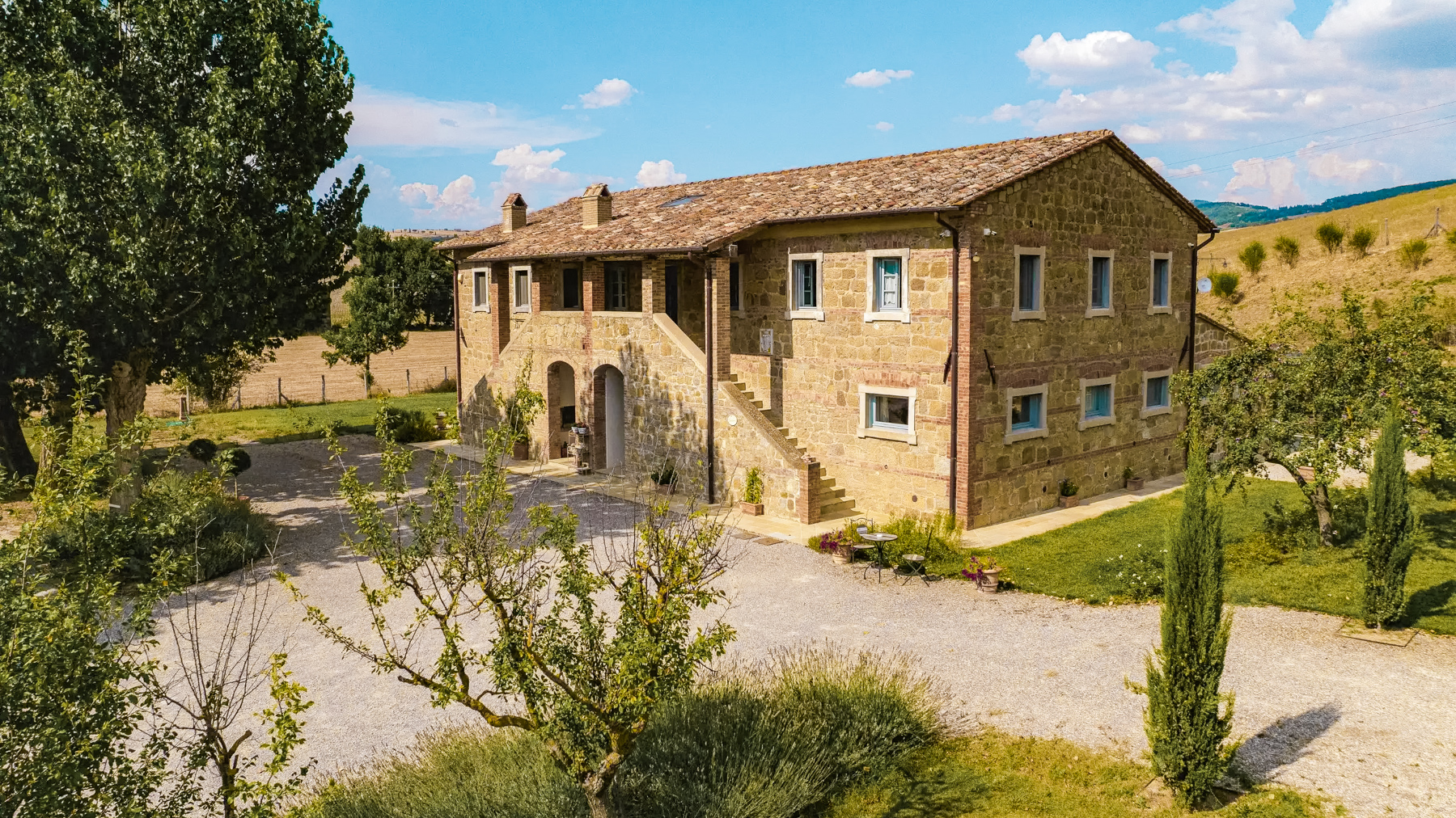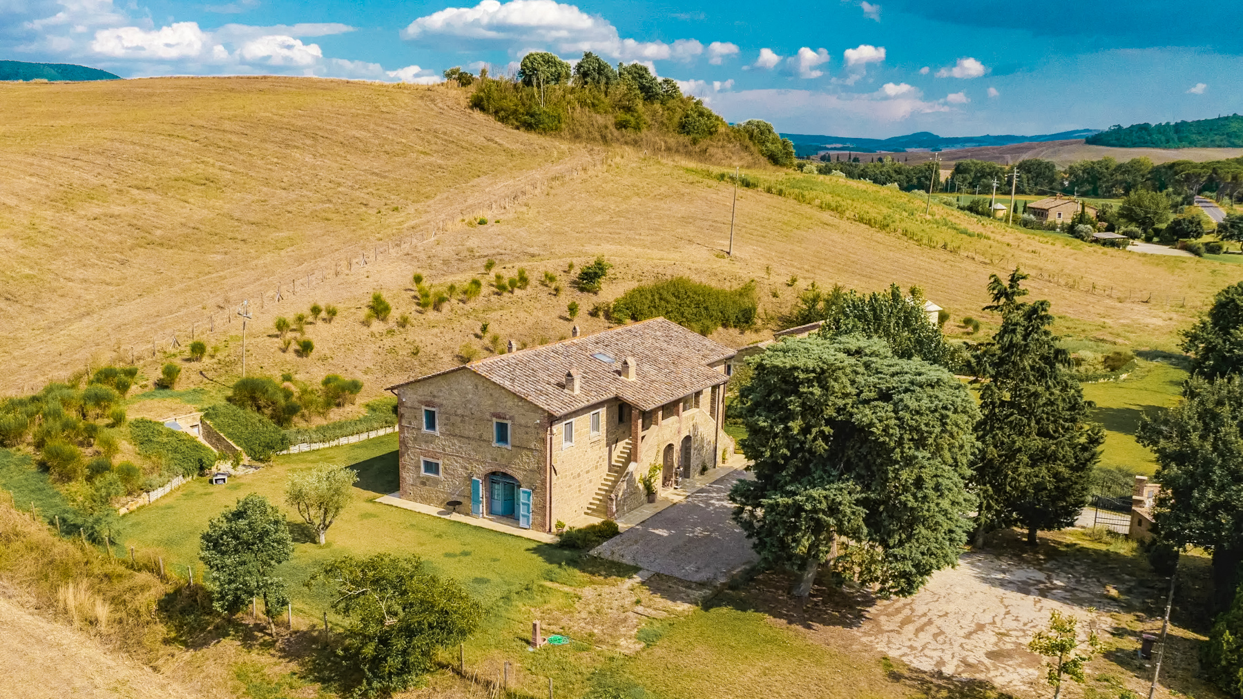 Immersa nel cuore della Valdorcia, questa splendida proprietà a Pienza è un rifugio di pace e raffinatezza. Circondata da dolci colline e campi appena mietuti, la residenza offre un'atmosfera serena e idilliaca, dove il canto degli uccelli e il profumo delle piante aromatiche accolgono il visitatore. La luce naturale inonda gli spazi, creando un ambiente accogliente e rilassante. Con una superficie di 503 metri quadrati, la proprietà si compone di un casale principale e una depandance, per un totale di 15 stanze e 9 bagni. Il casale principale, attualmente adibito a B&B, si sviluppa su due piani e include un ampio salone con camino, una cucina professionale, e sette camere da letto con bagno privato. La depandance offre due miniappartamenti indipendenti, ciascuno composto da sala/cucina, camera e bagno. Le finiture di pregio, come i pavimenti in cotto e parquet, le volte in mattoni e le travi in legno, si uniscono a moderni interventi di efficientamento energetico, garantendo comfort e sostenibilità. Vivere in questa proprietà significa abbracciare uno stile di vita autentico e rigenerante. Immagina di trascorrere serene mattinate passeggiando nel giardino recintato, tra fiori e alberi secolari, o di rilassarti nelle calde serate estive, godendo del panorama mozzafiato della campagna toscana. Le vicine città di Pienza, Montepulciano e Montalcino offrono esperienze culturali e gastronomiche uniche, arricchendo ulteriormente la tua vita quotidiana. Questa proprietà rappresenta un'opportunità irripetibile nel panorama immobiliare di lusso, un perfetto equilibrio tra tradizione toscana e comfort moderni. Scopri il fascino senza tempo di una residenza esclusiva, dove ogni dettaglio è pensato per offrirti il massimo del prestigio e del benessere.
