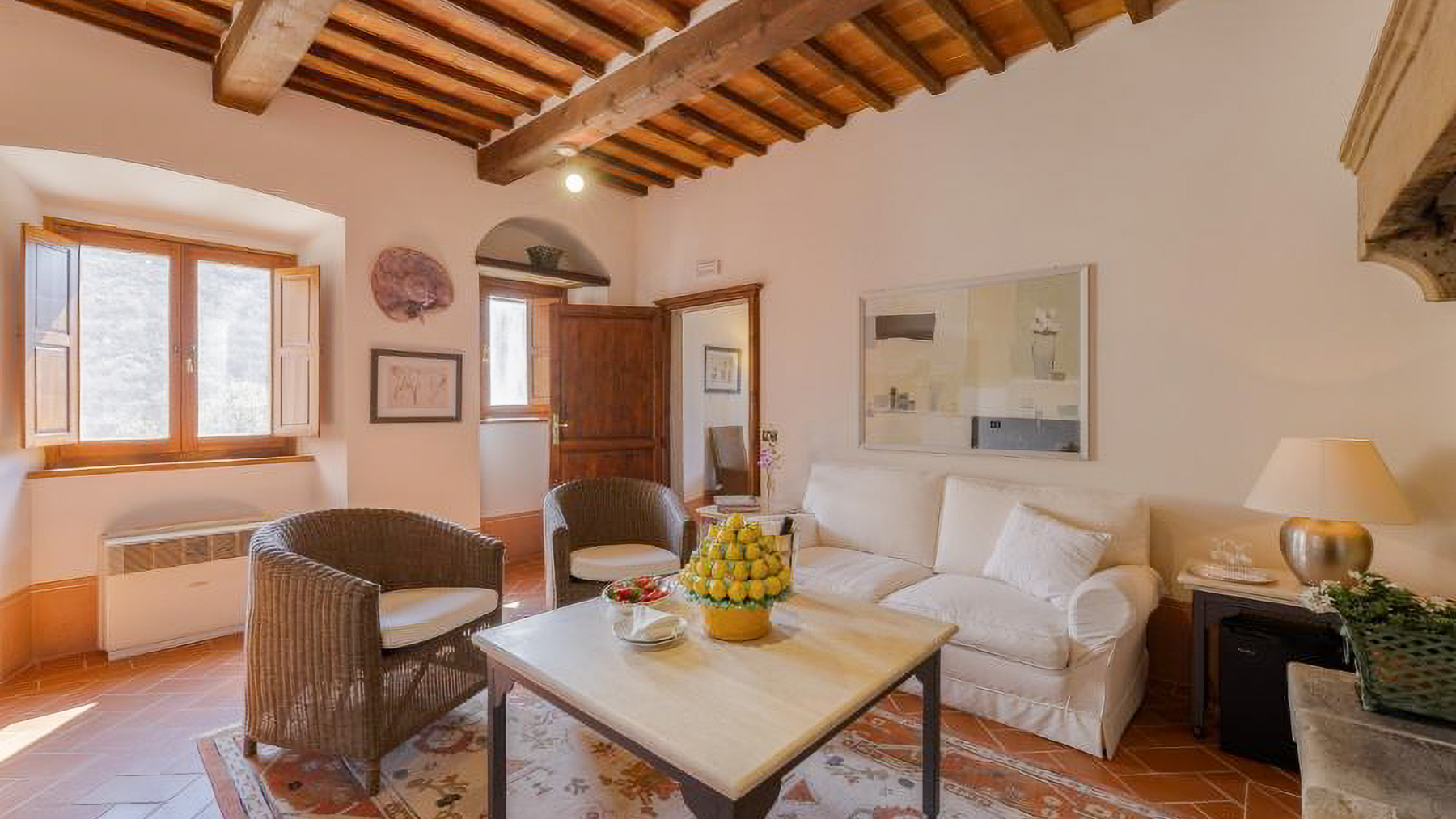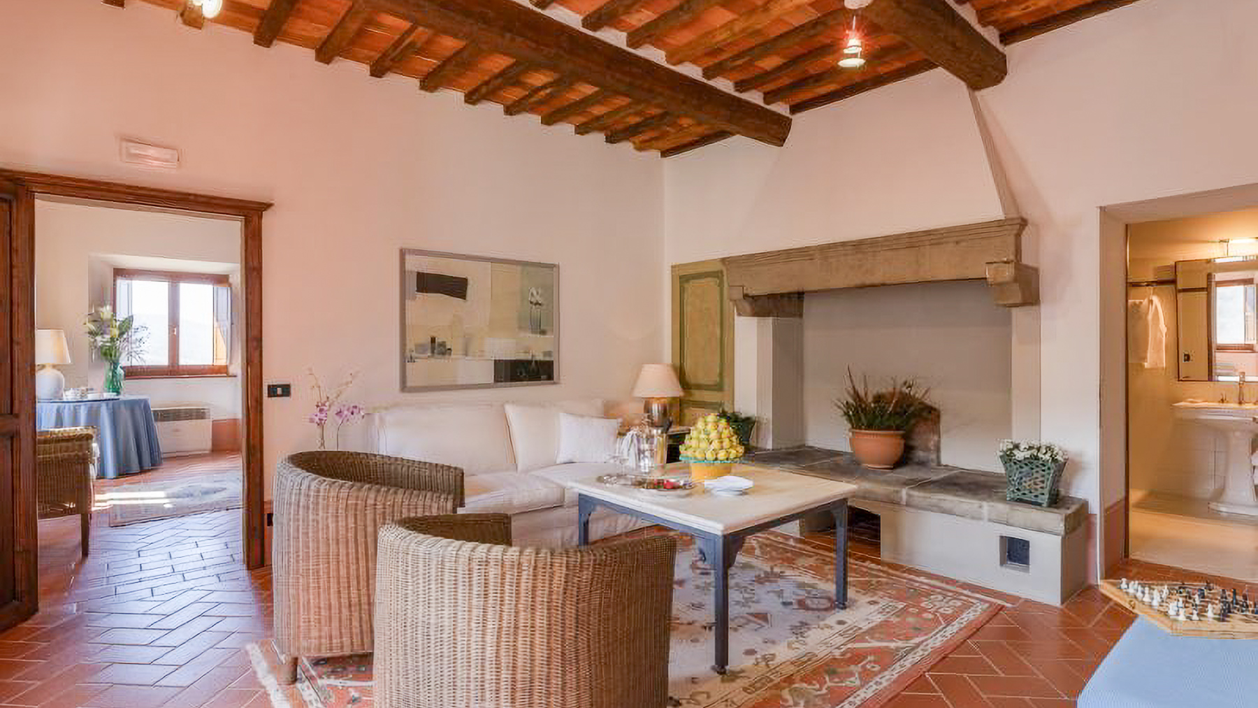 Immerso nelle dolci colline della campagna toscana, questo incantevole borgo privato è un rifugio di pace e bellezza. Qui, il silenzio è rotto solo dal canto degli uccelli e dal fruscio delle foglie, mentre la luce dorata del tramonto accarezza le pietre antiche e i tetti in terracotta. A pochi minuti da Castiglion Fiorentino, la proprietà offre un'esperienza unica di armonia tra natura e storia. Con una superficie di circa 1.500 mq, il borgo si compone di 16 stanze e 15 bagni, perfettamente integrati in un contesto storico di straordinaria bellezza. La residenza padronale, la chiesa del XIII secolo e la villa canonica sono solo alcuni dei gioielli architettonici che caratterizzano il complesso. Gli edifici, ristrutturati con cura, conservano il fascino delle architetture originarie, offrendo al contempo un elevato livello di comfort. La proprietà è circondata da cinque ettari di terreno, con uliveti e boschi che regalano un panorama mozzafiato sulla Val di Chio. Vivere in questo borgo significa abbracciare uno stile di vita ricco di emozioni e autenticità. Immagina di passeggiare tra i sentieri profumati di lavanda, di rilassarti a bordo piscina con vista sulle colline toscane, o di cenare sotto un cielo stellato nella taverna in pietra. Ogni spazio è pensato per offrire momenti di pura serenità e bellezza. Questa proprietà è una gemma rara nel cuore della Toscana, un luogo dove il tempo sembra essersi fermato. Rappresenta un'opportunità unica per chi cerca un'eleganza senza tempo, perfettamente intrecciata con il comfort moderno. Un rifugio esclusivo che incanta e affascina, pronto a diventare il tuo angolo di paradiso.
