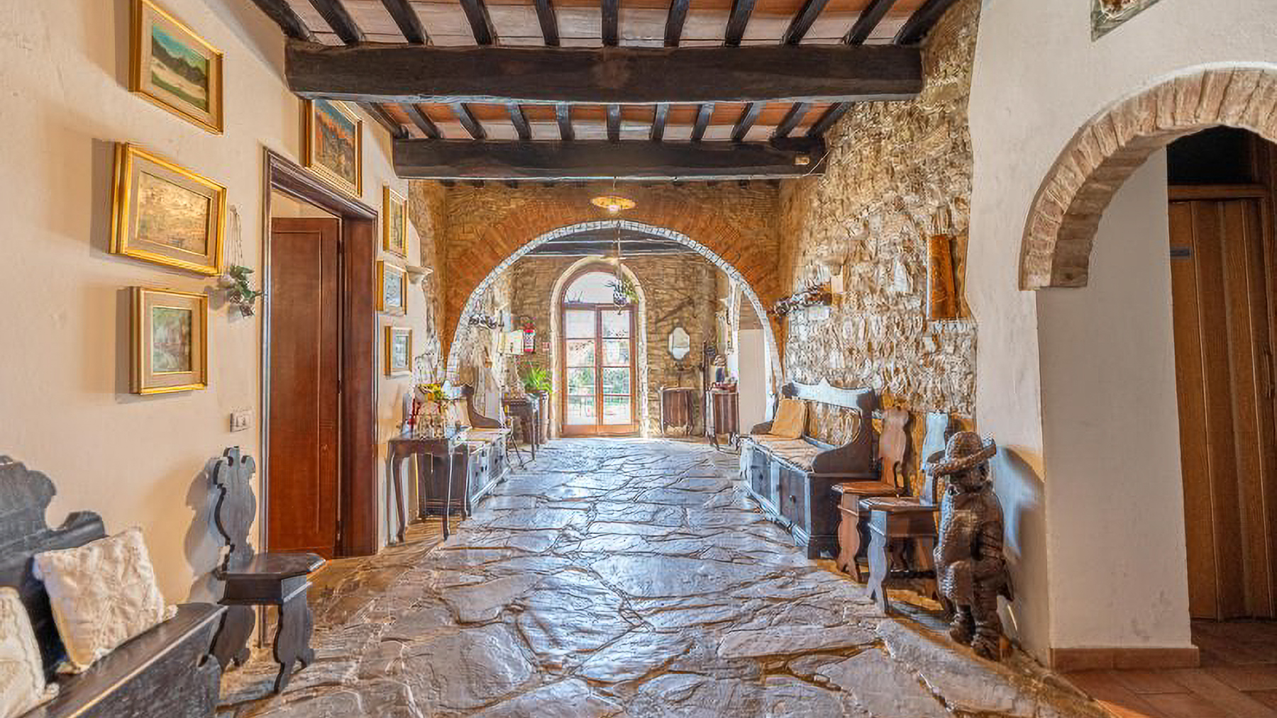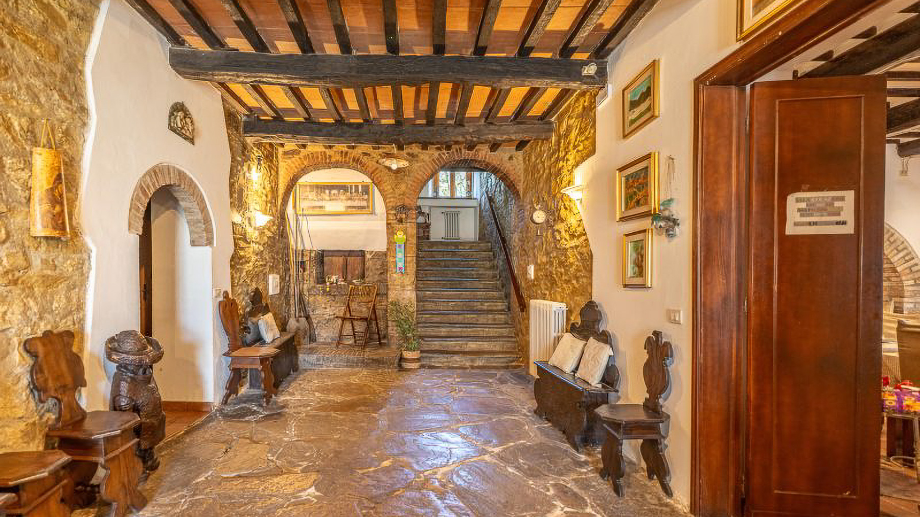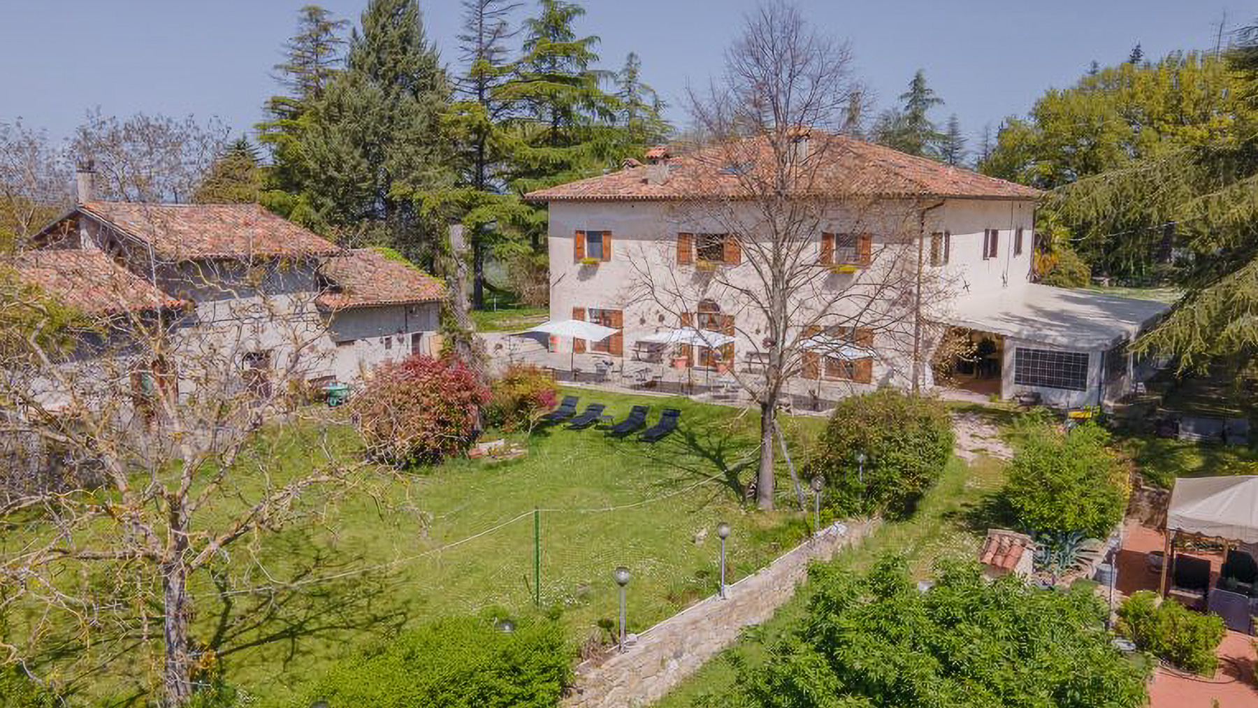 Nascosta tra le dolci colline umbre, questa proprietà incanta con le sue vedute panoramiche che abbracciano l'Alta Valle del Tevere. Immergiti nei suoni della natura, accompagnato dal profumo delle ginestre e dalla luce dorata del tramonto che accarezza il paesaggio. Un vero rifugio di pace e lusso, a breve distanza dal pittoresco centro storico di Città di Castello. Con una superficie di 1300 mq, questa esclusiva tenuta comprende 13 stanze e 8 bagni, distribuiti in un casale principale e diversi annessi. L'antica struttura in pietra è stata sapientemente restaurata per accogliere una raffinata attività ricettiva. La proprietà si estende su 6 ettari di terreno privato, con un parco ornamentale di 8.000 m² che include aree sportive, un agricamping e un giardino didattico. Gli esterni vantano una piscina con solarium e terrazze panoramiche, perfette per godere di momenti di relax in compagnia di una vista mozzafiato. Vivere qui significa abbracciare uno stile di vita esclusivo. Immagina di passeggiare tra i viali alberati del parco, di organizzare eventi memorabili sotto le tensile-structure o di rilassarti nella zona lounge al tramonto, con il calore del sole che svanisce all'orizzonte. La proprietà offre anche la possibilità di espandersi, con 15 ettari adiacenti disponibili per l'acquisto. Questa dimora rappresenta l'essenza del prestigio e della raffinatezza, un'opportunità rara nel cuore dell'Umbria. Un perfetto equilibrio tra eleganza senza tempo e comfort moderno, che attende solo di essere vissuto.