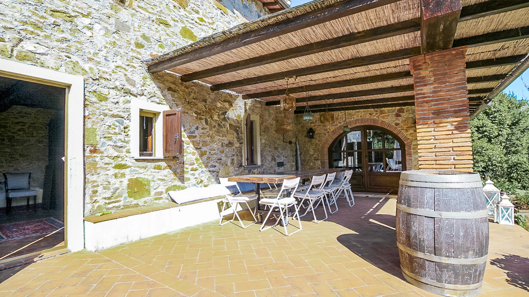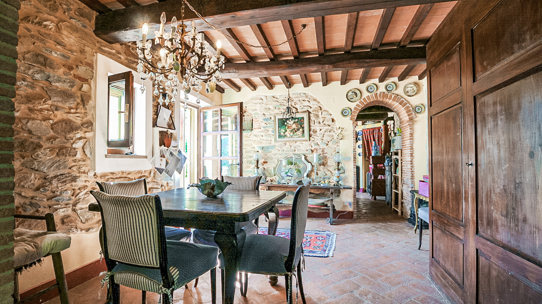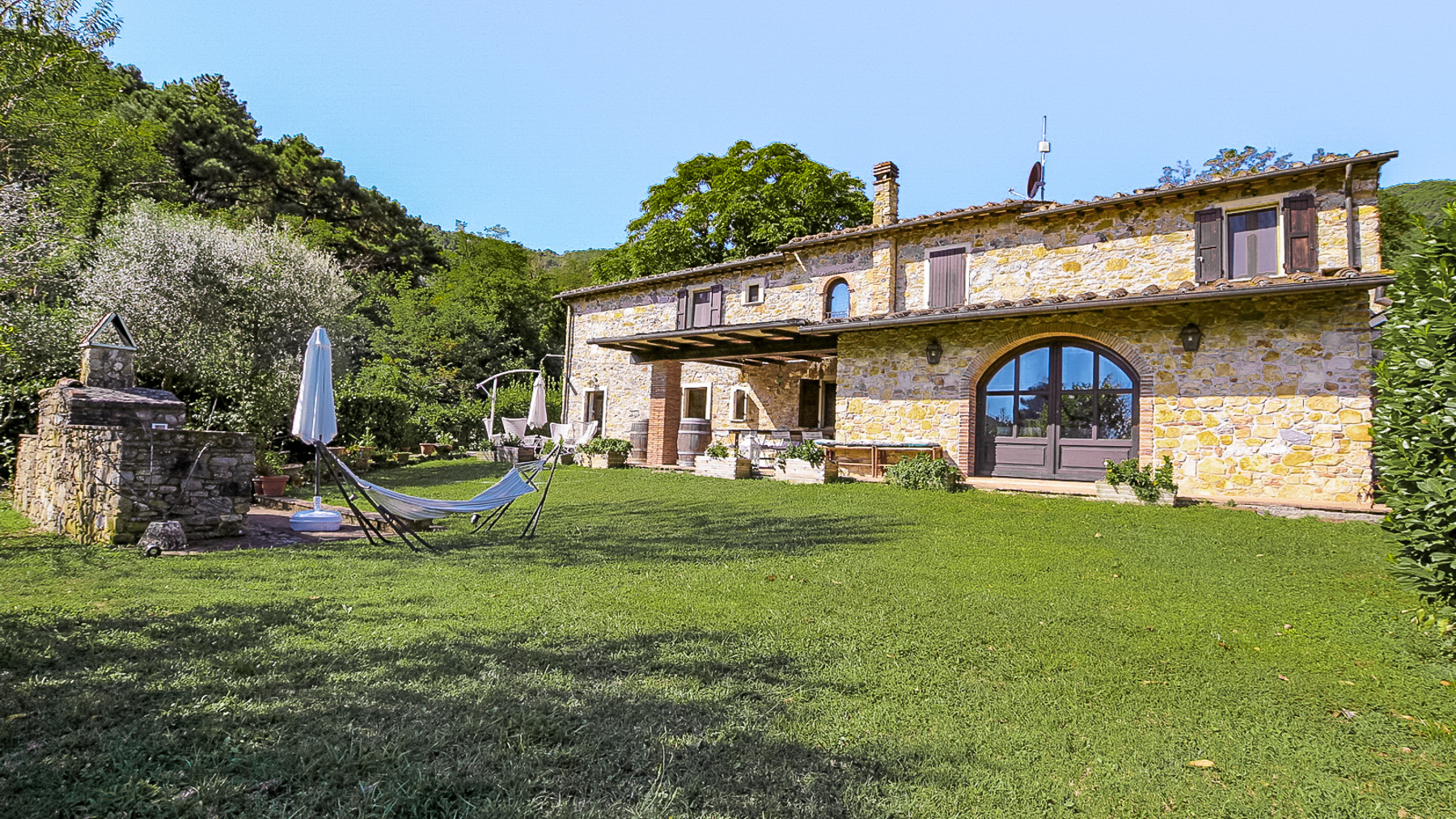 Immerso nella quiete delle colline di Buti, circondato da un verde autentico e da una luce che cambia con il ritmo delle stagioni, questo casolare in pietra si apre su un panorama ampio e rilassante, dove la campagna toscana conserva ancora un carattere sincero. La posizione è riservata ma non isolata, a breve distanza dal paese, raggiungibile attraverso una strada sterrata di circa 800 metri che accompagna lentamente verso un luogo pensato per chi cerca silenzio, natura e un senso profondo di continuità con il paesaggio. Completamente ristrutturato, il casolare mantiene intatto il suo spirito originario, articolandosi in ambienti accoglienti e ben distribuiti che comprendono ingresso, soggiorno, sala, cucina, un ampio salone, tre camere da letto, tre bagni e una stanza di passaggio che aggiunge flessibilità agli spazi. All’esterno, la proprietà è abbracciata da un giardino curato e da un terreno di circa 21.000 mq che include un piccolo vigneto, circa 200 piante di olivo, alberi da frutto e una porzione di bosco, creando un ecosistema privato ricco e variegato. La piscina si inserisce con naturalezza nel contesto, mentre l’annesso agricolo, utilizzato privatamente anche come dépendance, offre ulteriori possibilità di ospitalità o di uso personale. La vita qui scorre seguendo ritmi più lenti e autentici, tra giornate all’aperto, tramonti che colorano le colline e momenti di convivialità vissuti tra il giardino e gli interni in pietra. Una proprietà che unisce carattere, privacy e un legame profondo con la terra, ideale per chi desidera vivere la Toscana più vera senza rinunciare alla vicinanza ai servizi.