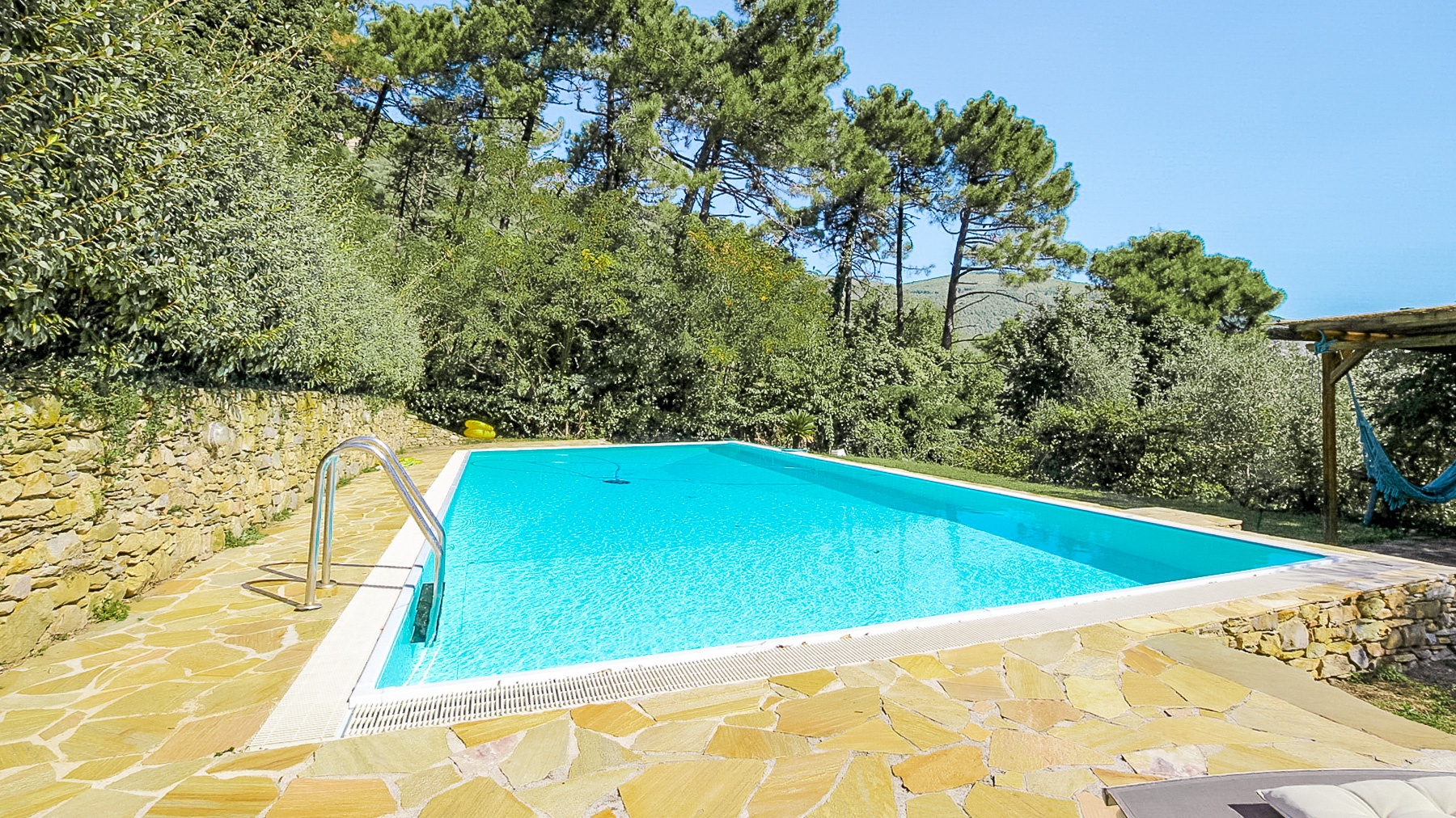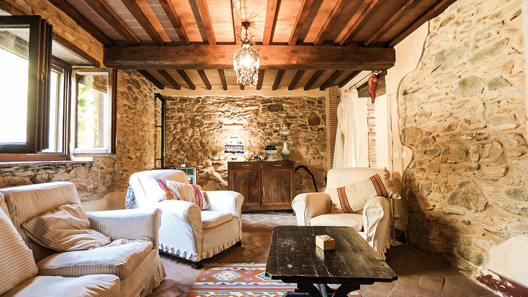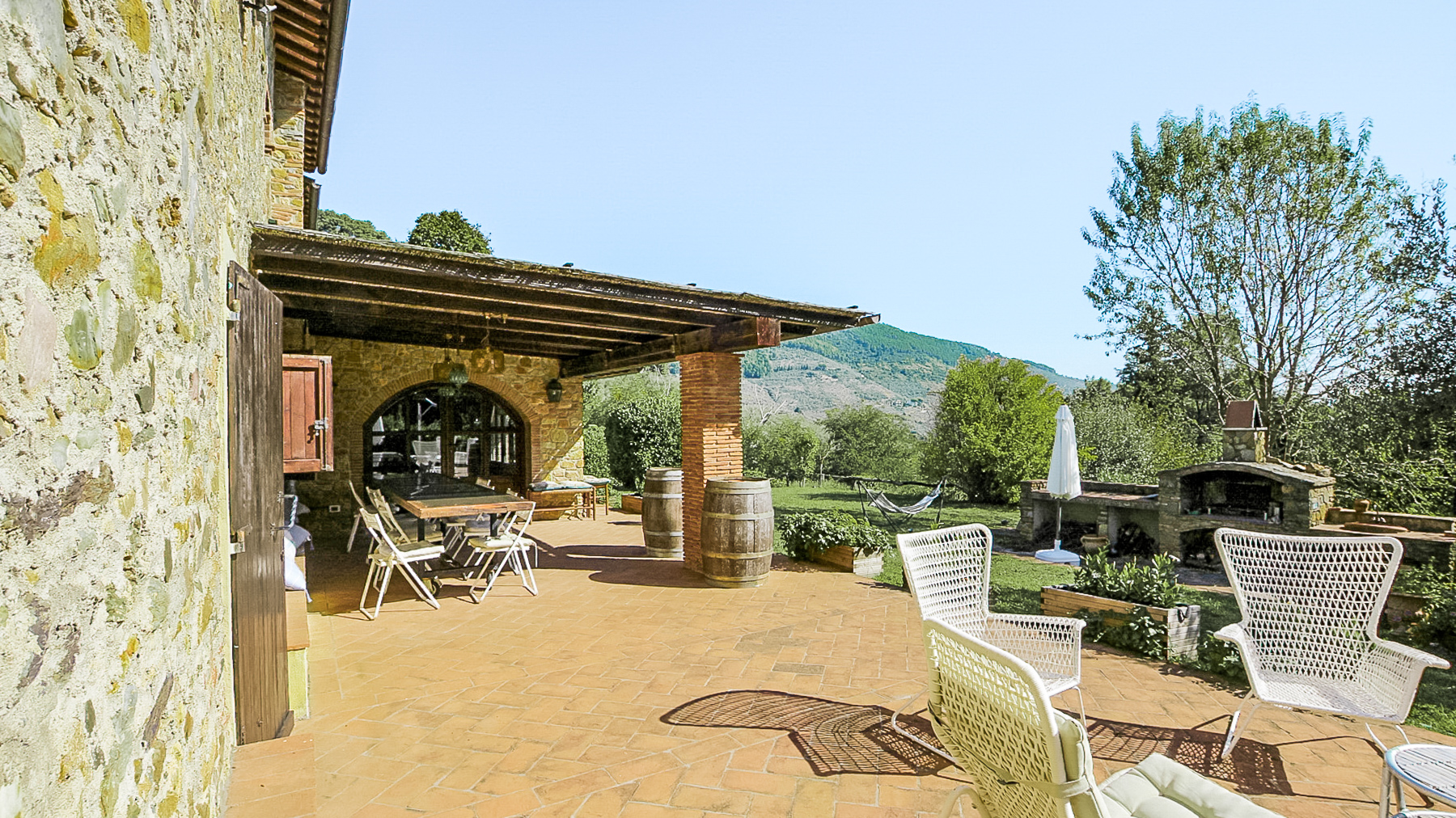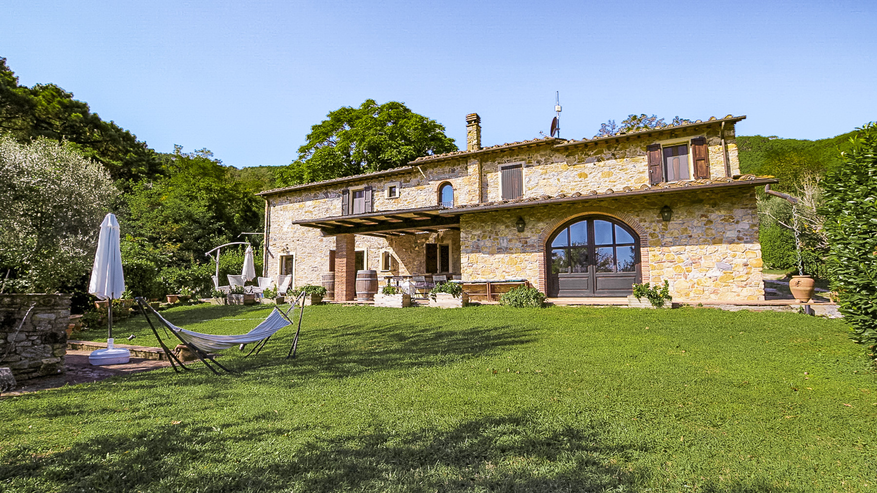 Immerso nella quiete delle colline di Buti, circondato da un verde autentico e da una luce che cambia con il ritmo delle stagioni, questo casolare in pietra si apre su un panorama ampio e rilassante, dove la campagna toscana conserva ancora un carattere sincero. La posizione è riservata ma non isolata, a breve distanza dal paese, raggiungibile attraverso una strada sterrata di circa 800 metri che accompagna lentamente verso un luogo pensato per chi cerca silenzio, natura e un senso profondo di continuità con il paesaggio. Completamente ristrutturato, il casolare mantiene intatto il suo spirito originario, articolandosi in ambienti accoglienti e ben distribuiti che comprendono ingresso, soggiorno, sala, cucina, un ampio salone, tre camere da letto, tre bagni e una stanza di passaggio che aggiunge flessibilità agli spazi. All’esterno, la proprietà è abbracciata da un giardino curato e da un terreno di circa 21.000 mq che include un piccolo vigneto, circa 200 piante di olivo, alberi da frutto e una porzione di bosco, creando un ecosistema privato ricco e variegato. La piscina si inserisce con naturalezza nel contesto, mentre l’annesso agricolo, utilizzato privatamente anche come dépendance, offre ulteriori possibilità di ospitalità o di uso personale. La vita qui scorre seguendo ritmi più lenti e autentici, tra giornate all’aperto, tramonti che colorano le colline e momenti di convivialità vissuti tra il giardino e gli interni in pietra. Una proprietà che unisce carattere, privacy e un legame profondo con la terra, ideale per chi desidera vivere la Toscana più vera senza rinunciare alla vicinanza ai servizi.
