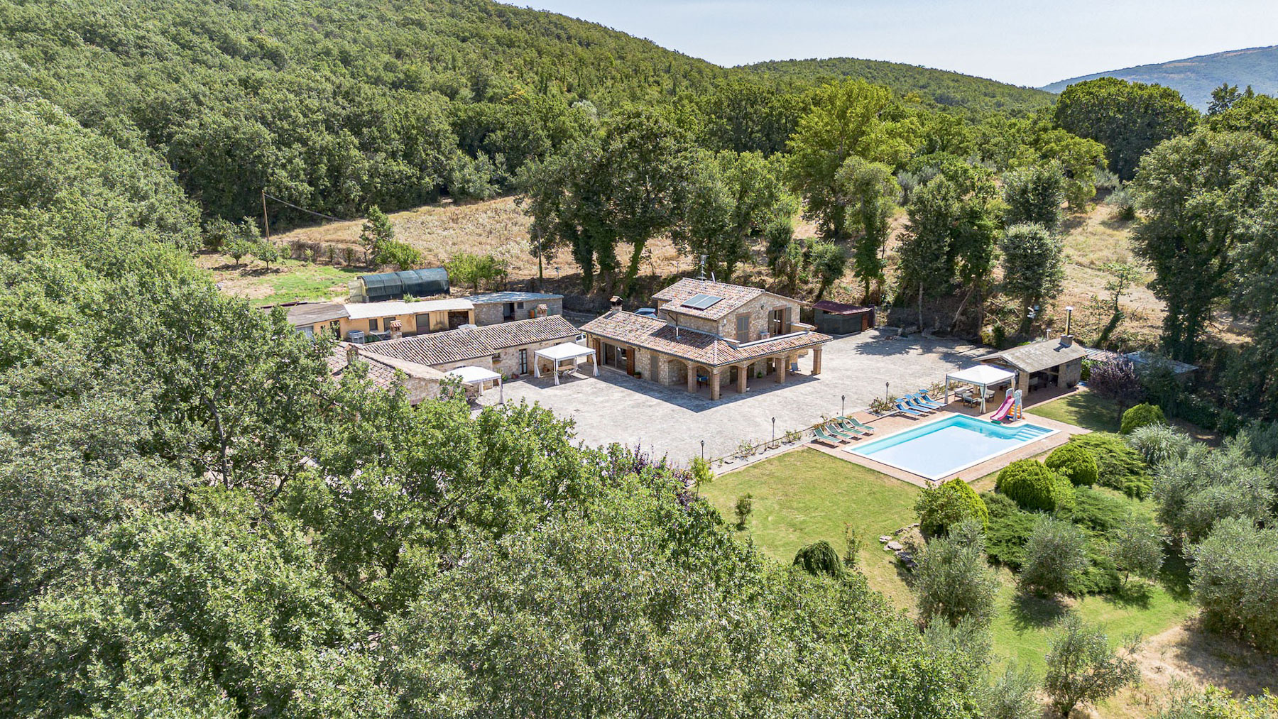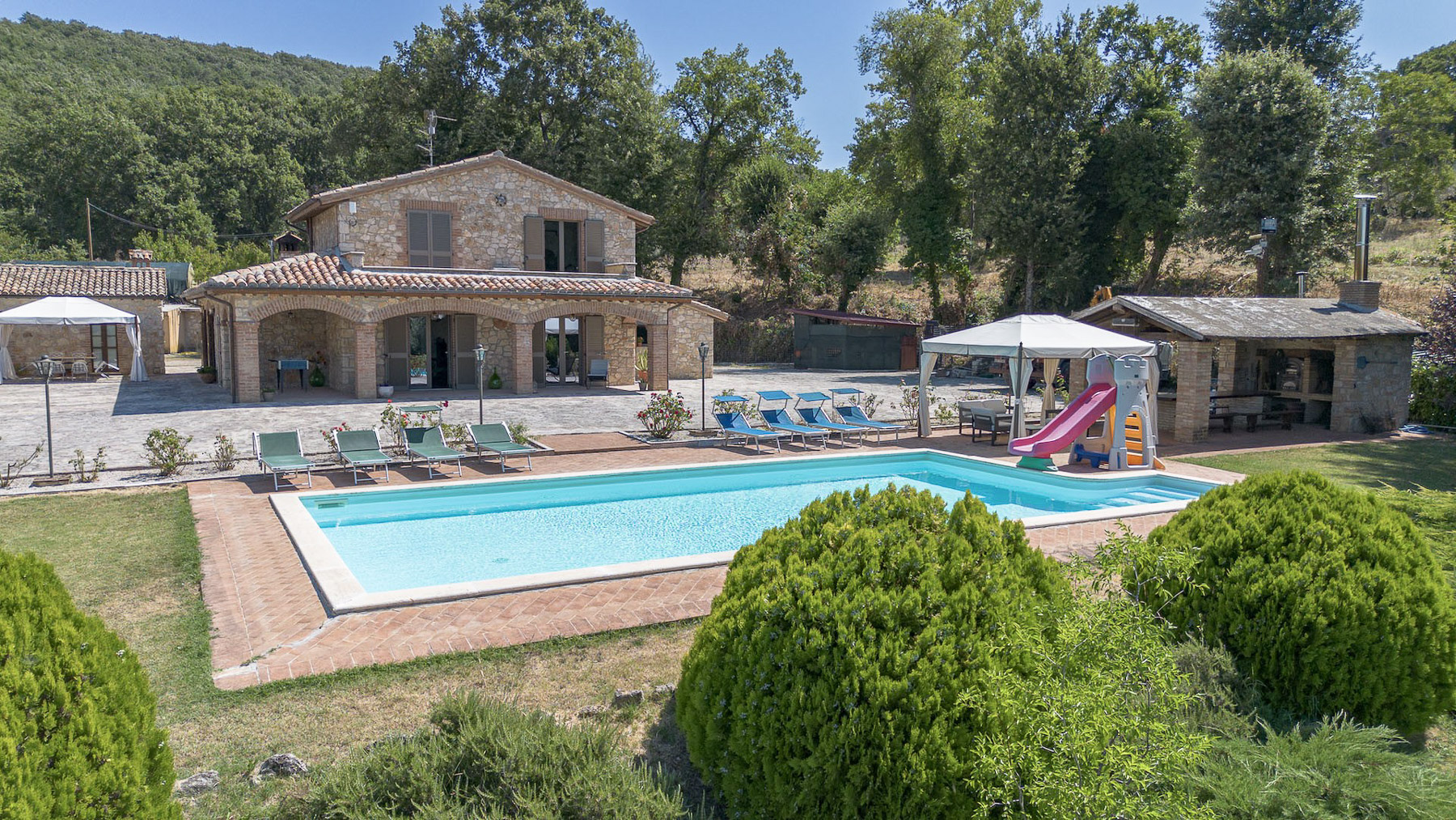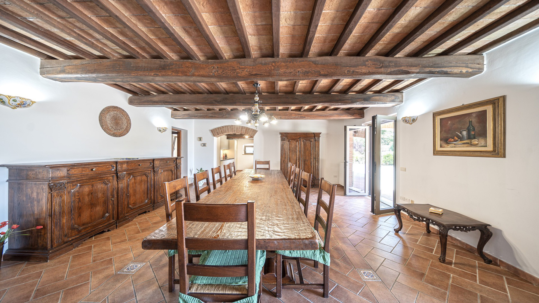 Immerso nel cuore delle colline umbre, questo casale in pietra rappresenta un rifugio di pace e bellezza. Avvolto dal profumo degli ulivi e dal suono tranquillo della natura, la proprietà offre una vista mozzafiato su un paesaggio incontaminato. La luce del sole danza sui muri in pietra, creando un'atmosfera calda e accogliente che invita al relax. Con una superficie totale di 407 mq, questo affascinante casale si sviluppa su due livelli, ospitando sei stanze e tre bagni. Il piano terra accoglie un angolo cottura con una sala da pranzo che si apre su un portico di 35 mq, perfetto per cene all'aperto. Un ampio soggiorno con camino promette momenti di puro relax. Accanto all'abitazione principale, una dependance di 163 mq offre spazio aggiuntivo per gli ospiti. La proprietà, situata a Gualdo Cattaneo, provincia di Perugia, è completata da un giardino curato e una magnifica piscina 6x12 con solarium in cotto. Vivere in questo casale significa abbracciare uno stile di vita di campagna, dove la natura e il comfort moderno si fondono armoniosamente. Immagina di trascorrere le giornate estive a bordo piscina, circondato dalla serenità del paesaggio, o di coltivare il tuo orto biologico nel terreno retrostante. Le serate potrebbero essere dedicate a cene sotto il portico, con gli amici e la famiglia, godendo della bellezza e della tranquillità del luogo. Questa straordinaria proprietà offre un raro connubio di eleganza rustica e modernità, resa ancora più preziosa dalla sua classe energetica A4. Un'opportunità unica per chi cerca un angolo di paradiso nel cuore dell'Umbria, dove ogni dettaglio è stato pensato per garantire un'esperienza di vita senza pari.