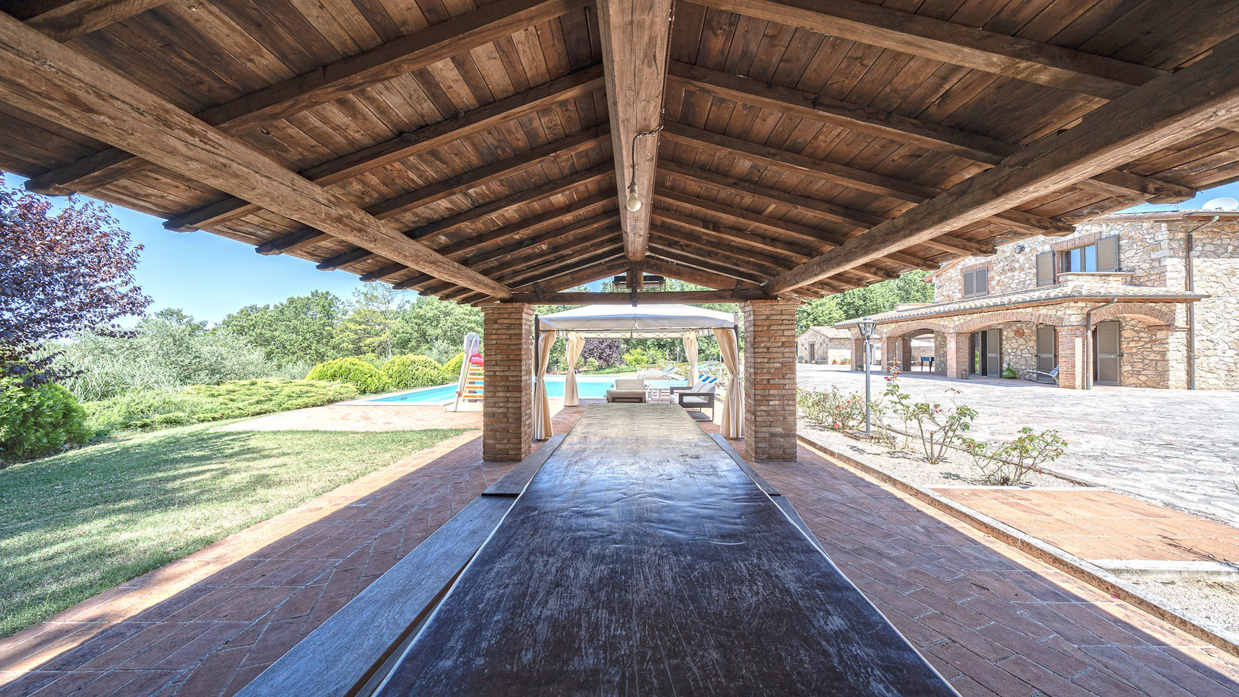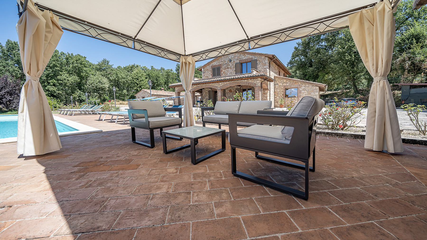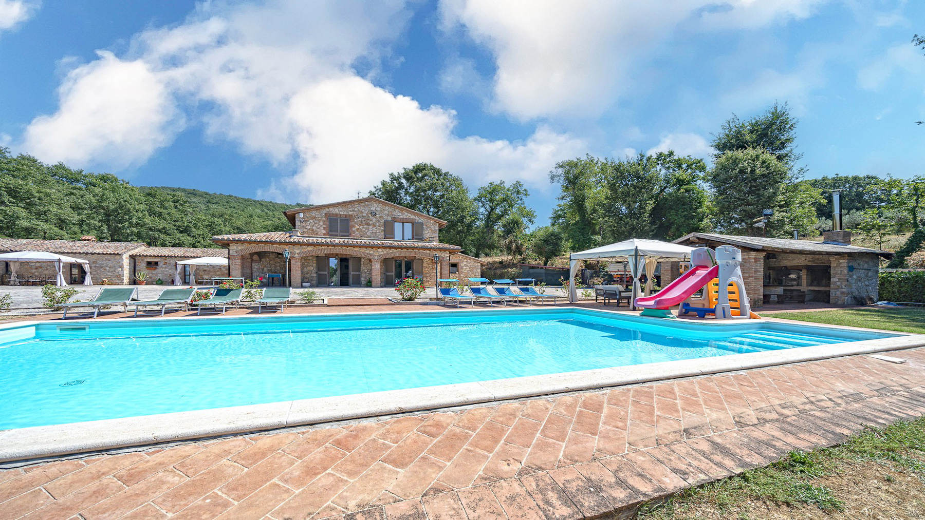 Immerso nel cuore delle colline umbre, questo casale in pietra rappresenta un rifugio di pace e bellezza. Avvolto dal profumo degli ulivi e dal suono tranquillo della natura, la proprietà offre una vista mozzafiato su un paesaggio incontaminato. La luce del sole danza sui muri in pietra, creando un'atmosfera calda e accogliente che invita al relax. Con una superficie totale di 407 mq, questo affascinante casale si sviluppa su due livelli, ospitando sei stanze e tre bagni. Il piano terra accoglie un angolo cottura con una sala da pranzo che si apre su un portico di 35 mq, perfetto per cene all'aperto. Un ampio soggiorno con camino promette momenti di puro relax. Accanto all'abitazione principale, una dependance di 163 mq offre spazio aggiuntivo per gli ospiti. La proprietà, situata a Gualdo Cattaneo, provincia di Perugia, è completata da un giardino curato e una magnifica piscina 6x12 con solarium in cotto. Vivere in questo casale significa abbracciare uno stile di vita di campagna, dove la natura e il comfort moderno si fondono armoniosamente. Immagina di trascorrere le giornate estive a bordo piscina, circondato dalla serenità del paesaggio, o di coltivare il tuo orto biologico nel terreno retrostante. Le serate potrebbero essere dedicate a cene sotto il portico, con gli amici e la famiglia, godendo della bellezza e della tranquillità del luogo. Questa straordinaria proprietà offre un raro connubio di eleganza rustica e modernità, resa ancora più preziosa dalla sua classe energetica A4. Un'opportunità unica per chi cerca un angolo di paradiso nel cuore dell'Umbria, dove ogni dettaglio è stato pensato per garantire un'esperienza di vita senza pari.