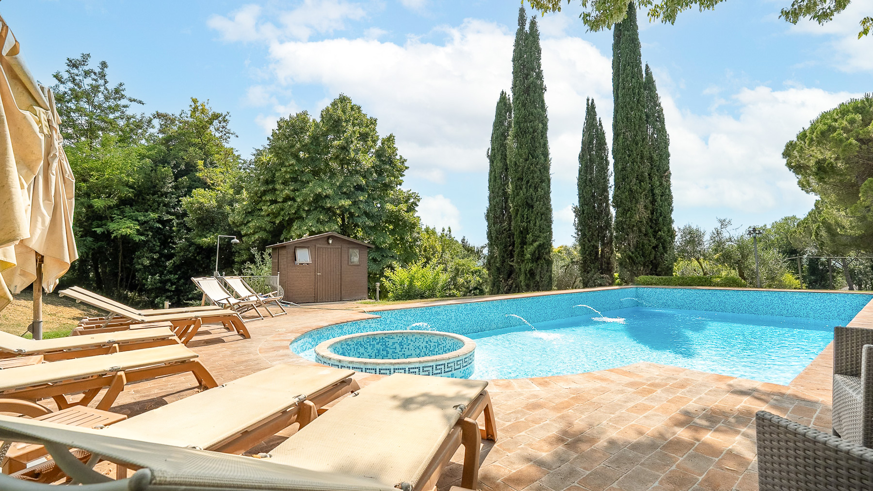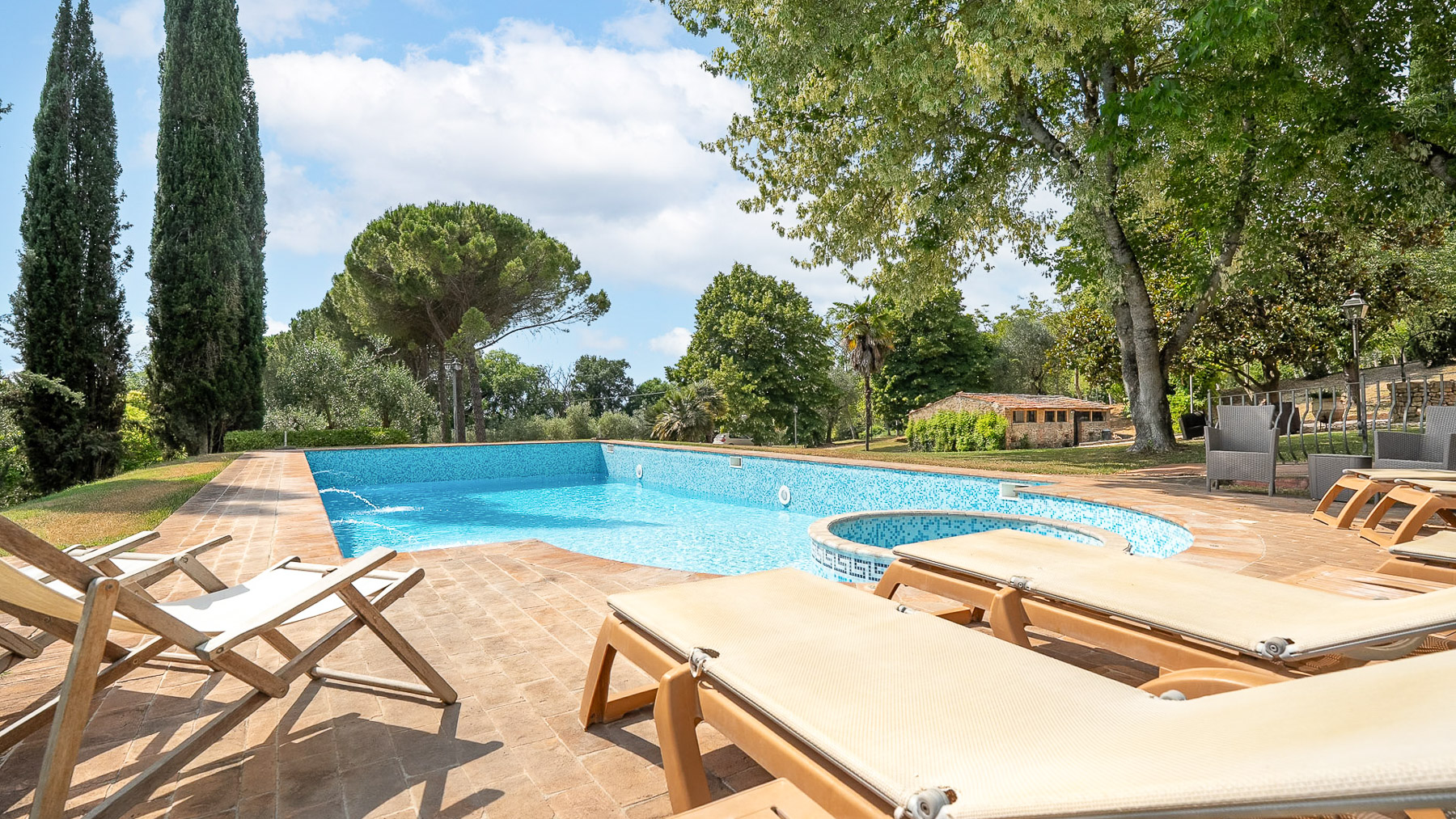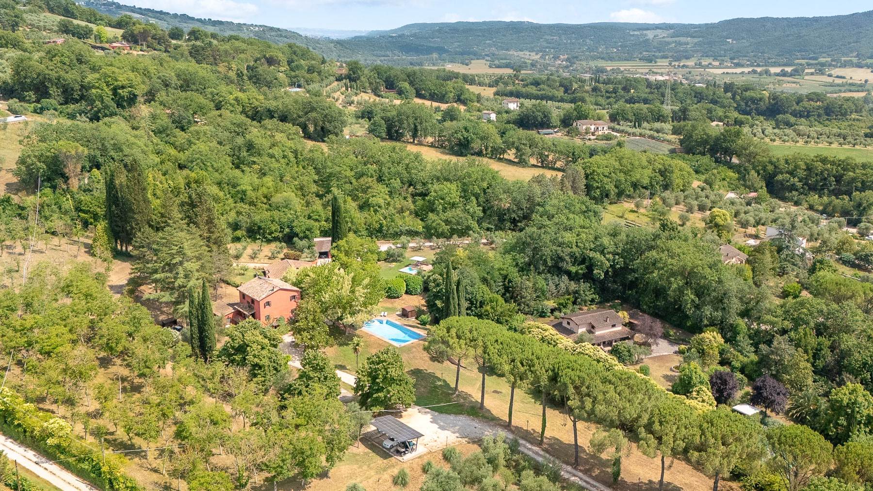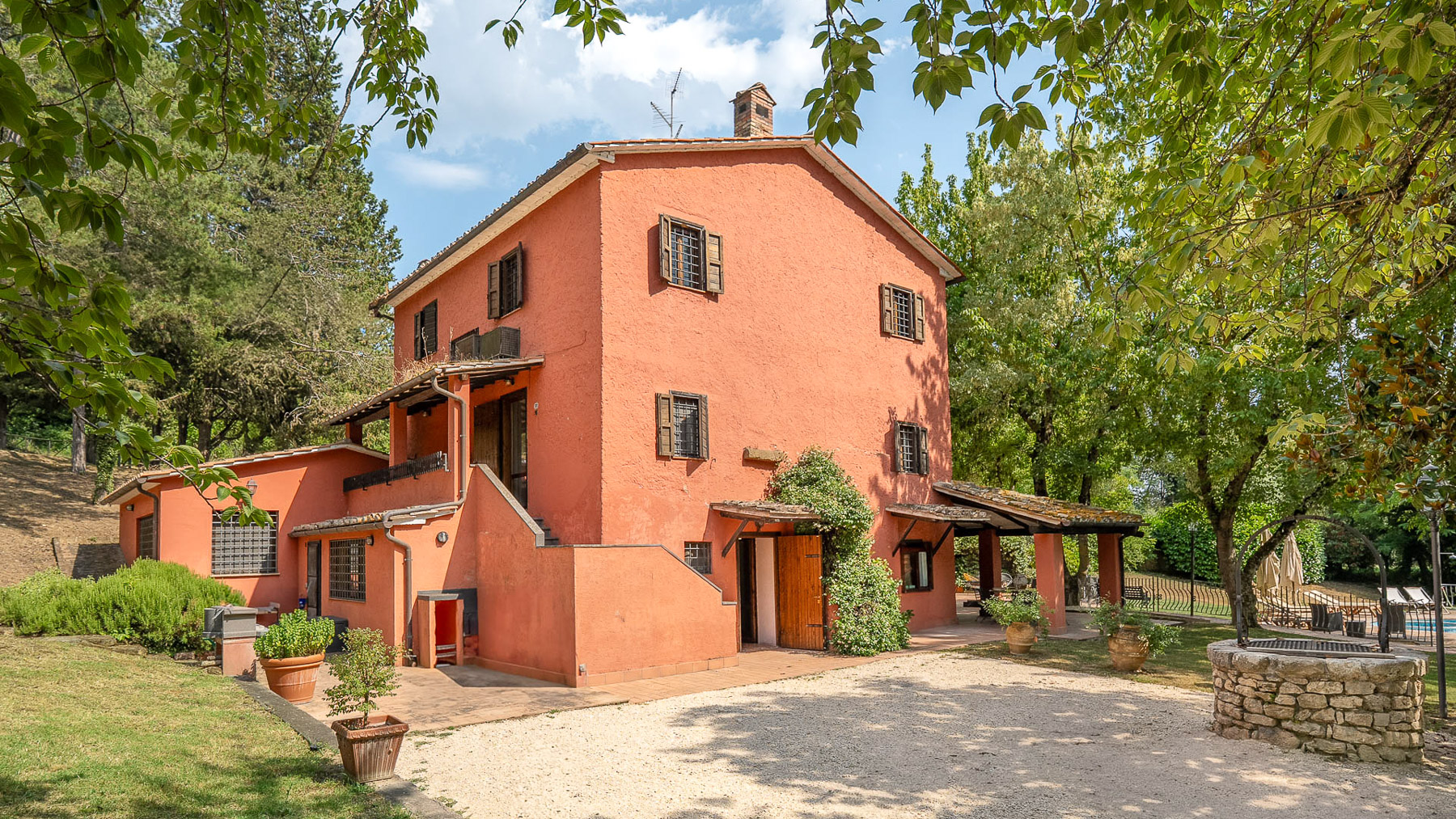 Immerso nel cuore della campagna umbra, questo antico casale colonico è una sinfonia di serenità e lusso. Circondato da una natura rigogliosa, dove il profumo dei cipressi si mescola all'aria fresca, la proprietà offre un rifugio perfetto dal ritmo frenetico della vita quotidiana. Immagina di svegliarti al canto degli uccelli e di goderti il tramonto riflesso sulla piscina. Con una superficie di 425 mq, il casale si sviluppa su due piani e comprende 15 stanze, tra cui cinque eleganti bagni. Gli interni, caratterizzati da uno stile rustico e raffinato, offrono spazi accoglienti come una sala biliardo con camino e una cucina in perfetto equilibrio tra tradizione e modernità. All'esterno, la magnifica piscina con vasca idromassaggio è incorniciata da un giardino curato, completo di piante secolari e ulivi in piena produzione. Situato a Giove, nella Provincia di Terni, questo casale rappresenta un autentico stile di vita campestre, a breve distanza dalla comodità dei servizi urbani. Vivere qui significa abbracciare un'esperienza unica: immagina rilassanti pomeriggi estivi sotto il portico panoramico, cene all'aperto illuminate dalla luna e momenti di pura pace in un contesto naturale straordinario. Gli spazi esterni, con il loro verde lussureggiante, offrono un ambiente perfetto per il relax e la convivialità. Questa proprietà esclusiva è il connubio perfetto tra charme rustico e comfort moderno, un'opportunità irripetibile nel panorama immobiliare di lusso umbro. Una dimora che promette di catturare il cuore di chiunque varchi il suo ingresso.