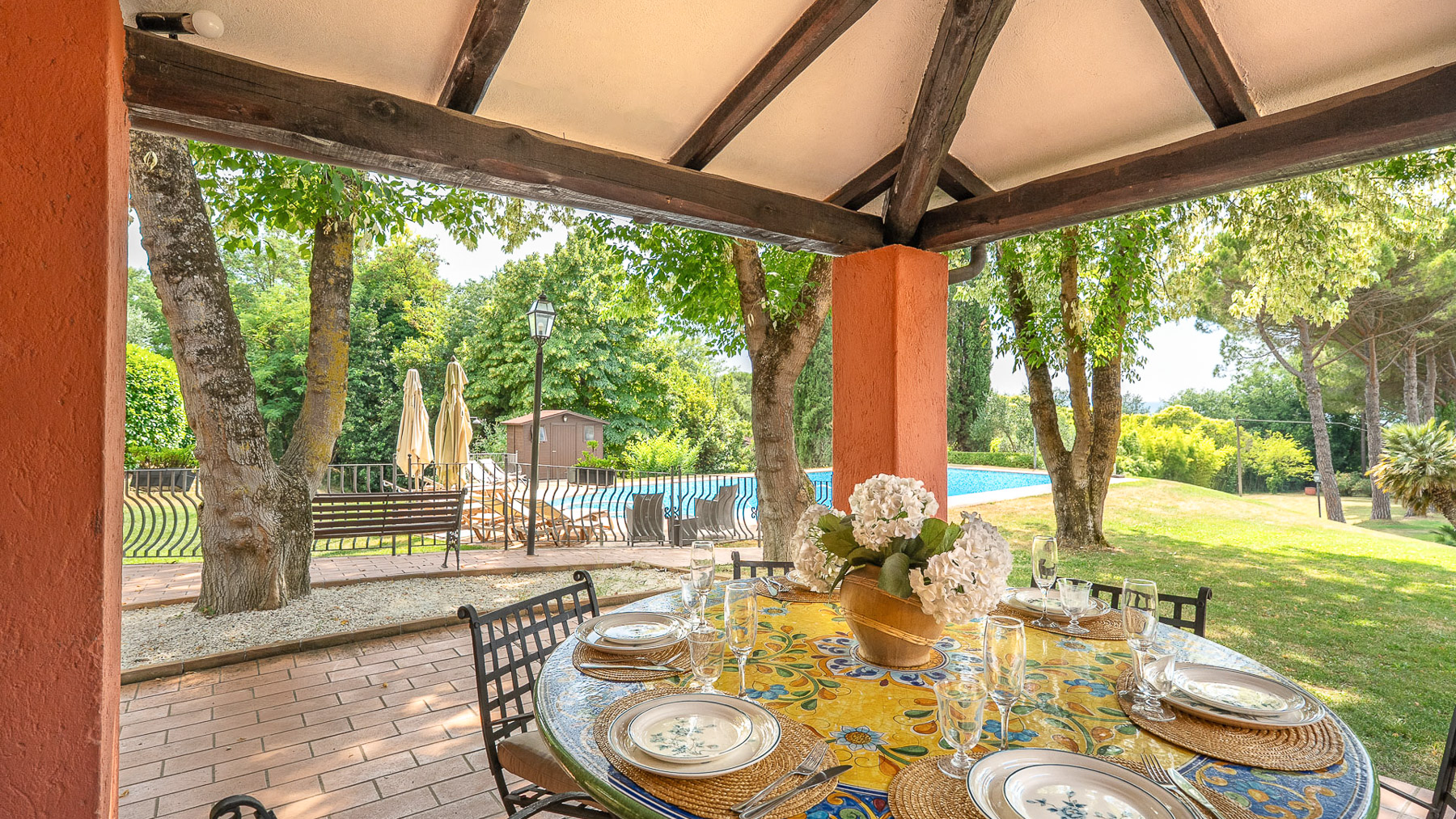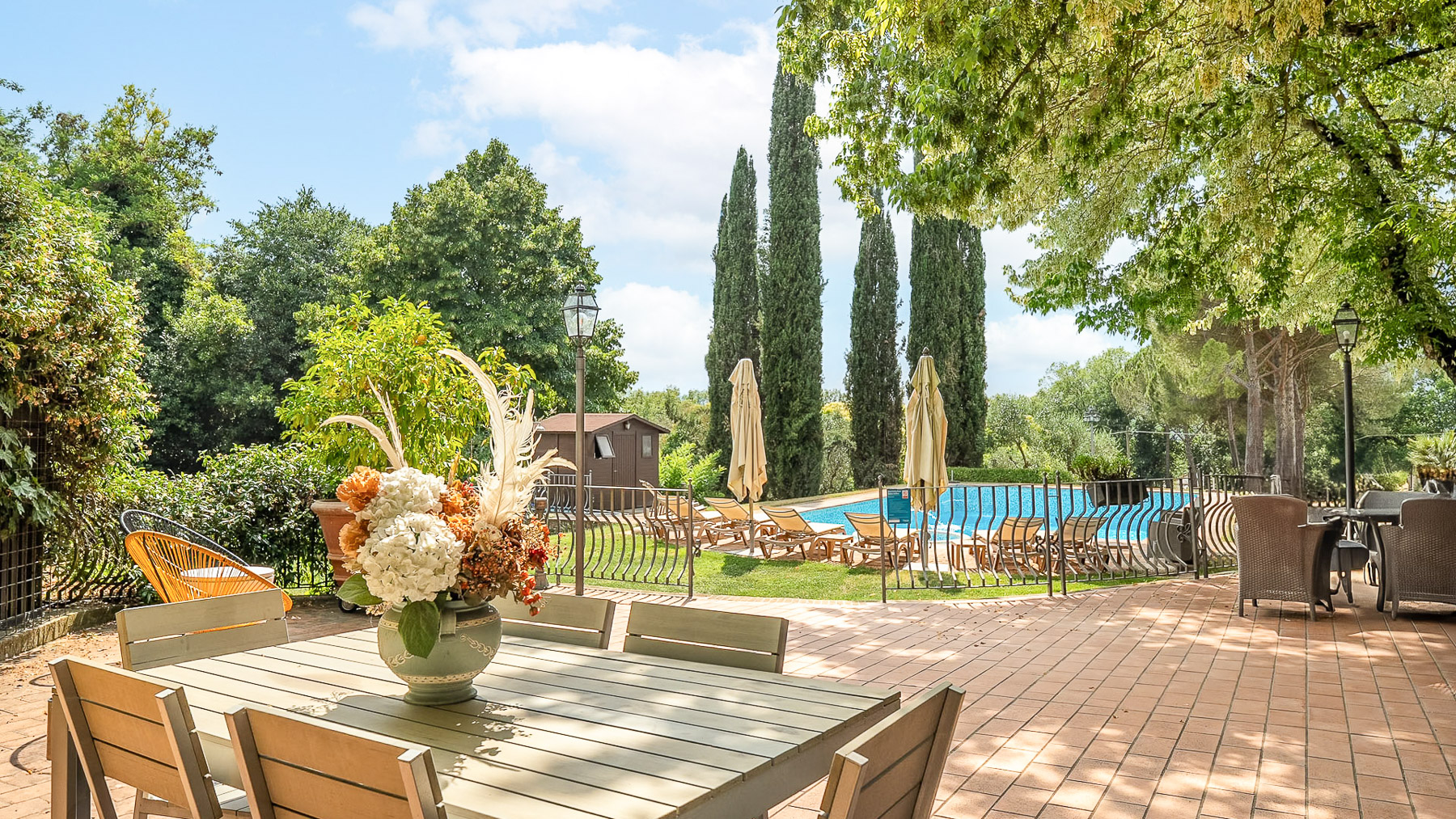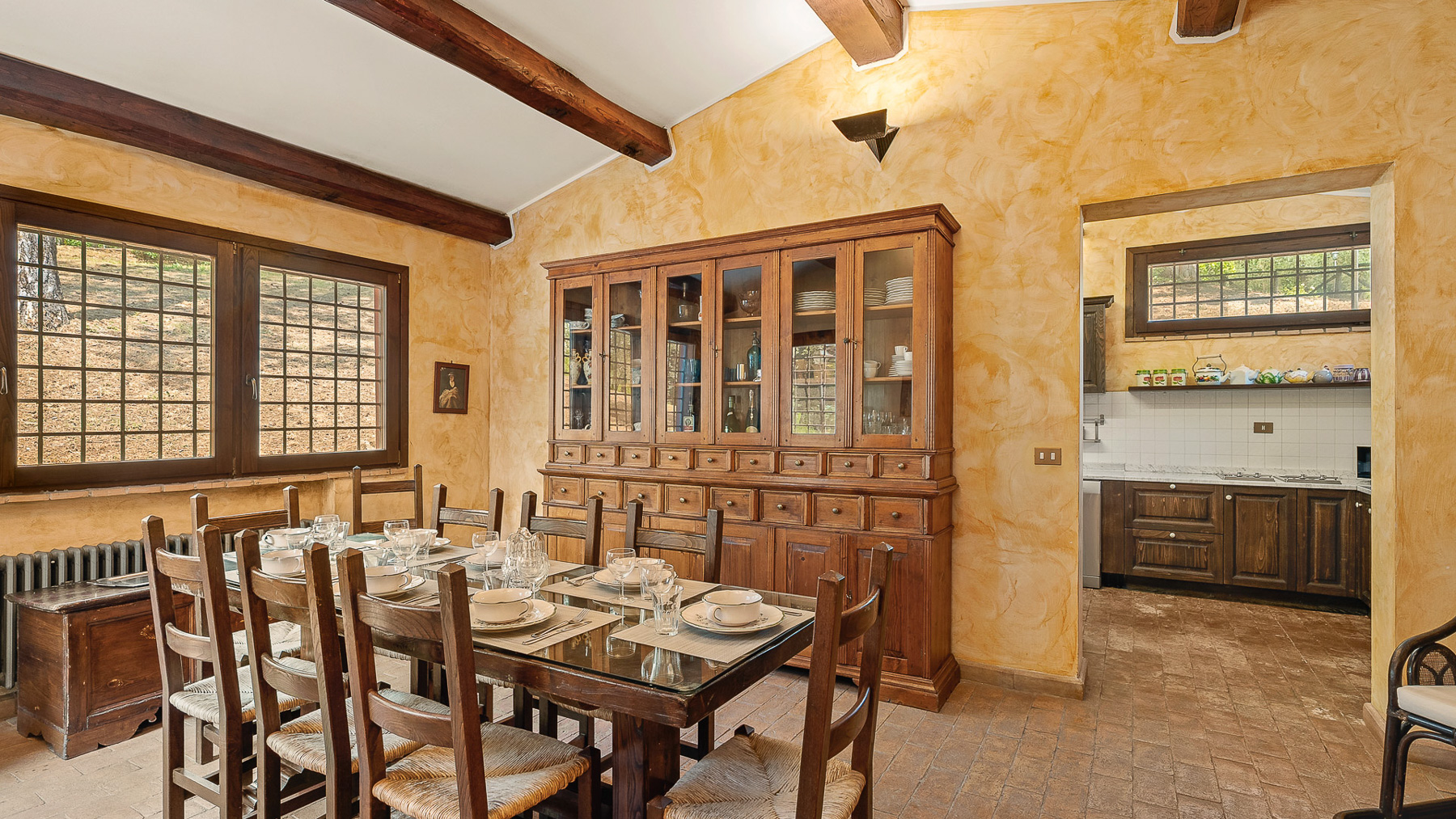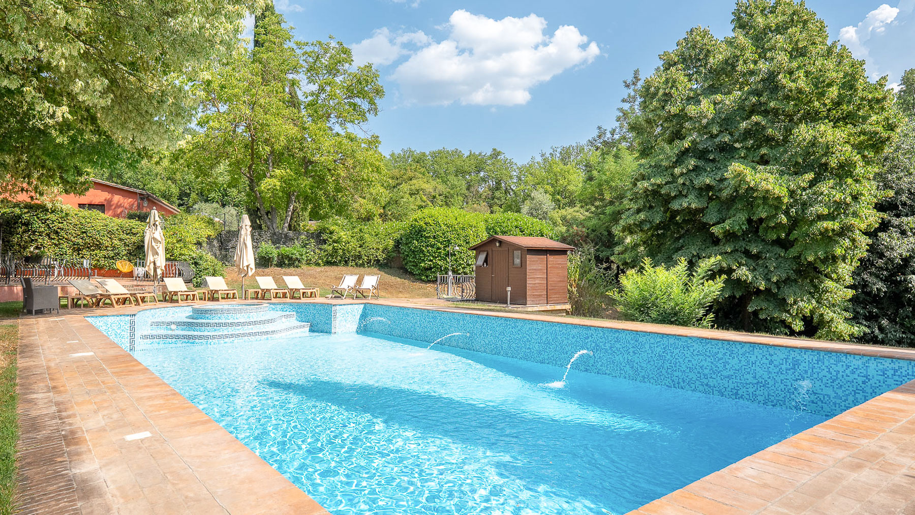 Immerso nel cuore della campagna umbra, questo antico casale colonico è una sinfonia di serenità e lusso. Circondato da una natura rigogliosa, dove il profumo dei cipressi si mescola all'aria fresca, la proprietà offre un rifugio perfetto dal ritmo frenetico della vita quotidiana. Immagina di svegliarti al canto degli uccelli e di goderti il tramonto riflesso sulla piscina. Con una superficie di 425 mq, il casale si sviluppa su due piani e comprende 15 stanze, tra cui cinque eleganti bagni. Gli interni, caratterizzati da uno stile rustico e raffinato, offrono spazi accoglienti come una sala biliardo con camino e una cucina in perfetto equilibrio tra tradizione e modernità. All'esterno, la magnifica piscina con vasca idromassaggio è incorniciata da un giardino curato, completo di piante secolari e ulivi in piena produzione. Situato a Giove, nella Provincia di Terni, questo casale rappresenta un autentico stile di vita campestre, a breve distanza dalla comodità dei servizi urbani. Vivere qui significa abbracciare un'esperienza unica: immagina rilassanti pomeriggi estivi sotto il portico panoramico, cene all'aperto illuminate dalla luna e momenti di pura pace in un contesto naturale straordinario. Gli spazi esterni, con il loro verde lussureggiante, offrono un ambiente perfetto per il relax e la convivialità. Questa proprietà esclusiva è il connubio perfetto tra charme rustico e comfort moderno, un'opportunità irripetibile nel panorama immobiliare di lusso umbro. Una dimora che promette di catturare il cuore di chiunque varchi il suo ingresso.