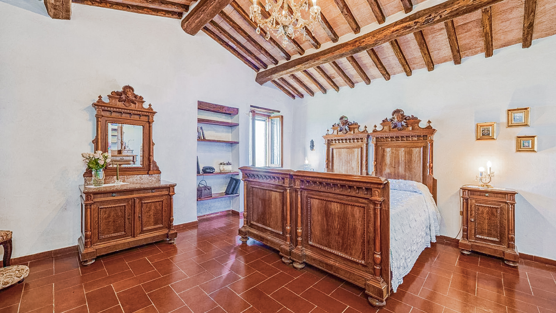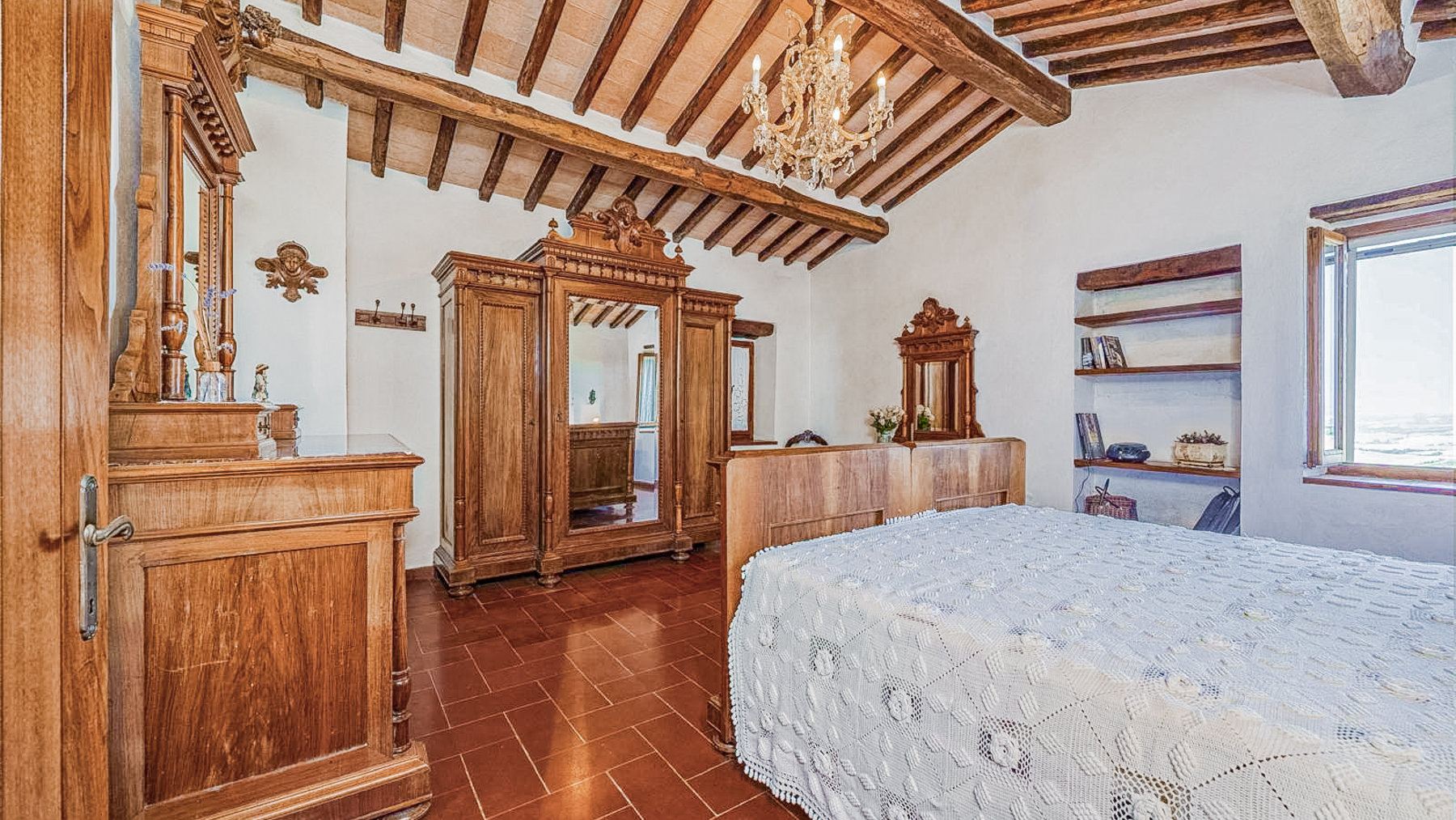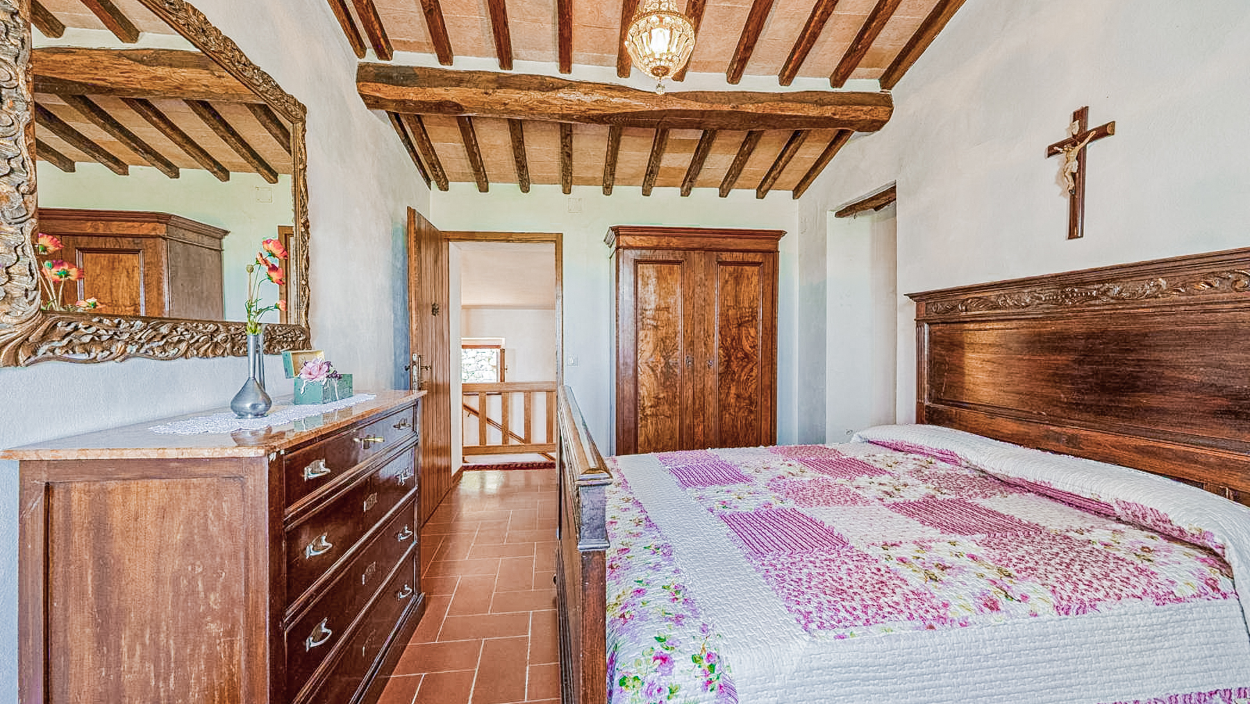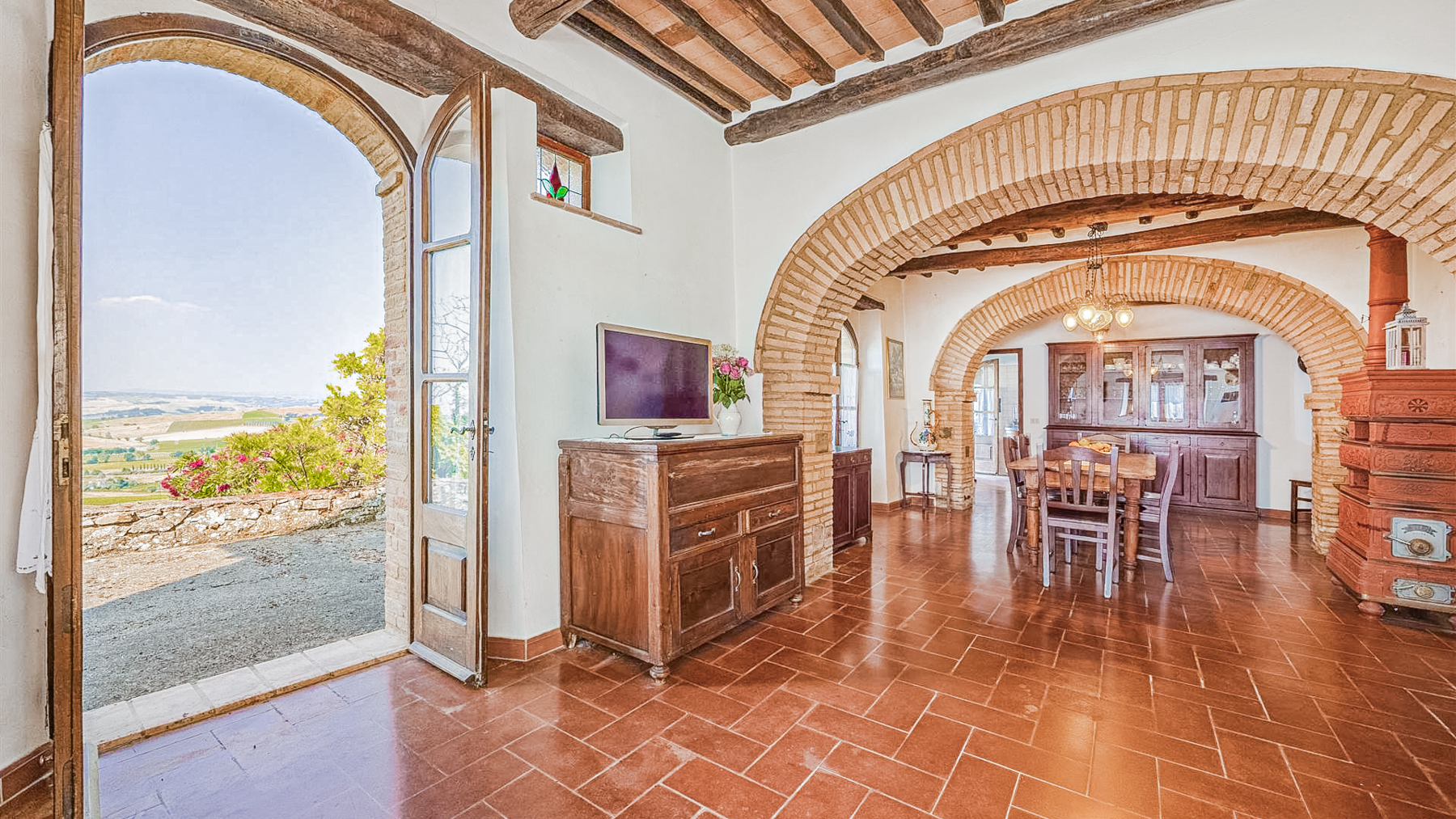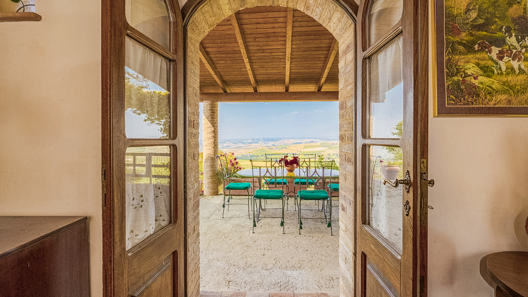 Immersa nel cuore della campagna toscana, questa residenza a Montalcino è un rifugio di pace e bellezza. Immagina di aprire le finestre al mattino, lasciando entrare la dolce luce del sole che accarezza gli alberi secolari e i vigneti che si estendono a perdita d'occhio. Un profumo di terra e fiori selvatici riempie l'aria, mentre il canto degli uccelli accompagna l'inizio di una nuova giornata. Questa splendida proprietà di 250 mq offre un'esperienza abitativa unica, combinando il fascino rustico con comfort moderni. Con otto stanze spaziose e due bagni, la casa è perfetta per famiglie numerose o per chi ama ospitare amici. Entrando, sarete accolti da un soggiorno caldo e accogliente, caratterizzato da elementi rustici come archi in mattoni, travi in legno a vista e pavimenti in cotto. La cucina, con i suoi mobili in legno e gli elettrodomestici moderni, invita a momenti conviviali e alla creazione di piatti tradizionali. Ogni angolo della casa è curato nei minimi dettagli, con elementi decorativi che aggiungono un tocco di eleganza e personalità. Vivere qui significa abbracciare un lifestyle autentico, fatto di momenti di pura serenità. Immagina di trascorrere le sere d'estate sotto un cielo stellato, con il suono delle cicale come sottofondo, mentre sorseggi un calice del celebre vino di Montalcino. Le colazioni possono essere un evento speciale, gustate all'aperto con vista sui vigneti, lasciando che la bellezza del paesaggio nutra l'anima. Questa proprietà non è solo una casa, ma un'opportunità di vivere un'esperienza di vita unica, dove il tempo sembra rallentare e ogni giorno è un omaggio alla bellezza della Toscana. Un gioiello raro nel panorama immobiliare di lusso, che attende solo di essere scoperto.