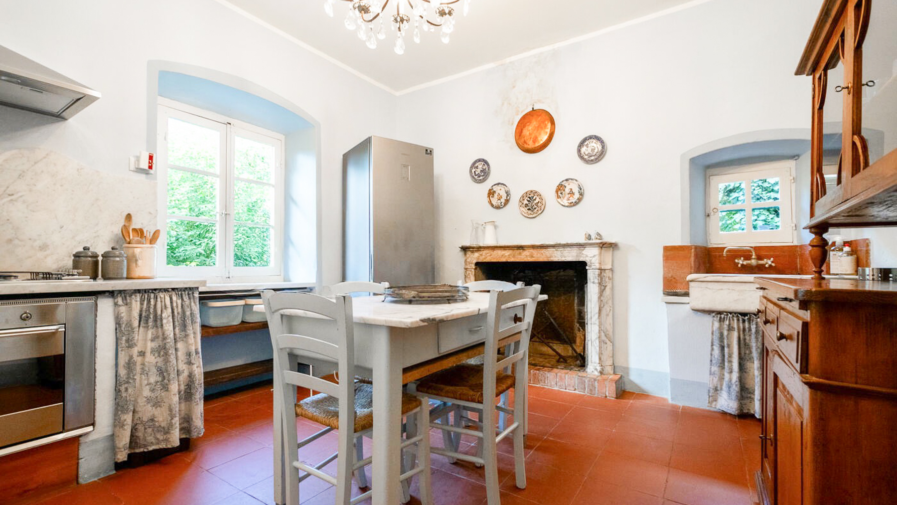 Immersa tra i dolci pendii delle Alpi Apuane, questa dimora incantevole emerge come un rifugio di serenità e storia. Al confine tra Toscana e Liguria, i suoni melodiosi della natura si fondono con il profumo degli ulivi, creando un'armonia che risveglia i sensi e invita a vivere momenti di pura bellezza. La proprietà, situata a Vallecchia La Spezia (SP), si estende su una superficie di 800 mq e accoglie i suoi ospiti con 17 stanze e 3 bagni. L'edificio principale, un antico frantoio del 1300, è stato sapientemente restaurato, mantenendo intatti i dettagli storici come le macine in pietra e i pavimenti in lavagna. Gli interni offrono un'atmosfera calda e accogliente, con soffitti con travi in legno, arredi che raccontano storie antiche e una luminosità naturale che esalta ogni ambiente. Un ampio giardino di 7000 mq, arricchito da un uliveto e alberi da frutto, completa questo quadro idilliaco, offrendo un giardino all'italiana che esalta la bellezza del paesaggio circostante. Vivere in questa dimora significa abbracciare uno stile di vita fatto di eleganza e tranquillità. Immagina di trascorrere le tue giornate nel luminoso soggiorno, tra comodi divani bianchi drappeggiati di morbide coperte, il profumo delle piante mediterranee che ti circonda e il suono rilassante dell'acqua che accompagna le tue serate nel giardino. Questa proprietà rappresenta un'opportunità irripetibile per chi cerca un rifugio di prestigio nel cuore della natura, a pochi chilometri dal mare cristallino. Un gioiello nel panorama immobiliare di lusso, dove il tempo sembra essersi fermato per lasciar spazio all'eternità.