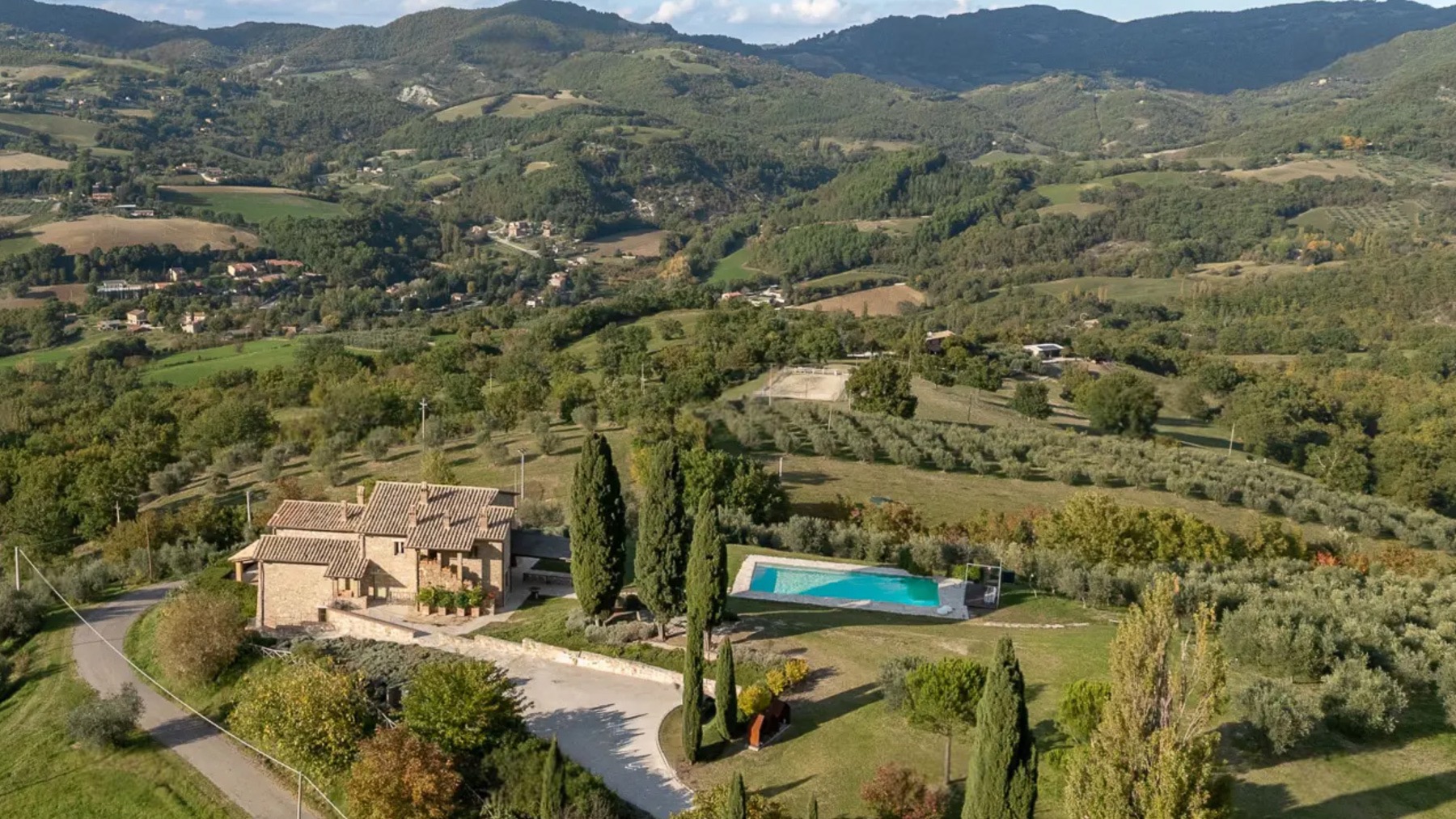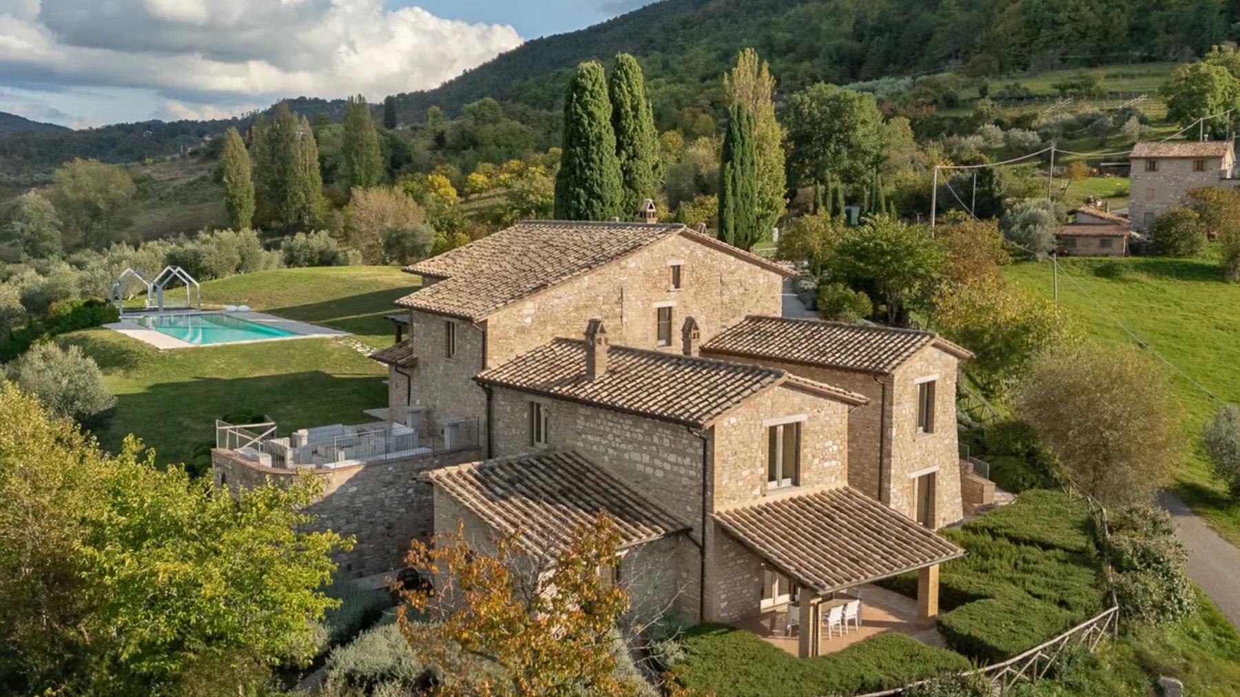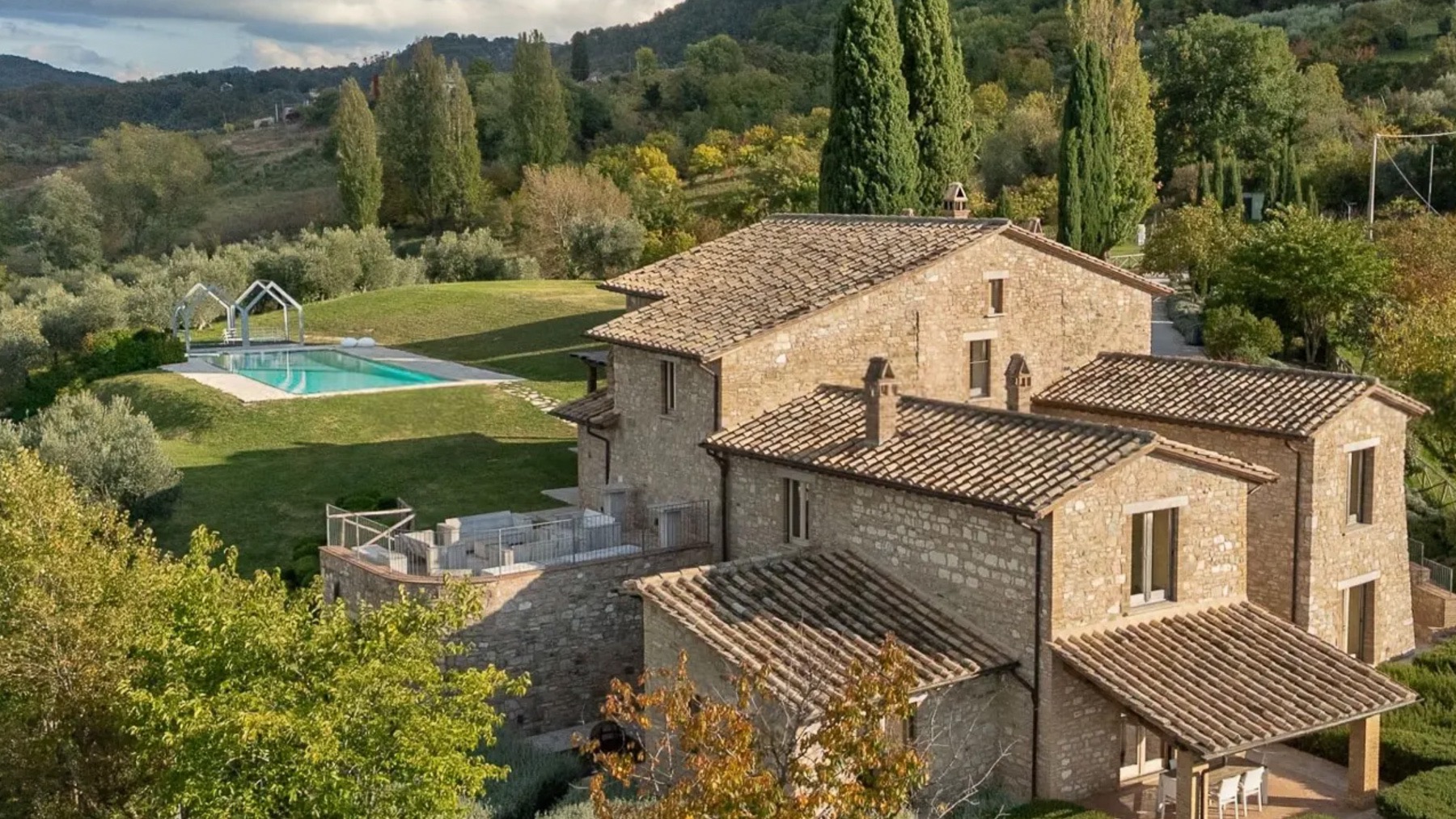 Avvolta dal verde rigoglioso del Parco Naturale del Monte Subasio, questa magnifica dimora in pietra è un rifugio di serenità e lusso. Il profumo degli ulivi secolari, il canto degli uccelli e la vista mozzafiato sulla valle umbra creano un'atmosfera di pace e bellezza, a pochi minuti dal fascino storico di Assisi. La villa, estesa su 500 mq e distribuita su tre livelli, offre 18 stanze eleganti, tra cui 5 bagni, tutte progettate con cura e raffinatezza. Al piano terra, una zona giorno di prestigio accoglie ospiti e residenti con un soggiorno di rappresentanza, un accogliente salotto con angolo bar e una cucina su misura. Le camere del piano superiore, con bagno en-suite, offrono comfort e privacy, mentre il livello inferiore, con uscite indipendenti sul giardino profumato di lavande e rosmarini, ospita ulteriori spazi abitativi. All'esterno, una piscina panoramica riscaldata è incastonata in un giardino curato, perfetto per il relax e il tempo libero. Vivere in questa residenza significa abbracciare un lifestyle esclusivo in campagna, dove ogni giornata è un'opportunità di connessione con la natura. Immagina di sorseggiare un calice di vino sulla terrazza, mentre il sole tramonta dietro le colline, o di passeggiare tra gli ulivi, respirando la quiete e la bellezza del paesaggio umbro. Questa villa è un raro gioiello architettonico, un connubio perfetto tra eleganza storica e comfort moderno. Un'opportunità irripetibile per chi cerca una dimora di prestigio nel cuore dell'Umbria più autentica.