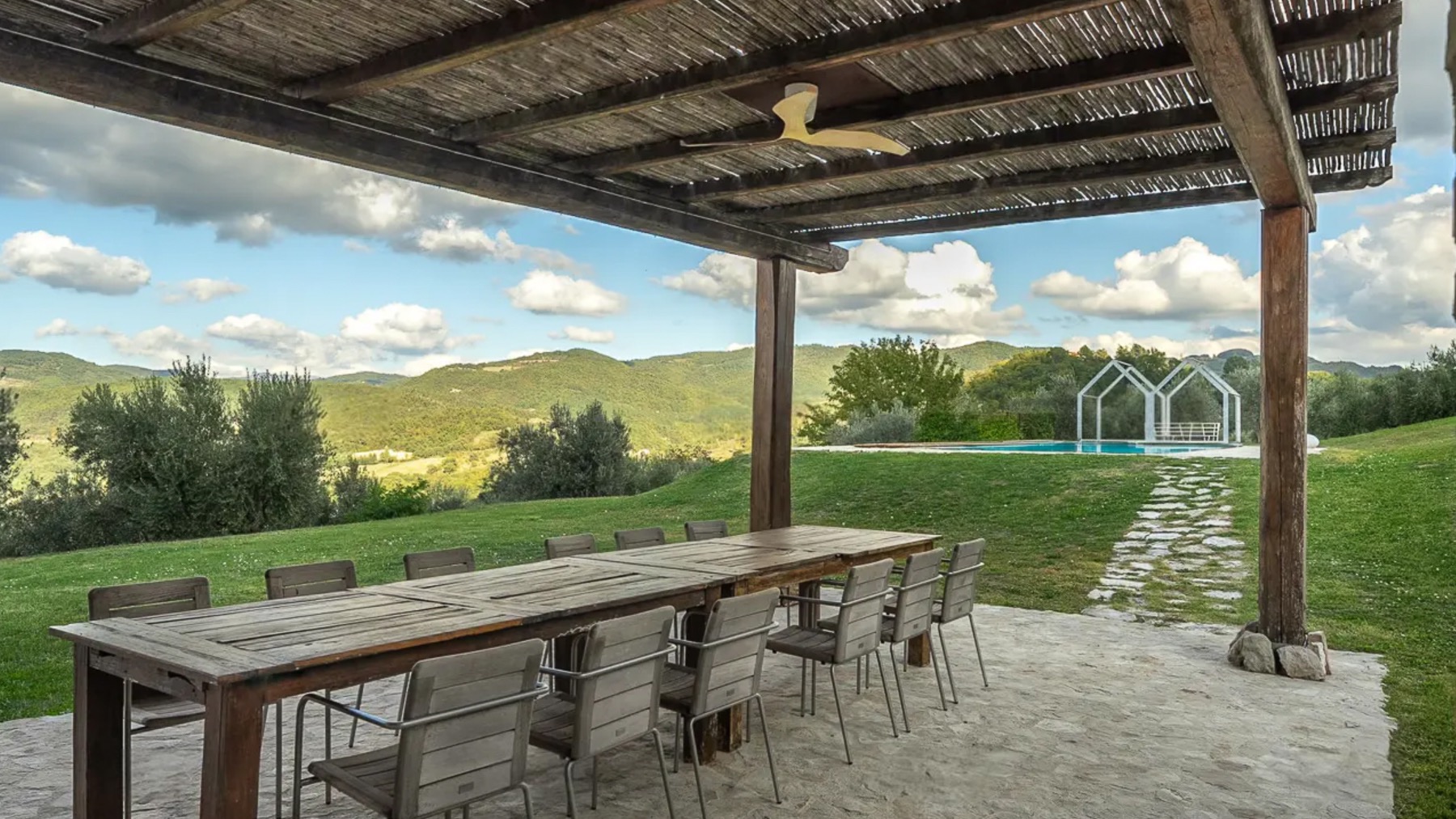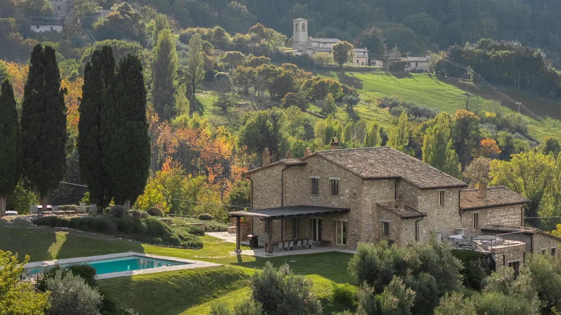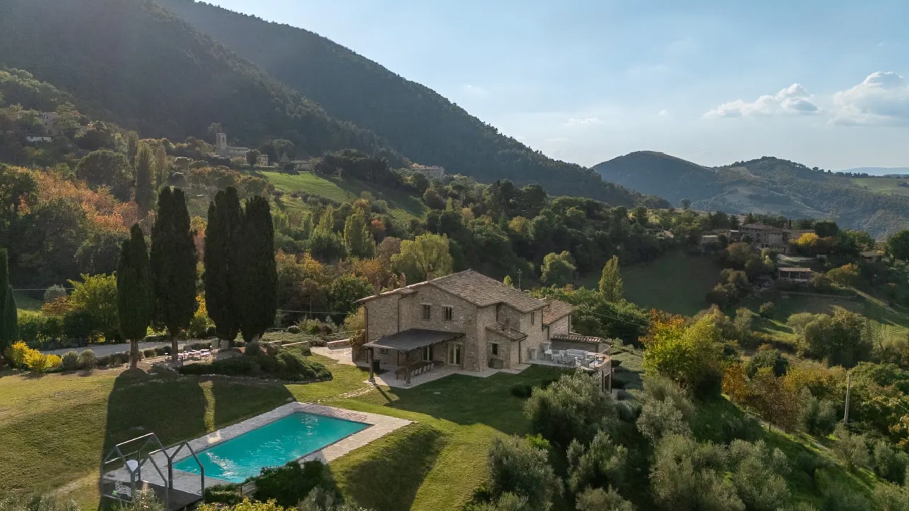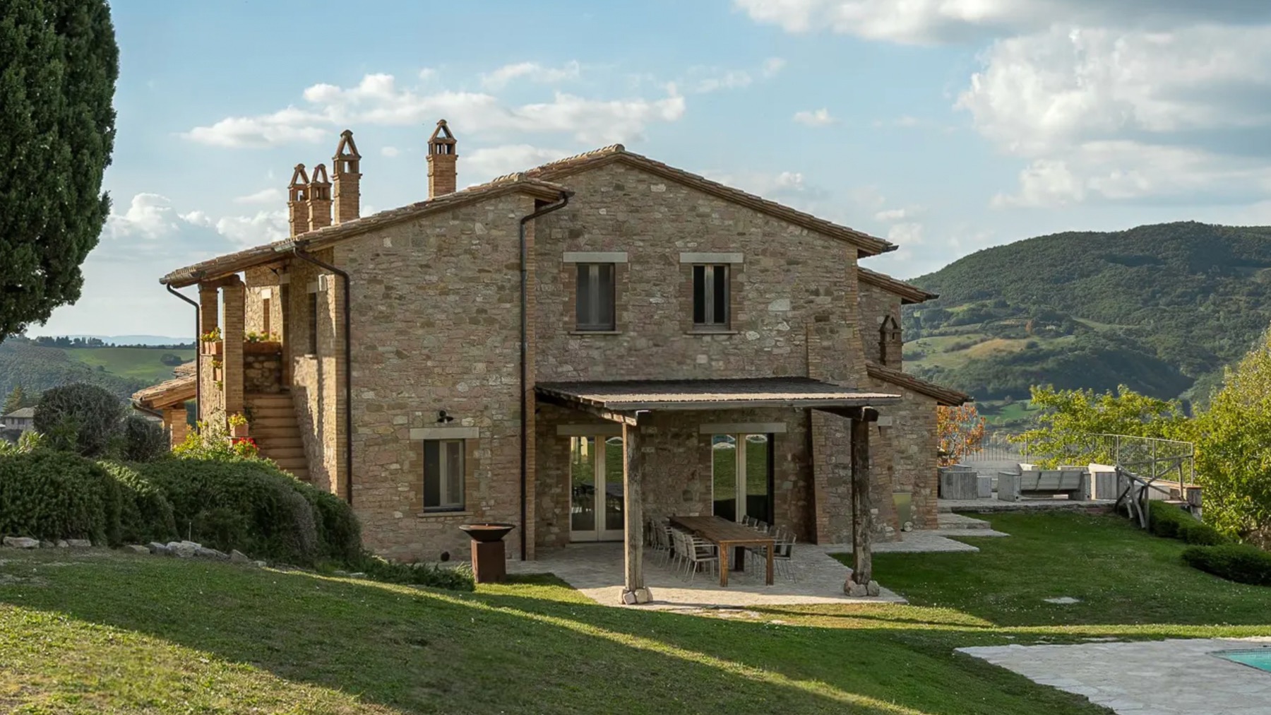 Avvolta dal verde rigoglioso del Parco Naturale del Monte Subasio, questa magnifica dimora in pietra è un rifugio di serenità e lusso. Il profumo degli ulivi secolari, il canto degli uccelli e la vista mozzafiato sulla valle umbra creano un'atmosfera di pace e bellezza, a pochi minuti dal fascino storico di Assisi. La villa, estesa su 500 mq e distribuita su tre livelli, offre 18 stanze eleganti, tra cui 5 bagni, tutte progettate con cura e raffinatezza. Al piano terra, una zona giorno di prestigio accoglie ospiti e residenti con un soggiorno di rappresentanza, un accogliente salotto con angolo bar e una cucina su misura. Le camere del piano superiore, con bagno en-suite, offrono comfort e privacy, mentre il livello inferiore, con uscite indipendenti sul giardino profumato di lavande e rosmarini, ospita ulteriori spazi abitativi. All'esterno, una piscina panoramica riscaldata è incastonata in un giardino curato, perfetto per il relax e il tempo libero. Vivere in questa residenza significa abbracciare un lifestyle esclusivo in campagna, dove ogni giornata è un'opportunità di connessione con la natura. Immagina di sorseggiare un calice di vino sulla terrazza, mentre il sole tramonta dietro le colline, o di passeggiare tra gli ulivi, respirando la quiete e la bellezza del paesaggio umbro. Questa villa è un raro gioiello architettonico, un connubio perfetto tra eleganza storica e comfort moderno. Un'opportunità irripetibile per chi cerca una dimora di prestigio nel cuore dell'Umbria più autentica.